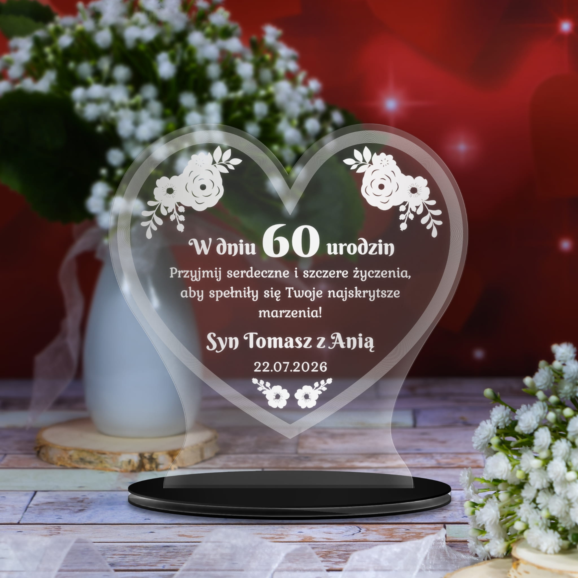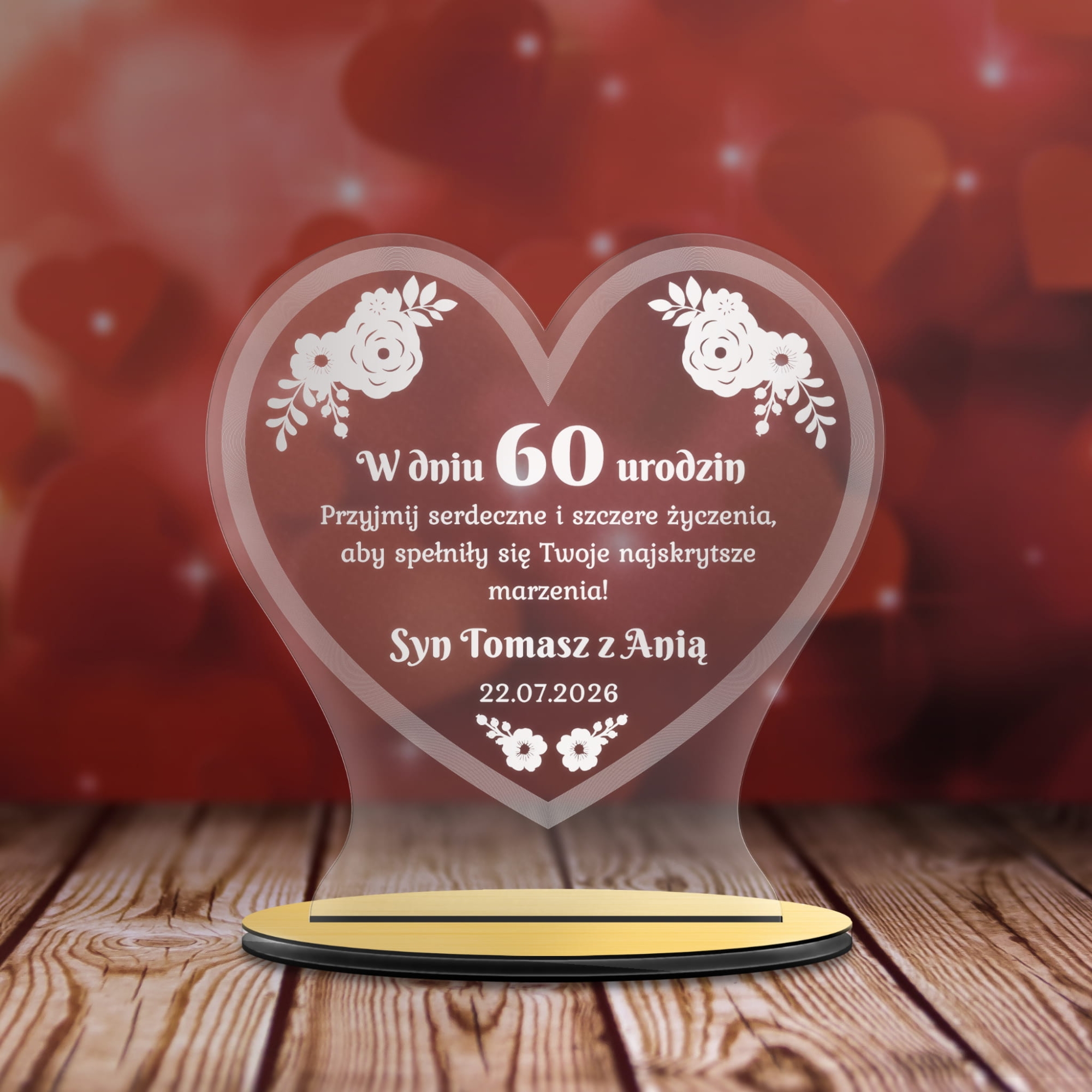 Prezent na urodziny dla Niej dla Niego STATUETKA SERCE Z GRAWEREM