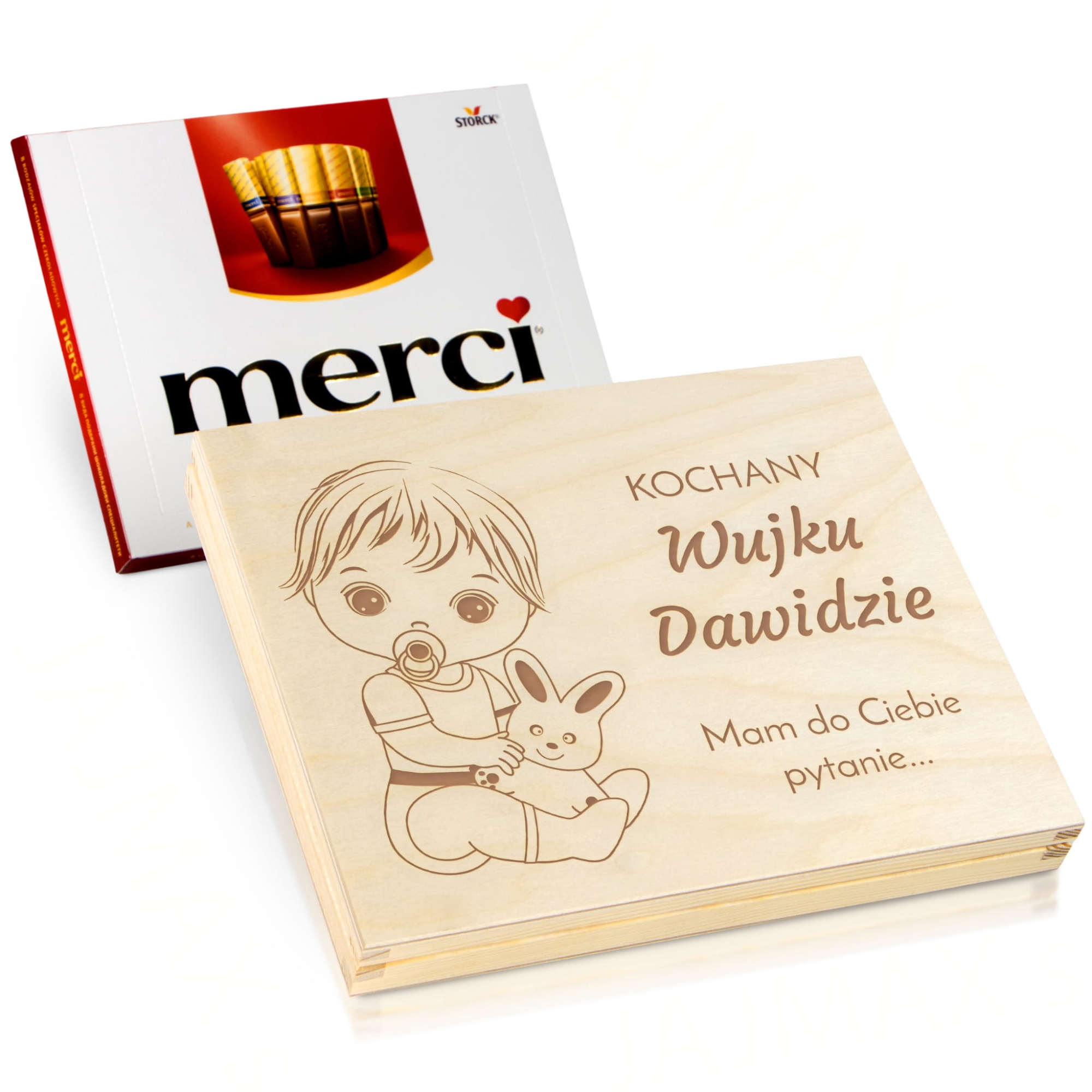PUDEŁKO MERCI ZAPYTANIE O ZOSTANIE CHRZESTNYM DZIECKA