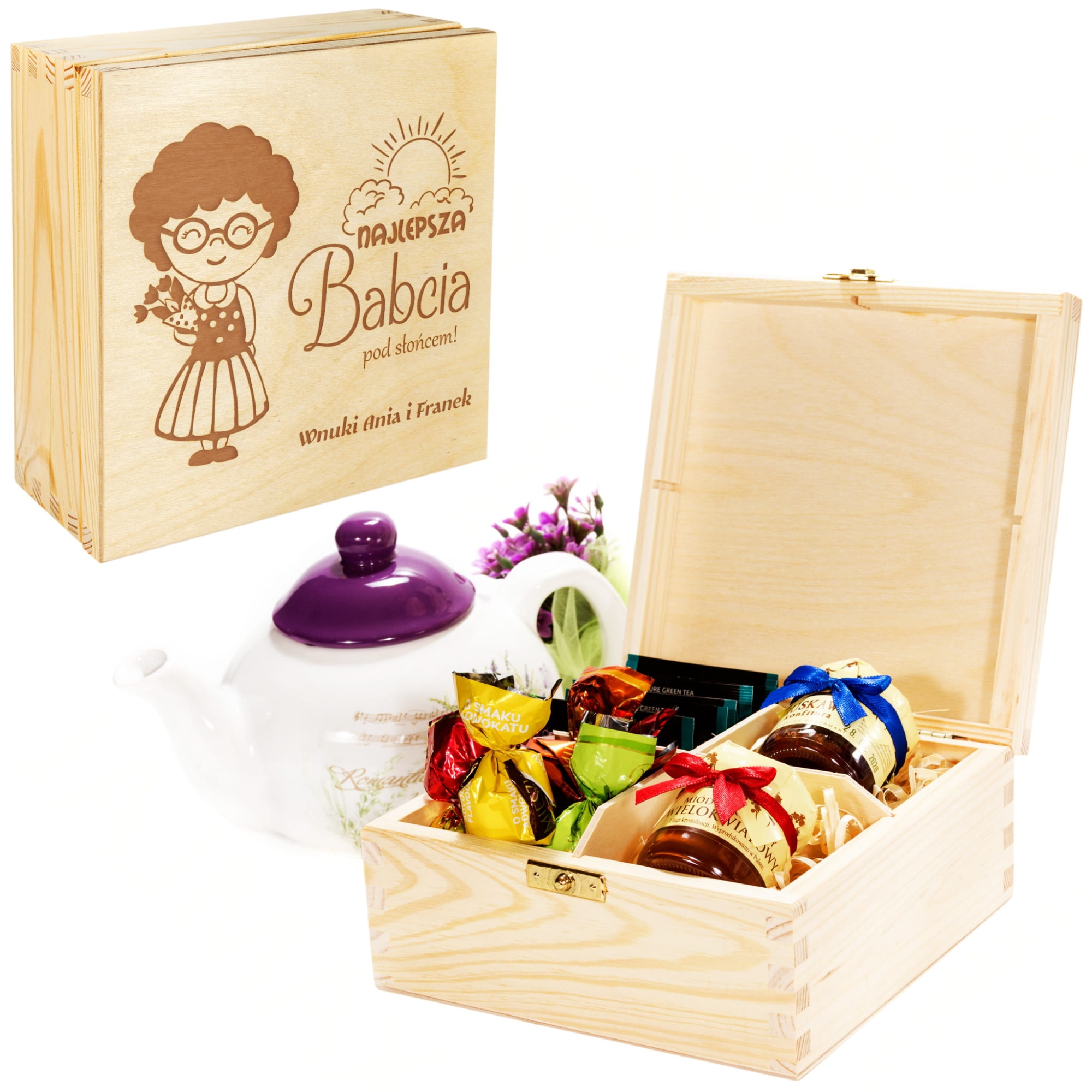 Prezentowy box upominkowy z okazji Dnia Dziadka prezent od wnuków HERBACIARKA ZESTAW PODARUNKOWY super pomysł na prezent dla dziadków DREWNIANY BOX UPOMINKOWY miód praliny dżem herbaty na Dzień Dziadka ZESTAW PREZENTOWY DLA DZIADKA 22 STYCZNIA DZIEŃ DZIADKA słodki box DREWNIANY BOX NA PREZENT DLA DZIADKÓW zestaw herbaty miód konfitura SŁODKOŚCI BABCI pudełko z imieniem POMYSŁ NA PREZENT NA DZIEŃ BABCI Pudełko prezentowe Słodki Upominek na Dzień Babci i Dziadka Pudełko drewniane super zestaw dla dziadka grawer Najlepszy Dziadek ZESTAW UPOMINKOWY Najlepsza Babcia pod słońcem pudełko smakołyków UPOMINEK DLA DZIADKÓW zestaw słodkości czekoladki miód herbaty DLA DZIADKÓW pudełko smakołyków z imionami wnuków prezent premium Herbaciarka Zestaw Podarunkowy Dla Babci Dla Dziadka nadruk