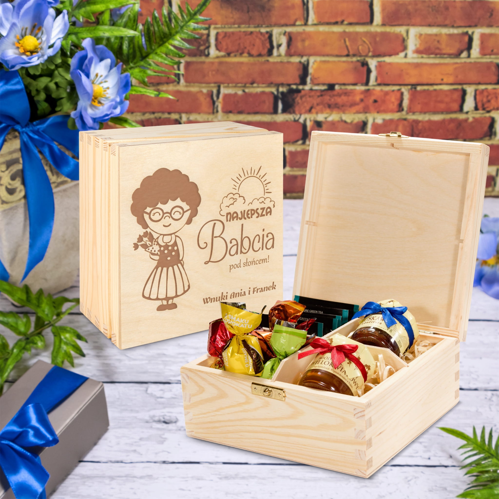 Pudełko smakołyków pomysłowy prezent na Dzień Babci z grawerem