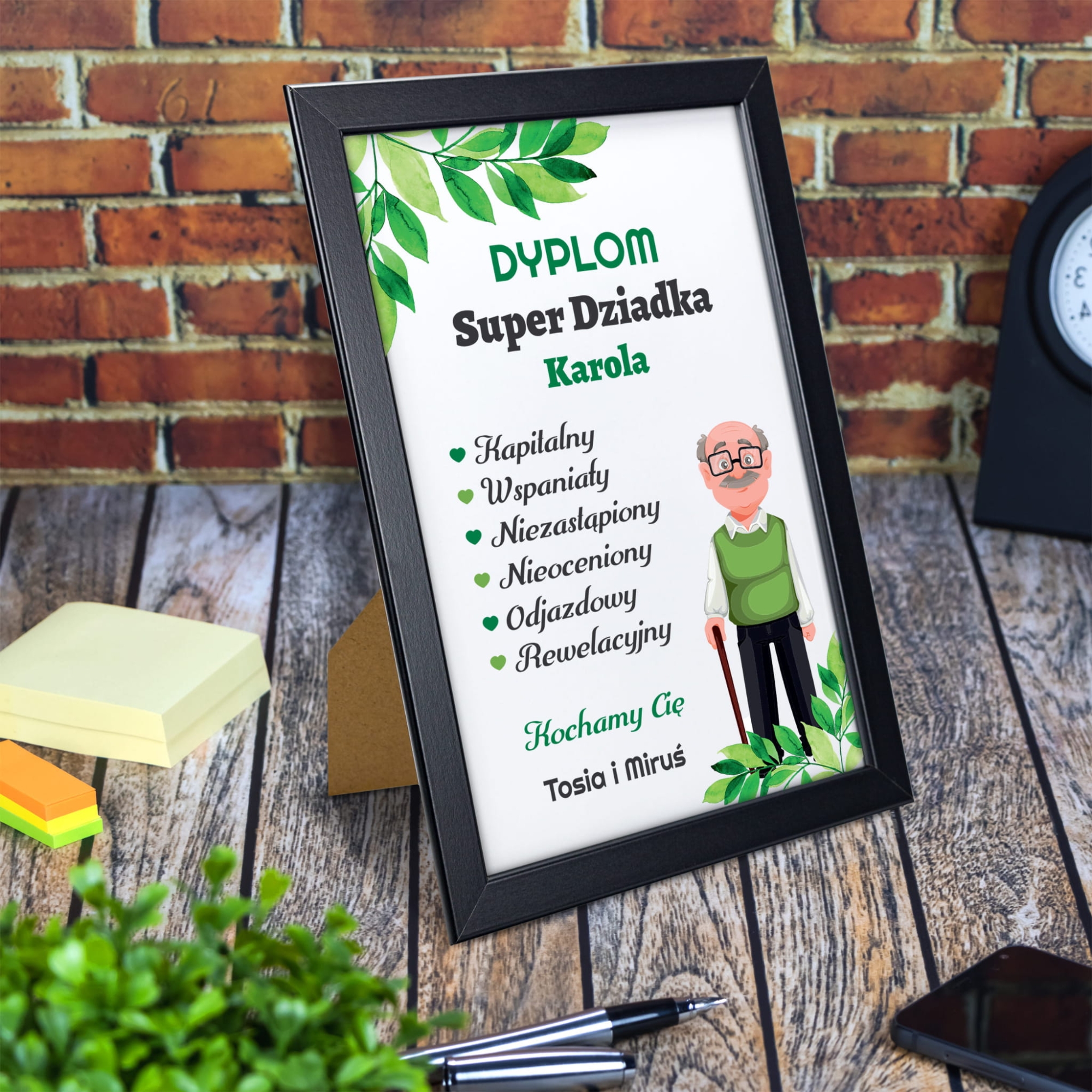 Personalizowany dyplom super dziadka w ramce A4 pomysł na prezent na Dzień Dziadka