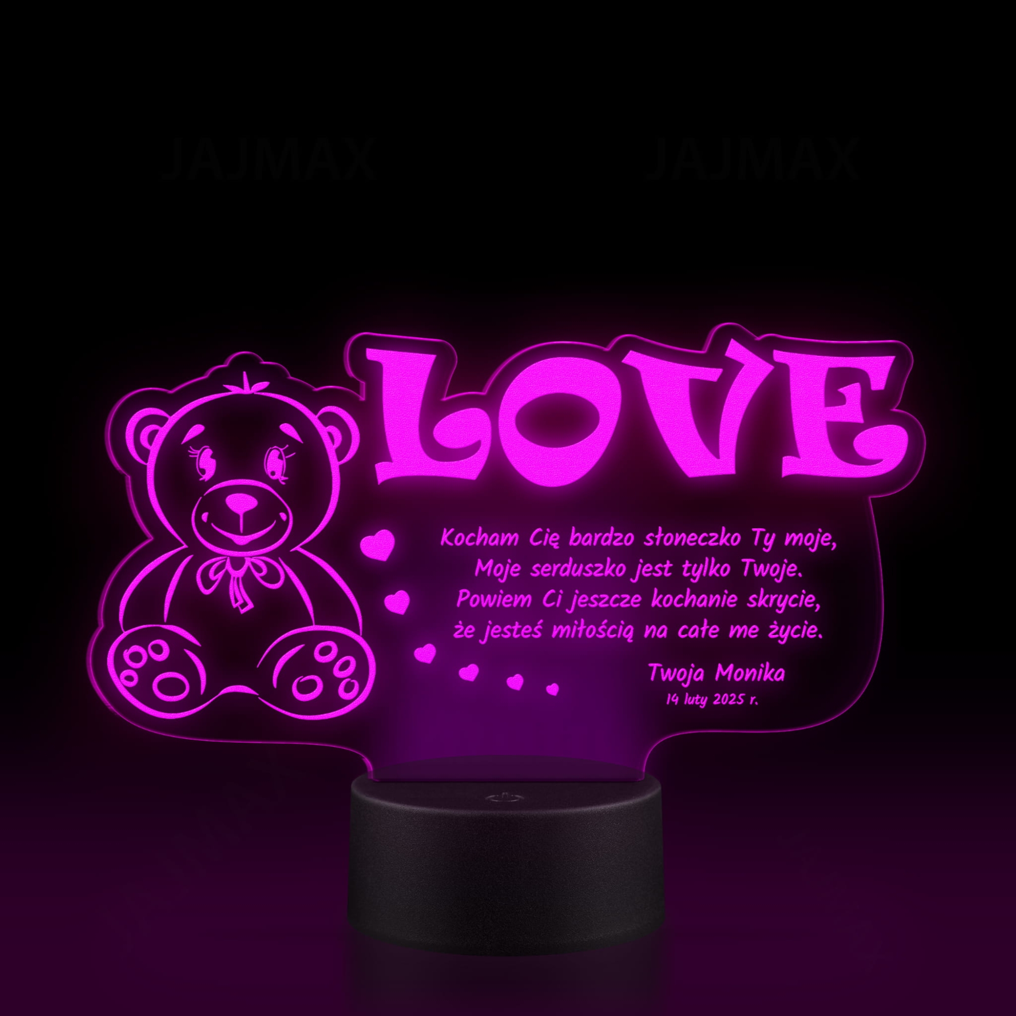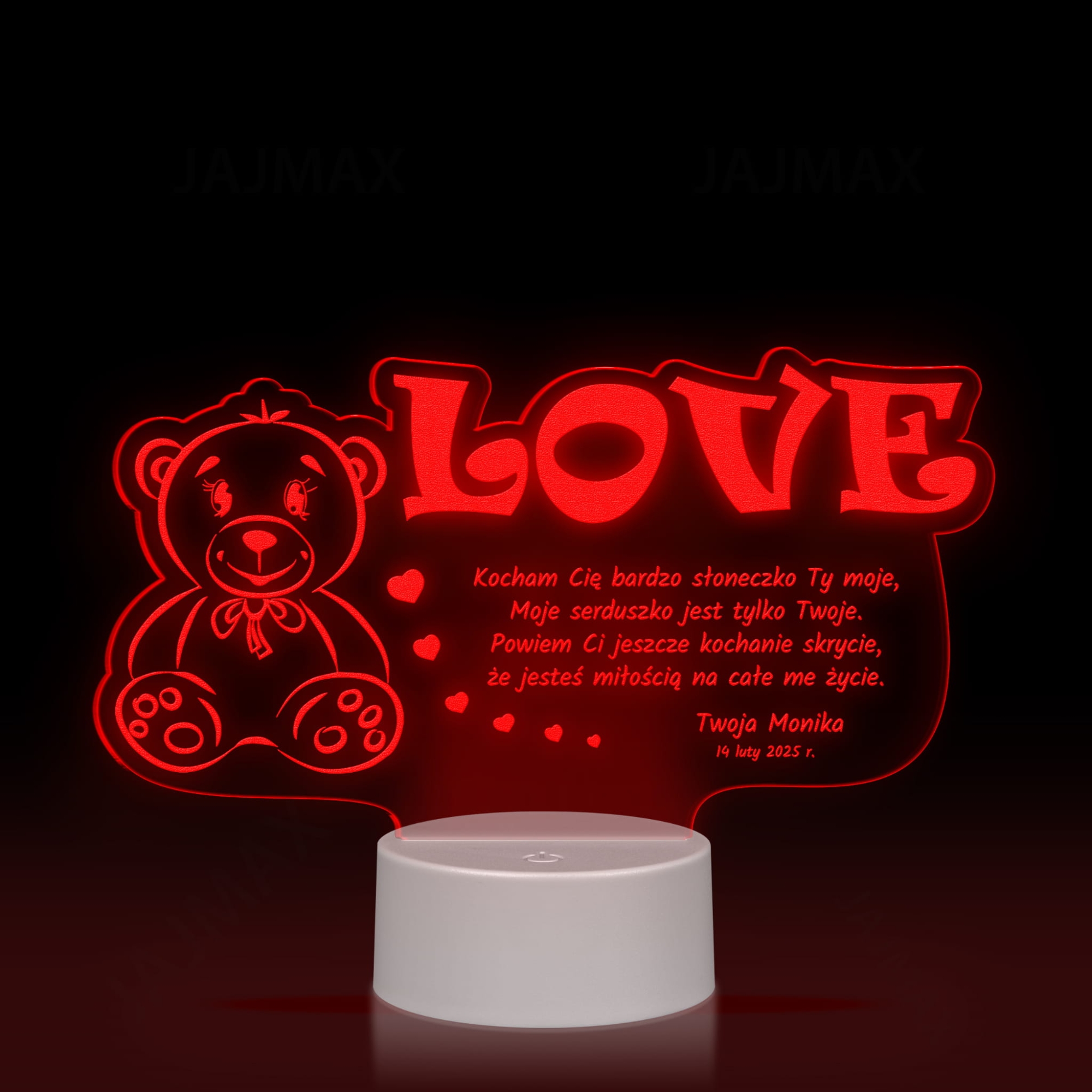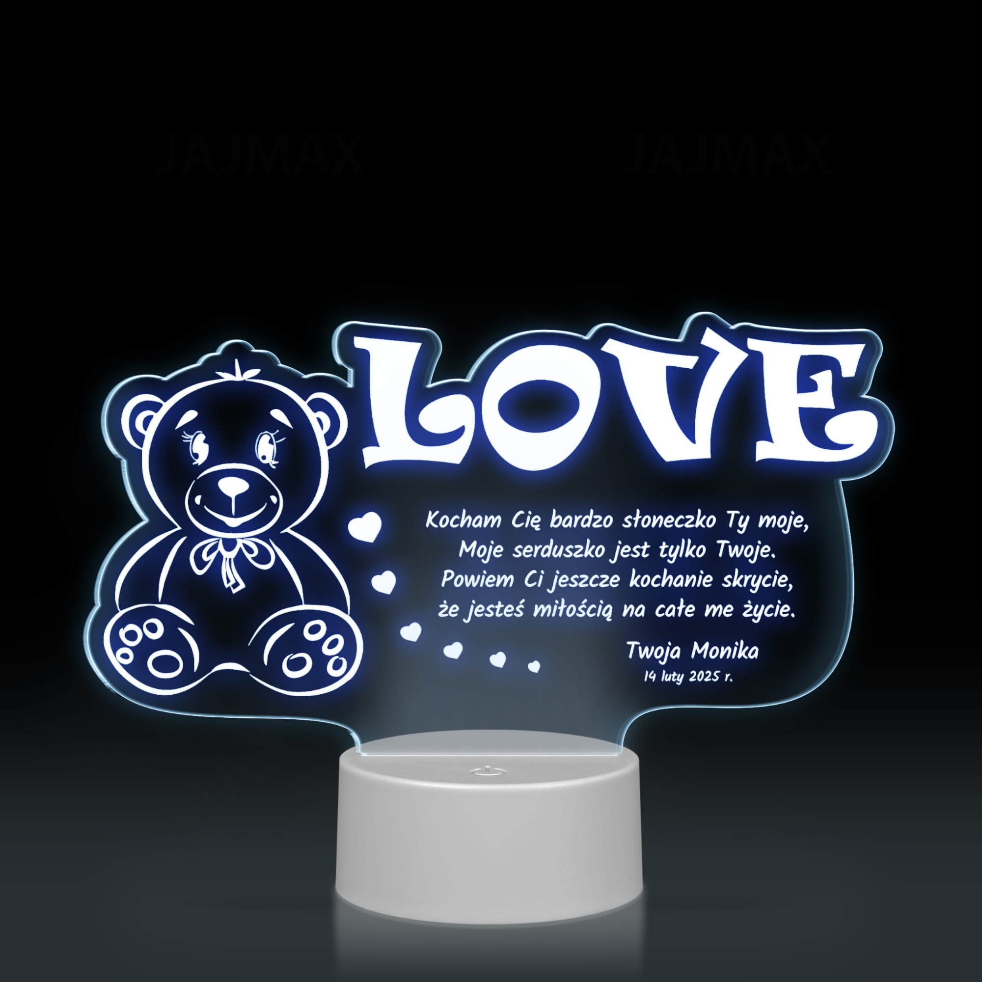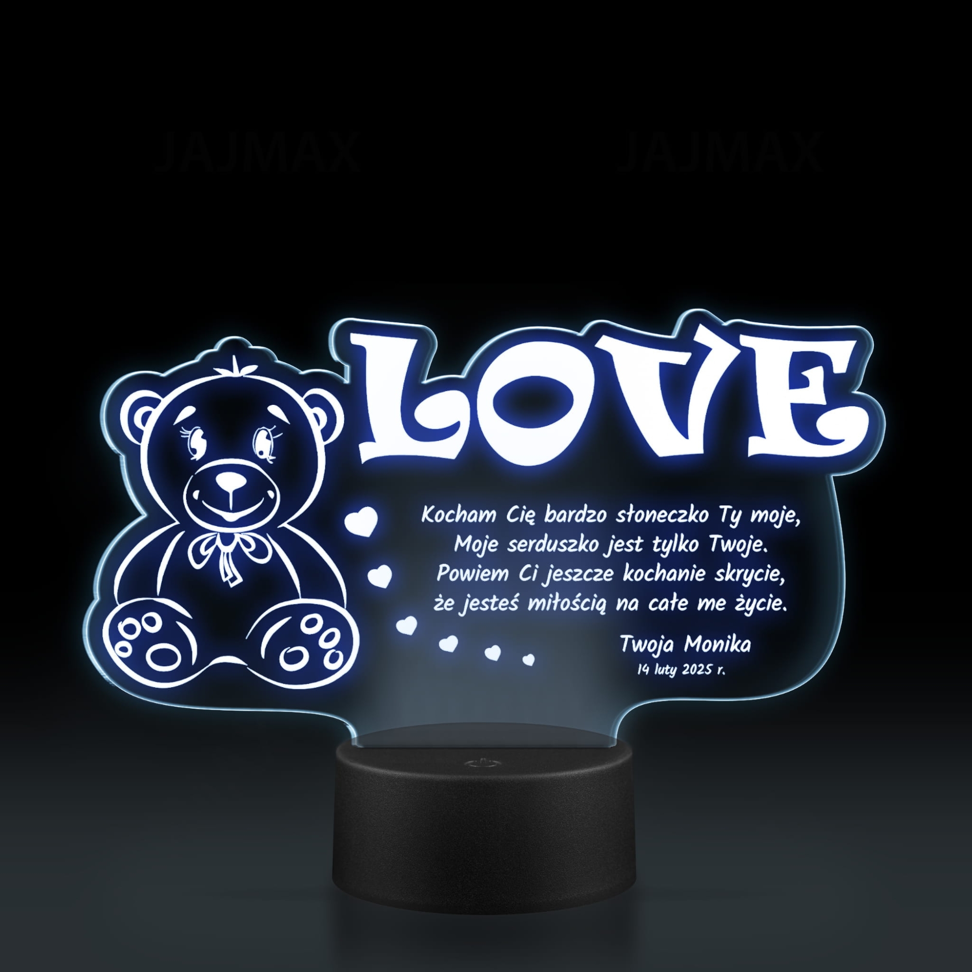 czy prezentu na walentynki dla męża – ta lampka LED LOVE z misiem i grawerem będzie idealnym wyborem.