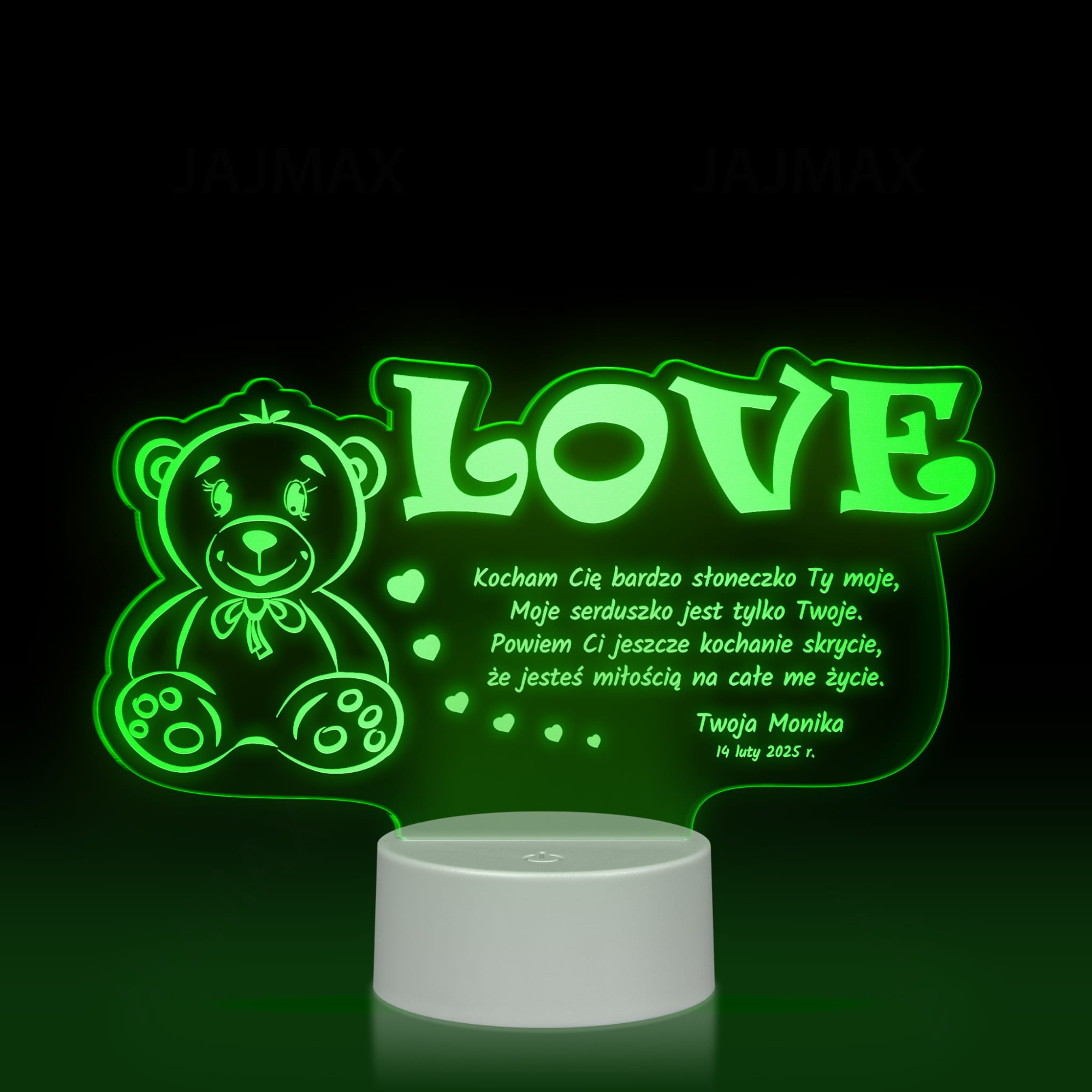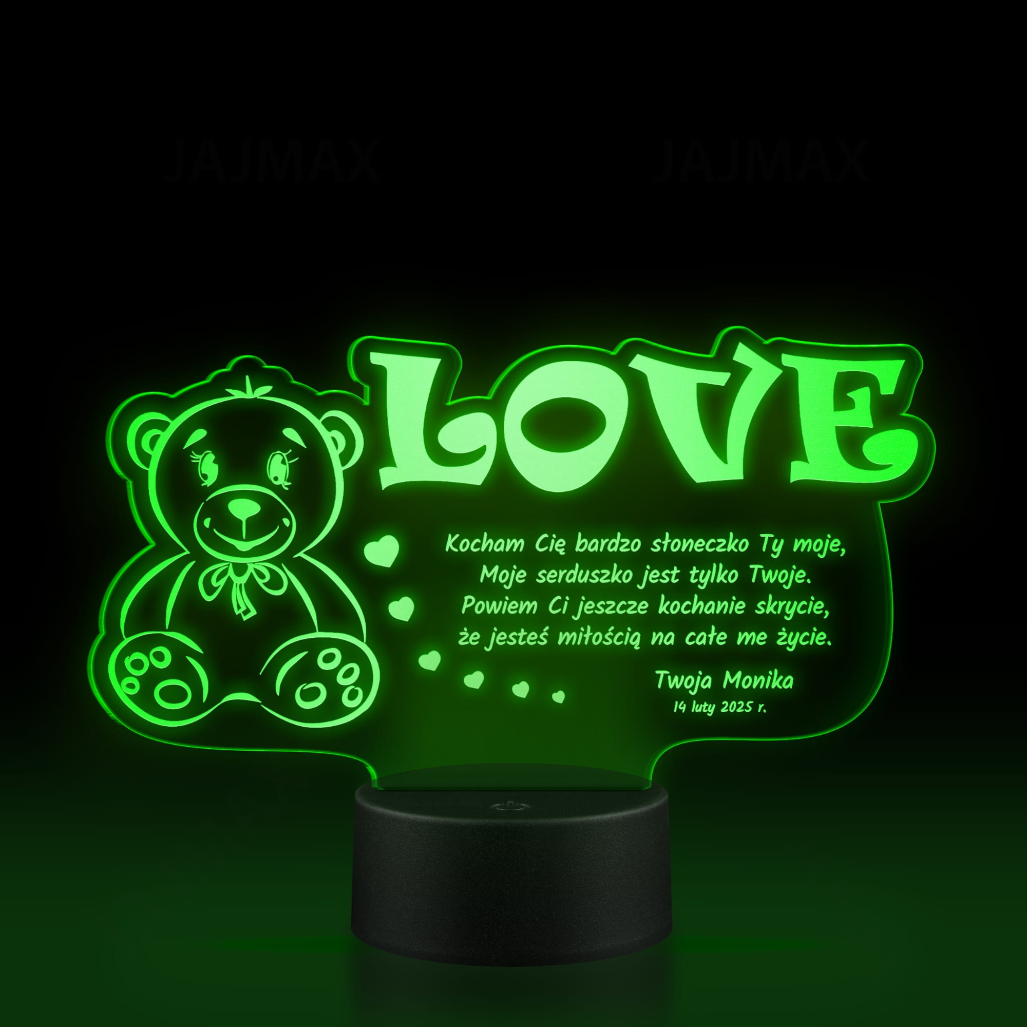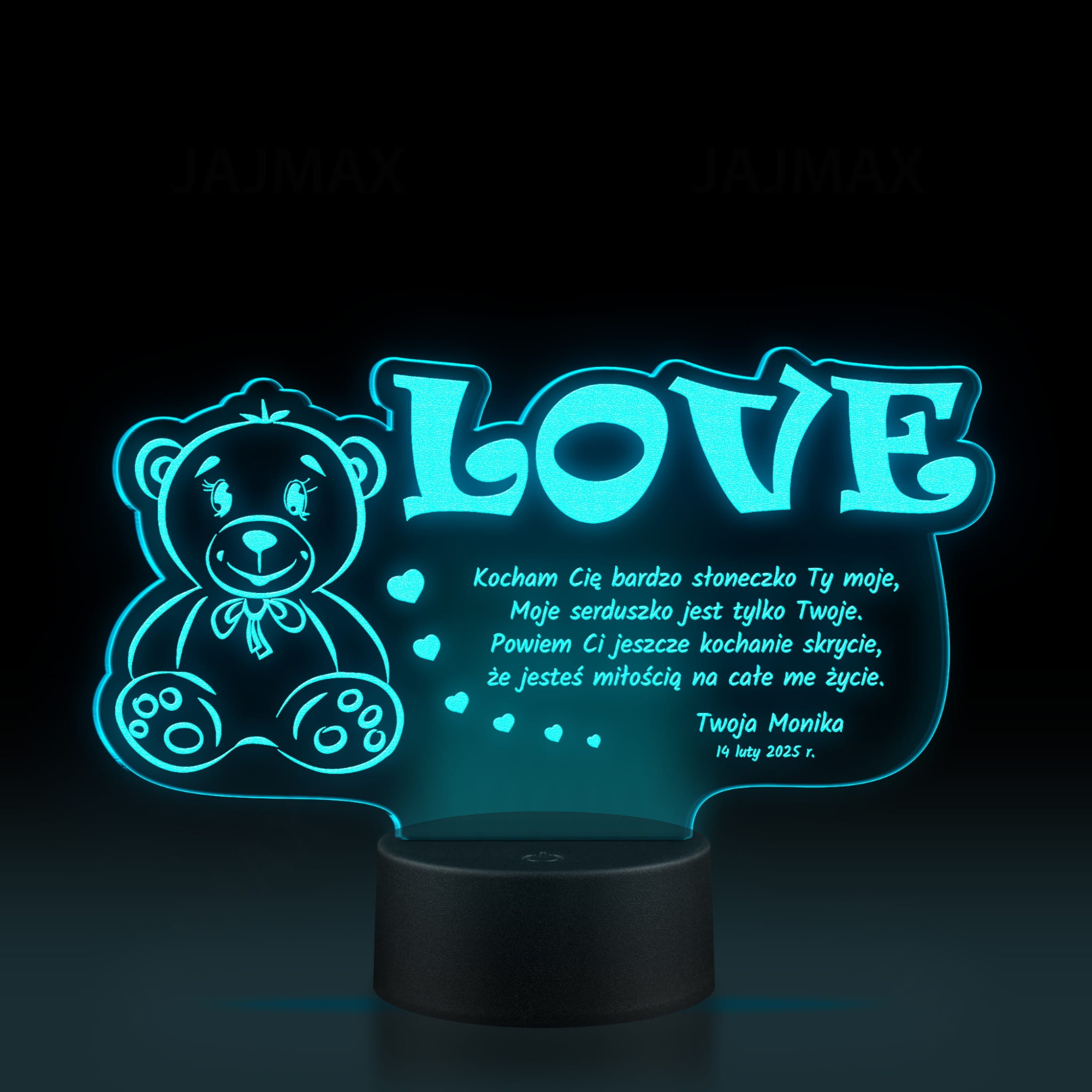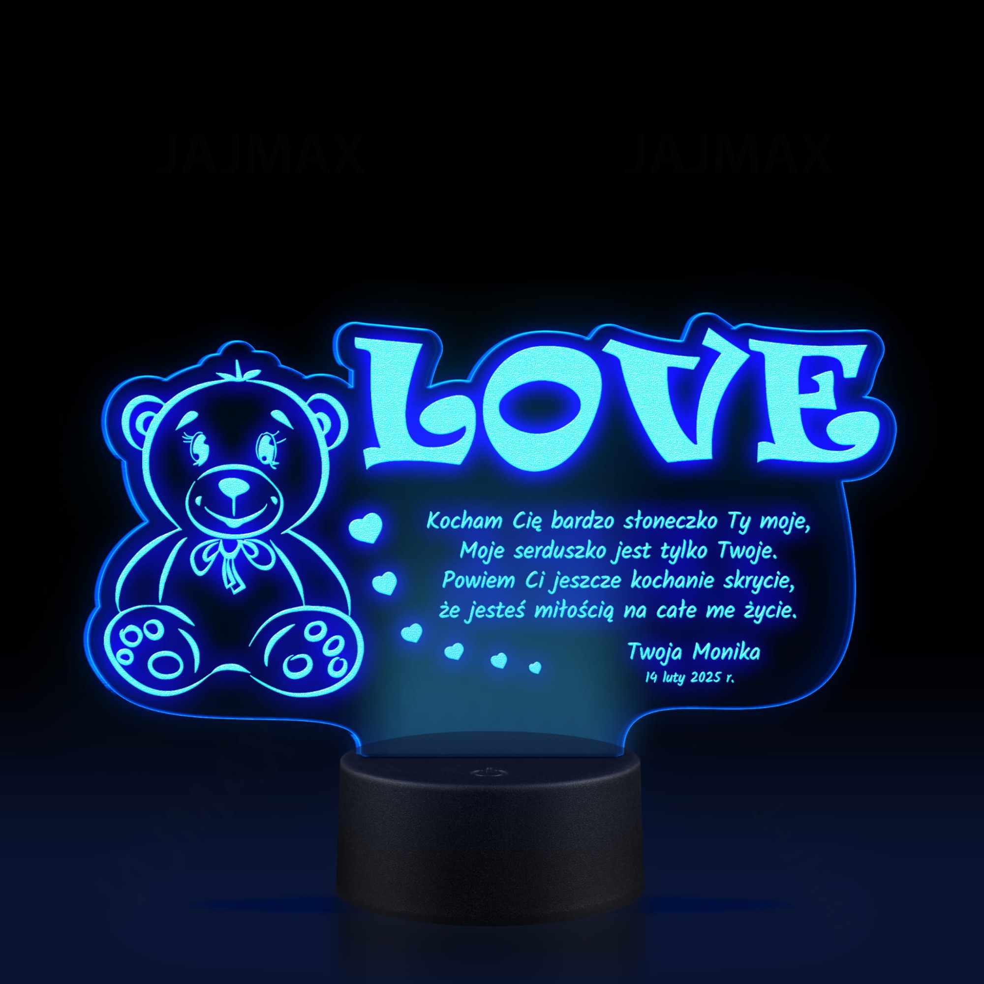 czy prezentu na walentynki dla męża – ta lampka LED LOVE z misiem i grawerem będzie idealnym wyborem.