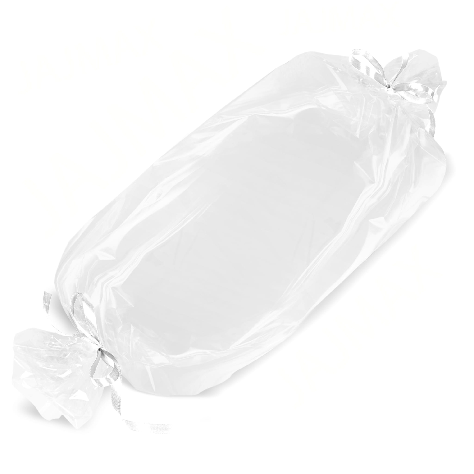 Ozdobny woreczek z przeźroczystego celofanu wraz z dwoma wstążeczkami do samodzielnego zapakowania na prezent. Prezent możesz zawiązać w formie cukierka :)