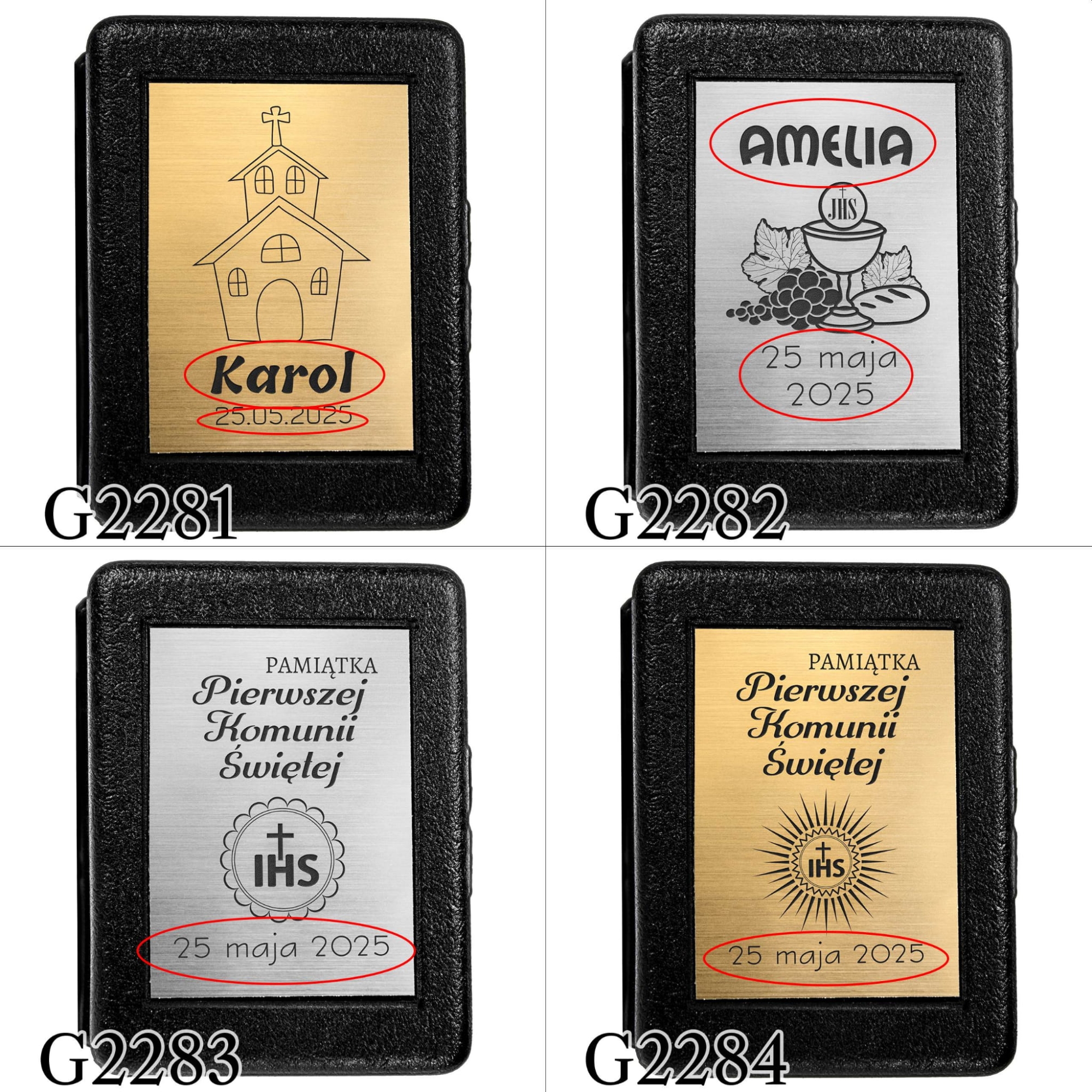 - Kolor tabliczki: złoty lub srebrny