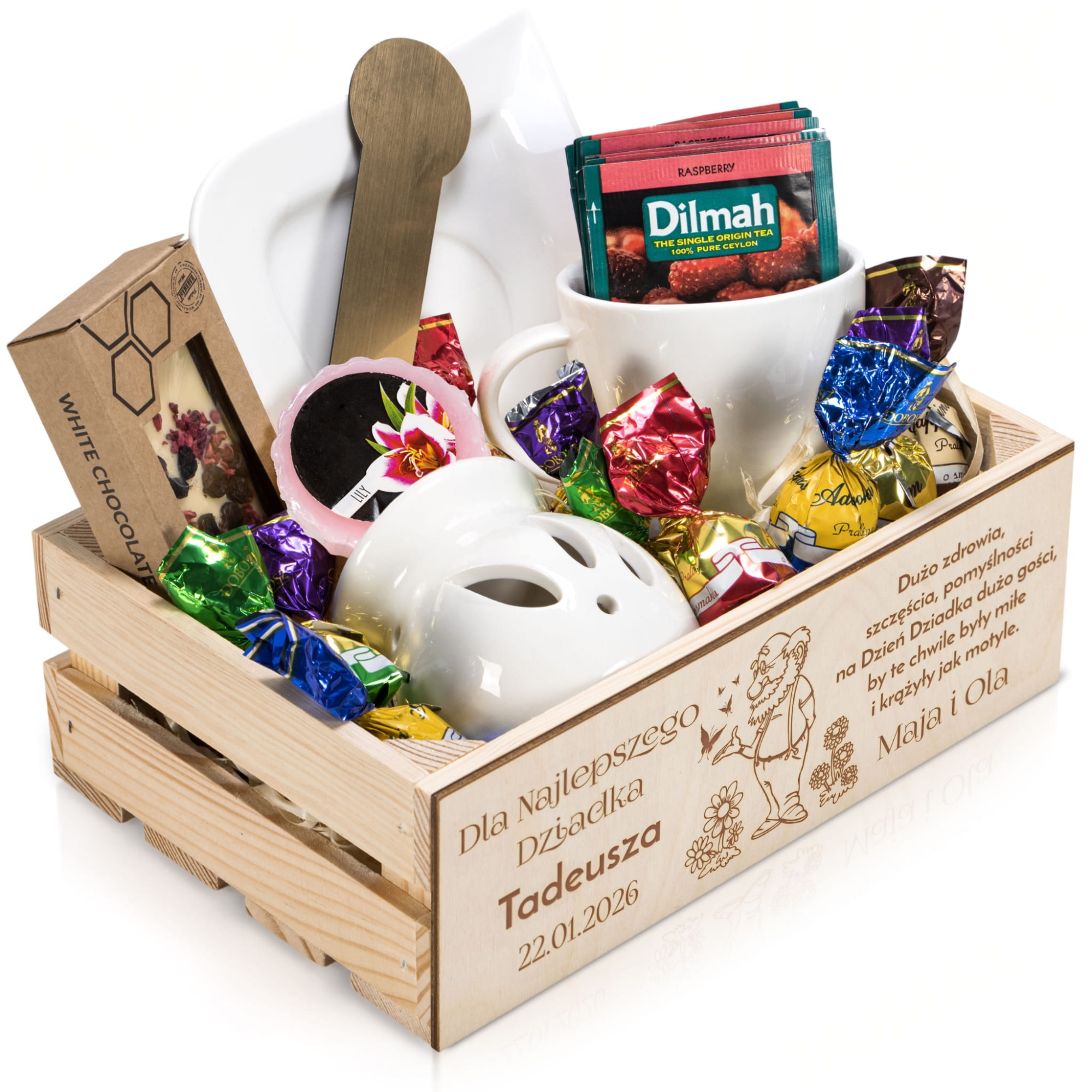 ZESTAW PREZENTOWY Dla Babci Na Dzień Babci grawer PIĘKNY KOSZ PREZENTOWY NA DZIEŃ DZIADKA prezent dla Dziadka imię SUPER KOSZ PREZENTOWY zestaw dla Babci na Dzień Babci z imieniem BOX PREZENTOWY DLA BABCI życzenia grawer z imieniem super prezent DREWNIANA SKRZYNECZKA zestaw upominkowy na Dzień Dziadka grawer Wyjątkowy prezent na DZIEŃ BABCI KOSZ PREZENTOWY nadruk Kosz Upominkowy Dla Babci Dla Dziadka Nadruk