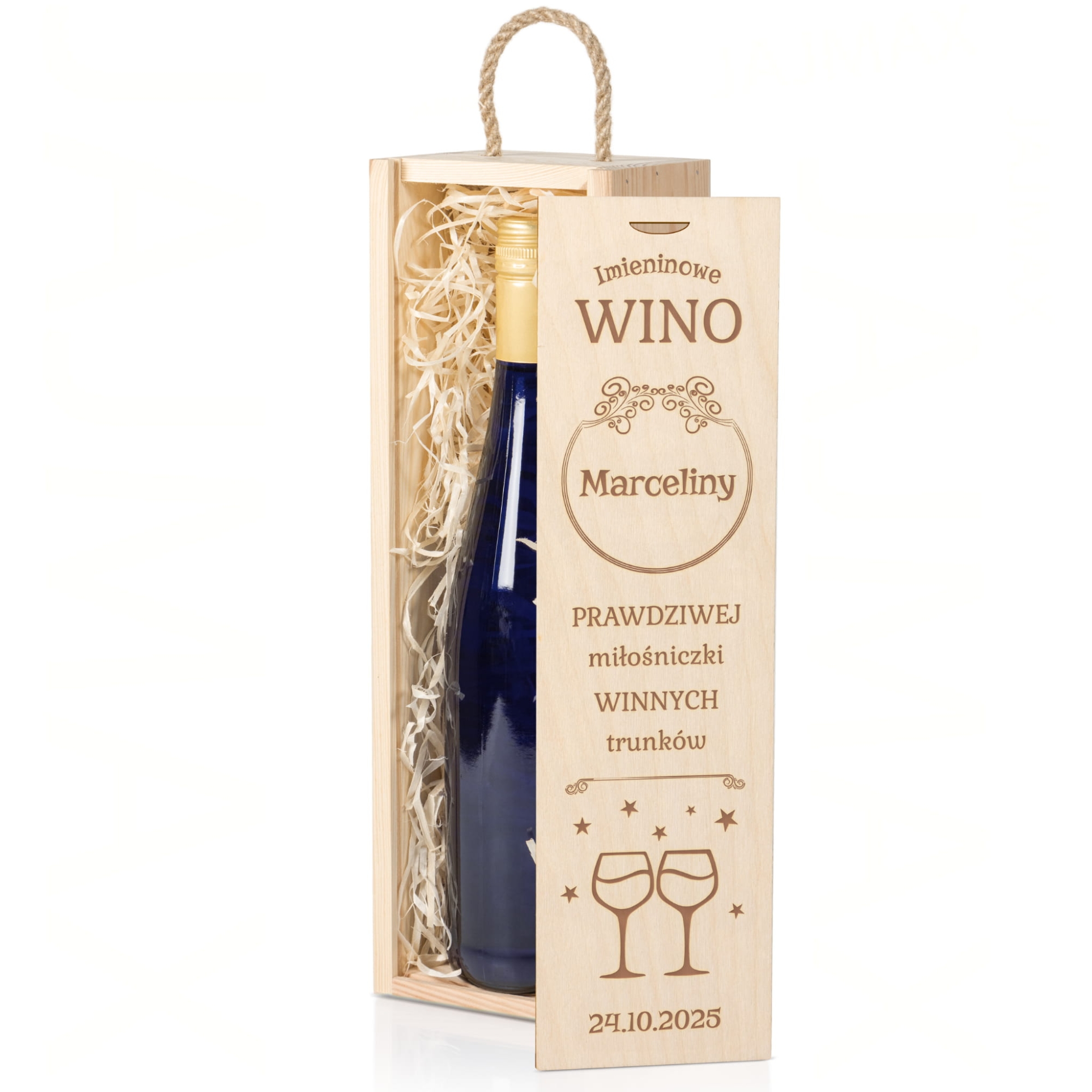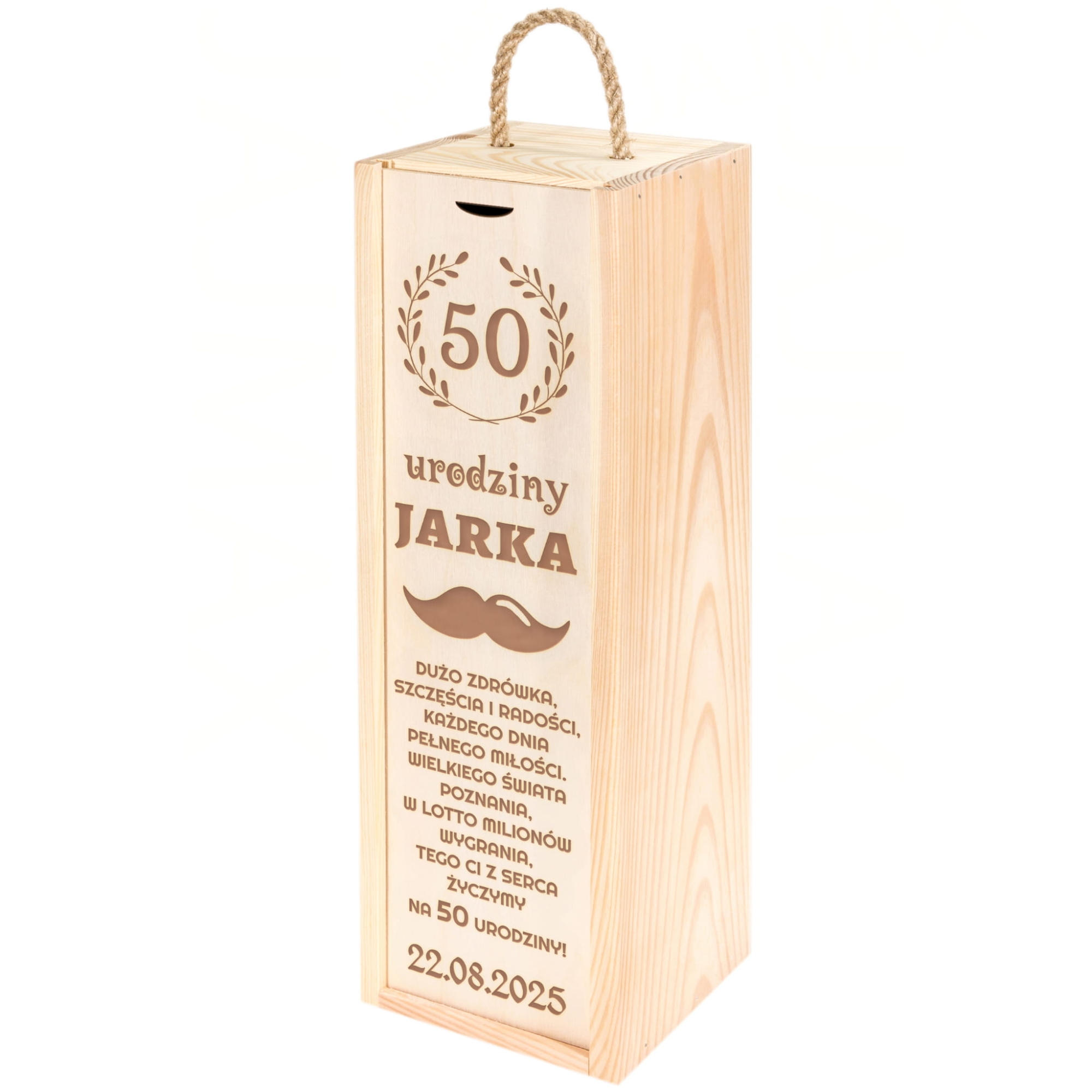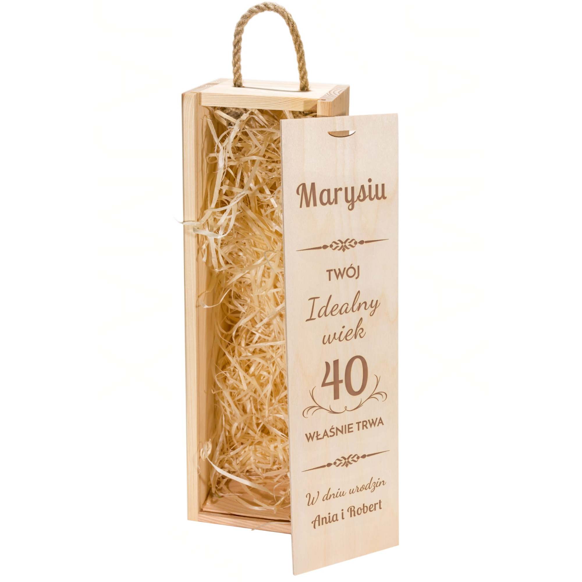 Grawerowana skrzynka na wino to świetny pomysł na prezent na urodziny. Drewniana skrzynka to oryginalny sposób na zapakowanie ulubionego wina lub mocniejszego trunku solenizanta. W naszej ofercie znajdziesz wzory idealne na prezent na 18stkę, prezent na 30tkę, prezent na 40stkę i inne okrągłe urodziny, a także na prezent na imieniny. Grawerowana skrzynka na alkohol wypełniona jest dekoracyjną wełną drzewną, dzięki temu butelka wygląda elegancko i dodatkowo jest zabezpieczona przed wstrząsami. Spersonalizowany prezent na urodziny to doskonały wybór, który z pewnością przypadnie do gustu każdemu solenizantowi.