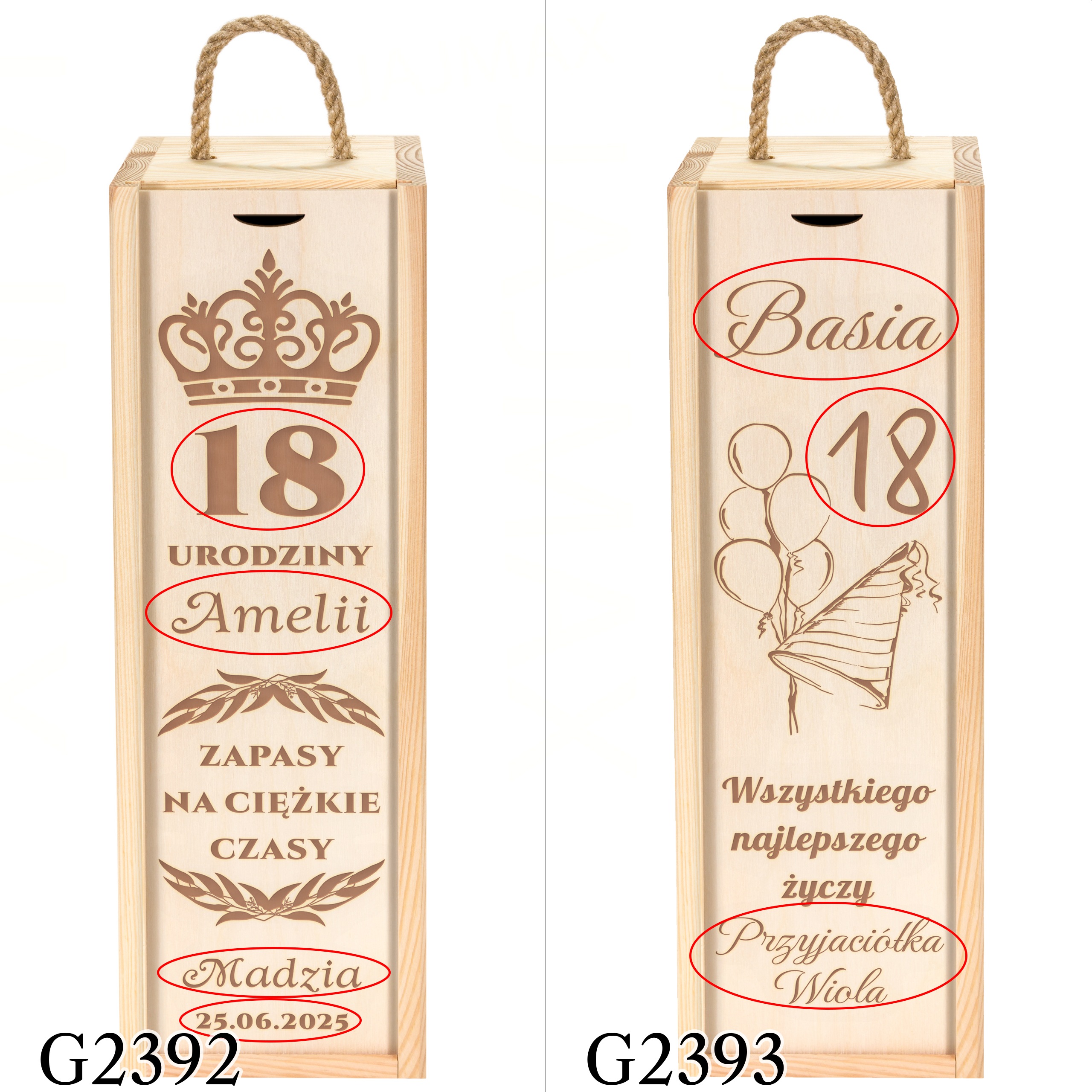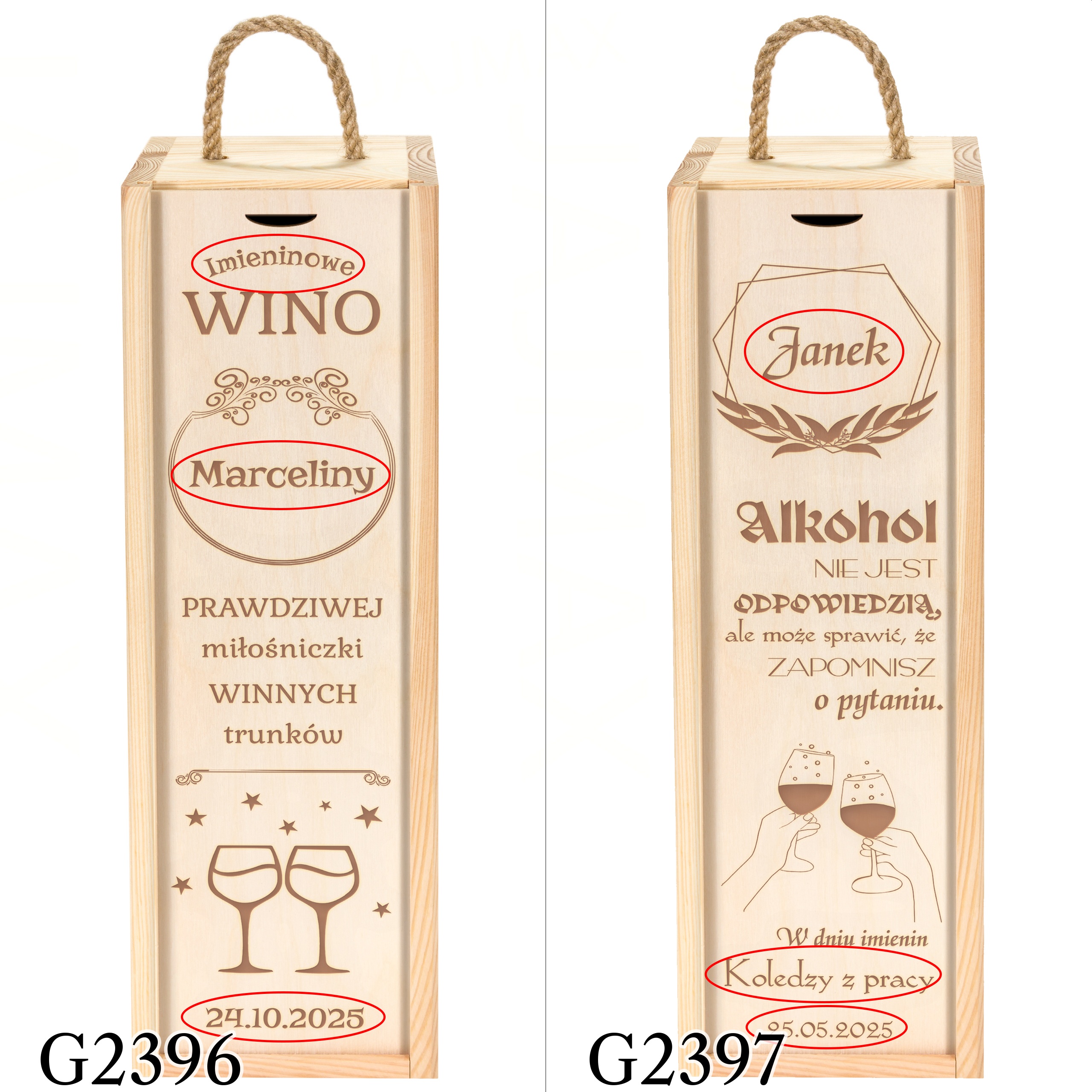 • wyślij do nas tekst w formie dokładnie takiej, jaka ma zostać umieszczona na produkcie tj. z zastosowaniem odpowiedniej pisowni, interpunkcji, odmiany imion itp.