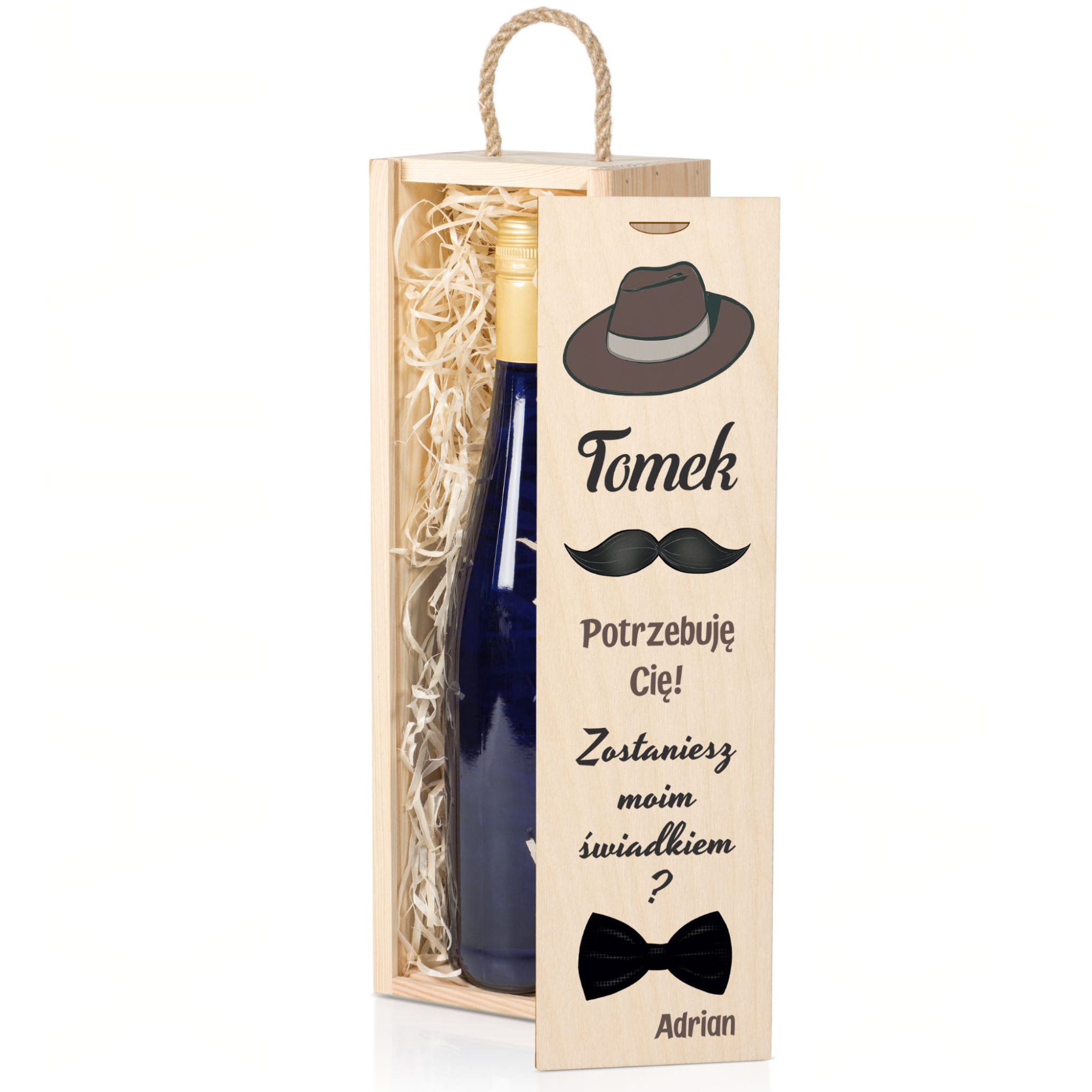 SKRZYNKA NA WINO prezent dla świadka pytanie nadruk