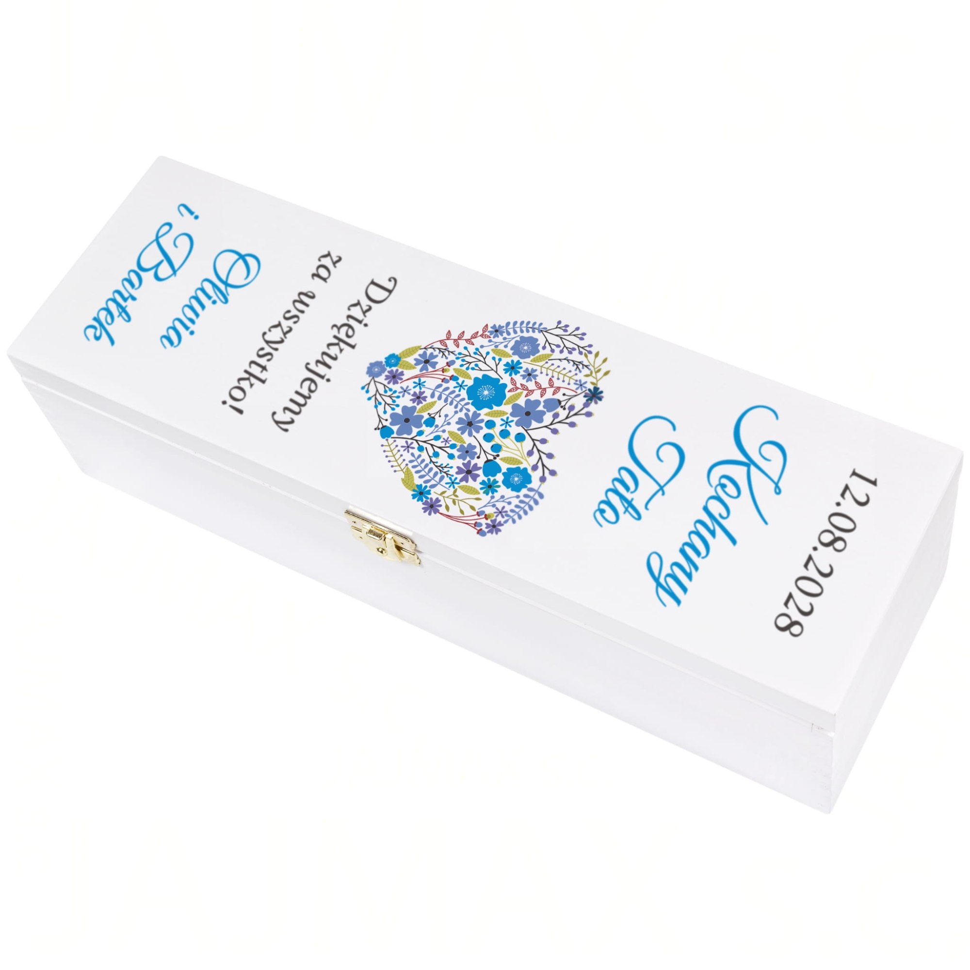 Drewniana, biała skrzynka na wino z indywidualnym nadrukiem
