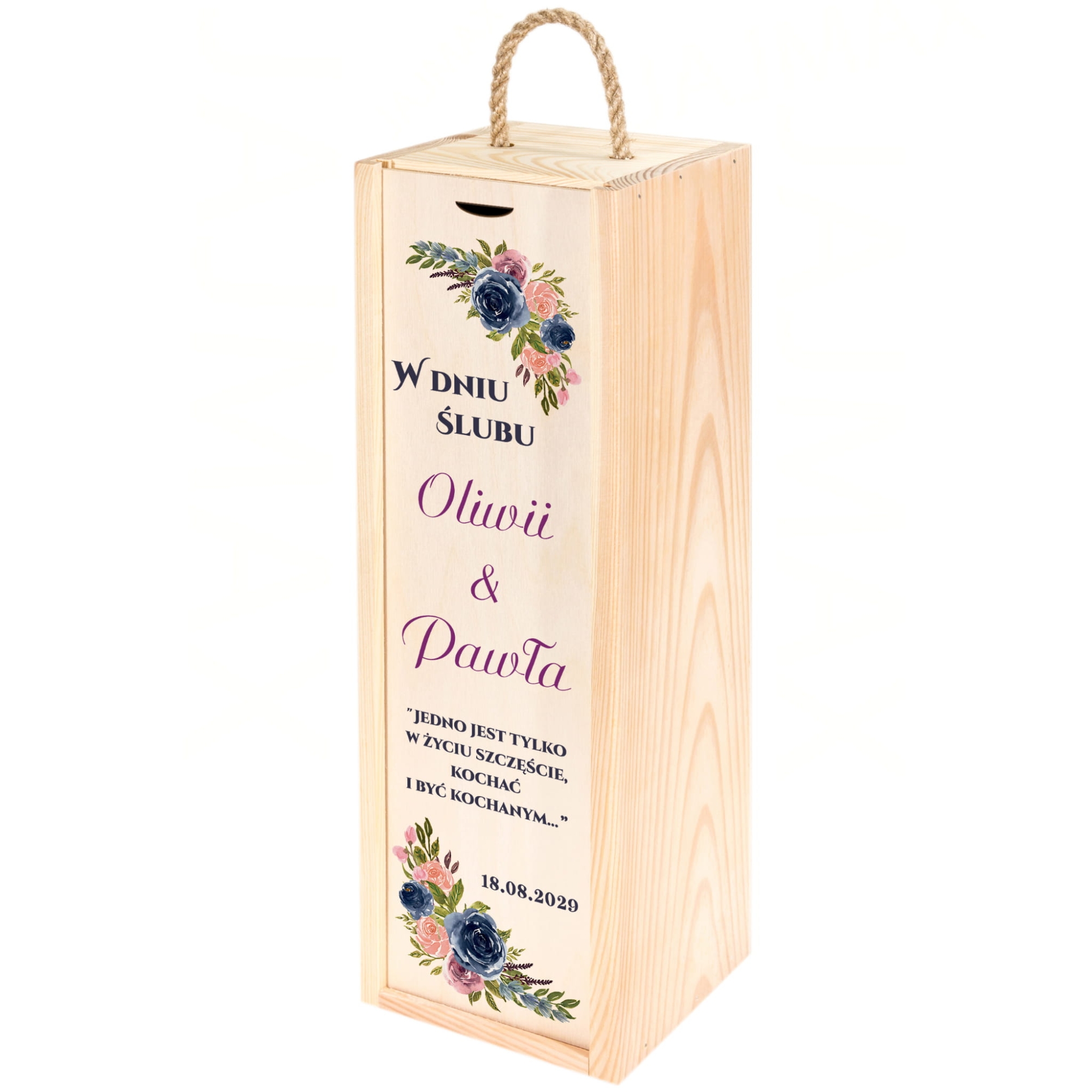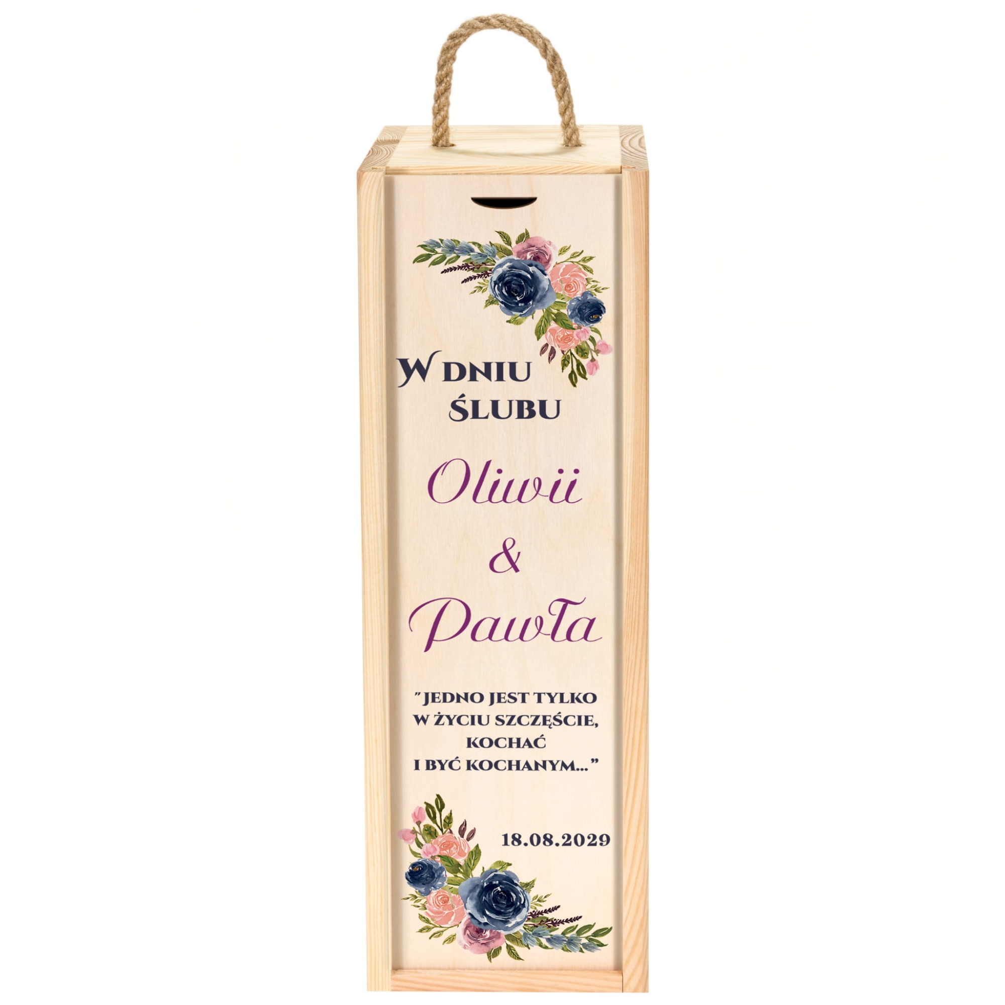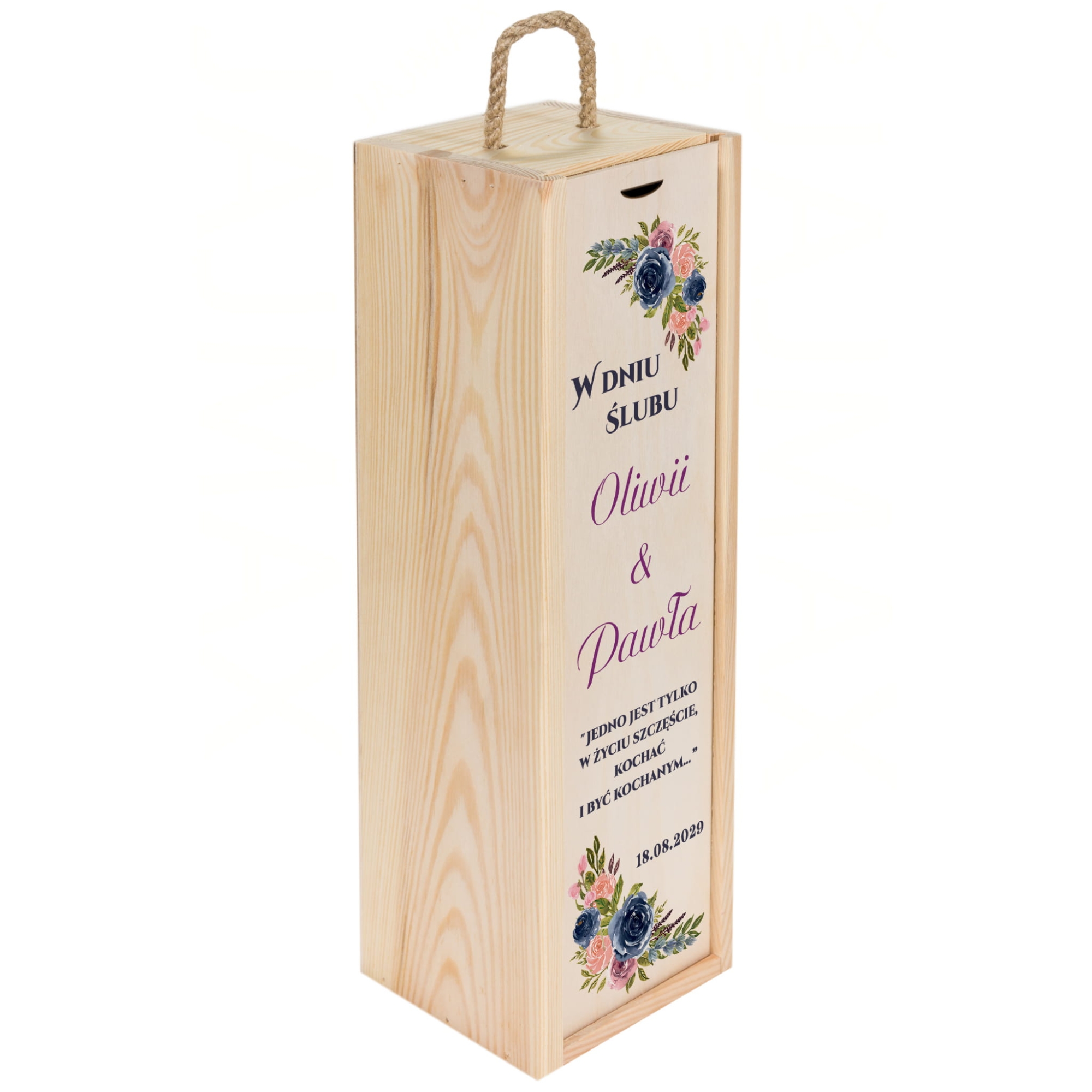 SKRZYNKA NA WINO upominek na ślub wesele na zasuwkę nadruk