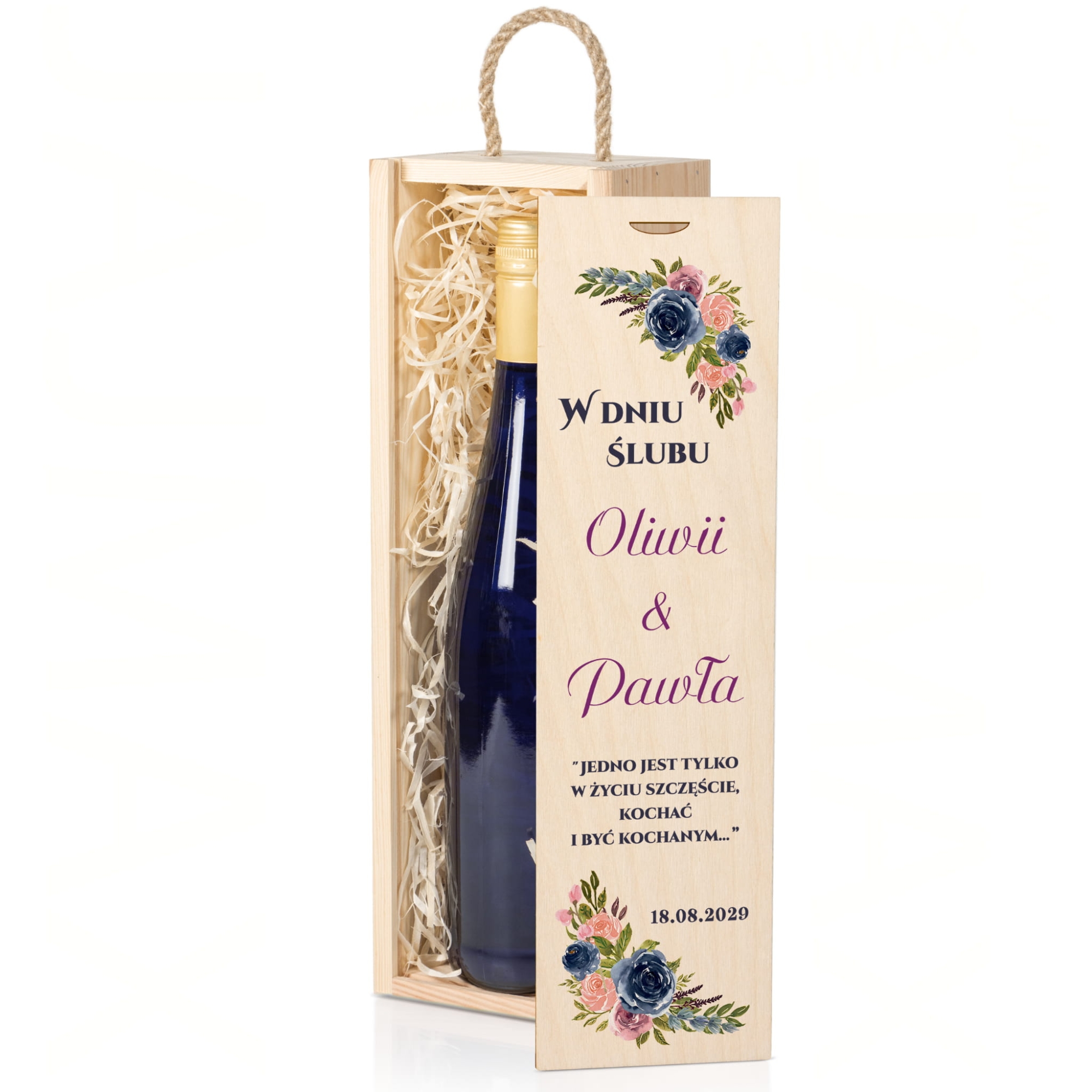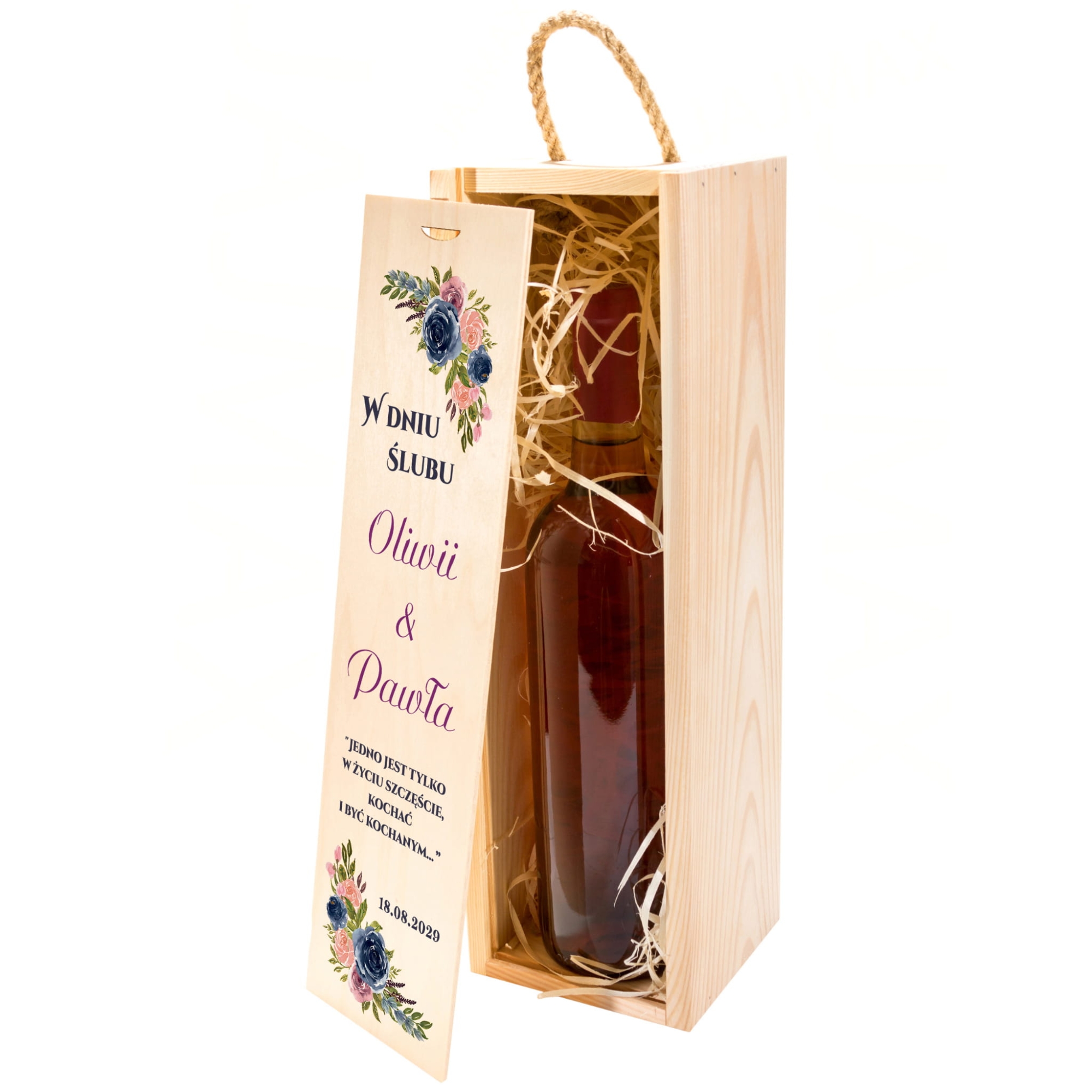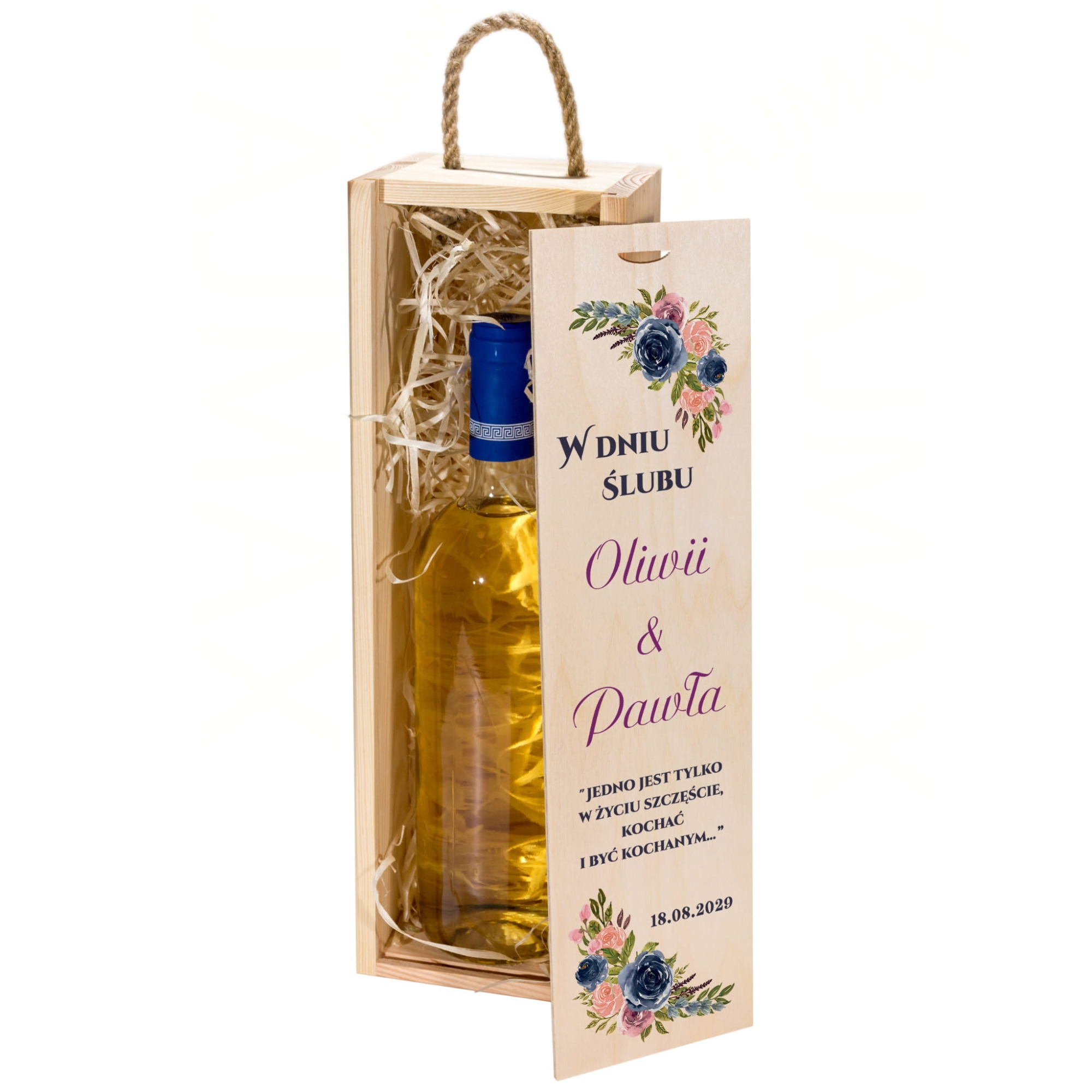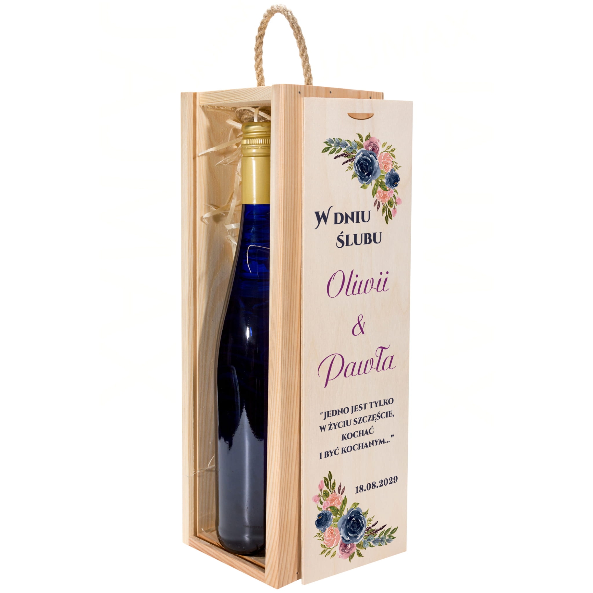SKRZYNKA NA WINO upominek na ślub wesele na zasuwkę nadruk