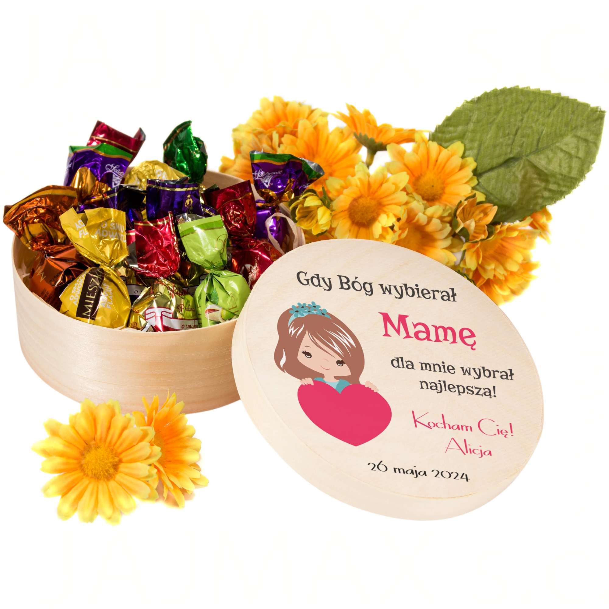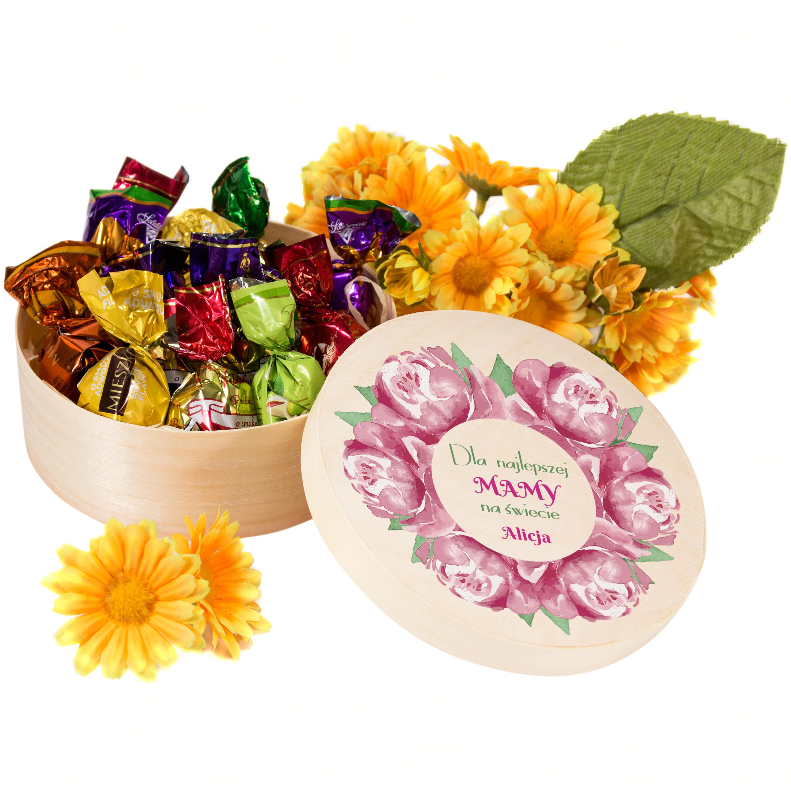 Niedługo bardzo ważne święto w kalendarzu czyli Dzień Matki. Nie zwlekaj do ostatniej chwili i już teraz rozejrzyj się i wybierz wyjątkowy prezent dla mamy. Nasza propozycja na oryginalny pomysł na prezent dla mamy to okrągłe pudełko z pralinami z kolorowym, indywidualnym nadrukiem. Słodycze i kwiaty to najczęściej wręczane upominki z okazji Dnia Matki, dlatego dla odmiany świetną opcją jest wręczenie cukierków w ozdobnym pudełku z pięknymi kwiatowymi grafikami. Twój nadruk sprawi, że tegoroczny prezent na dzień mamy będzie niepowtarzalny. Piękne życzenia od córki lub syna umieszczone na wieczku pudełka będą towarzyszyć mamie przy codziennych czynnościach. Świetnie sprawdzi się właśnie do przechowywania łokoci, jako organizer na kosmetyki lub szkatułka na biżuterię.