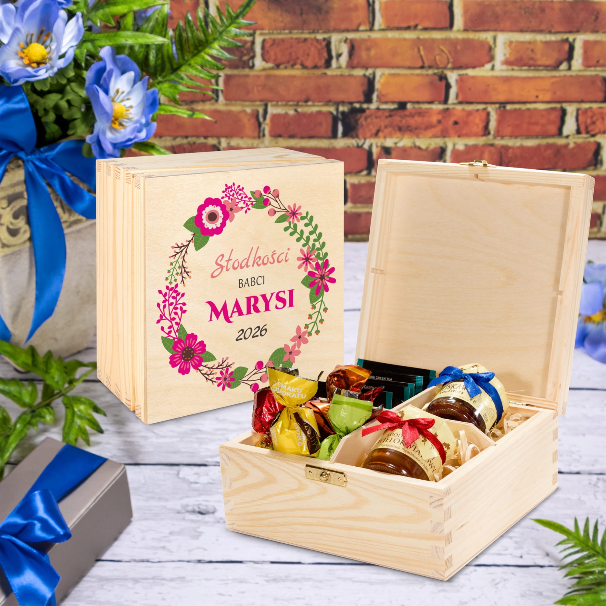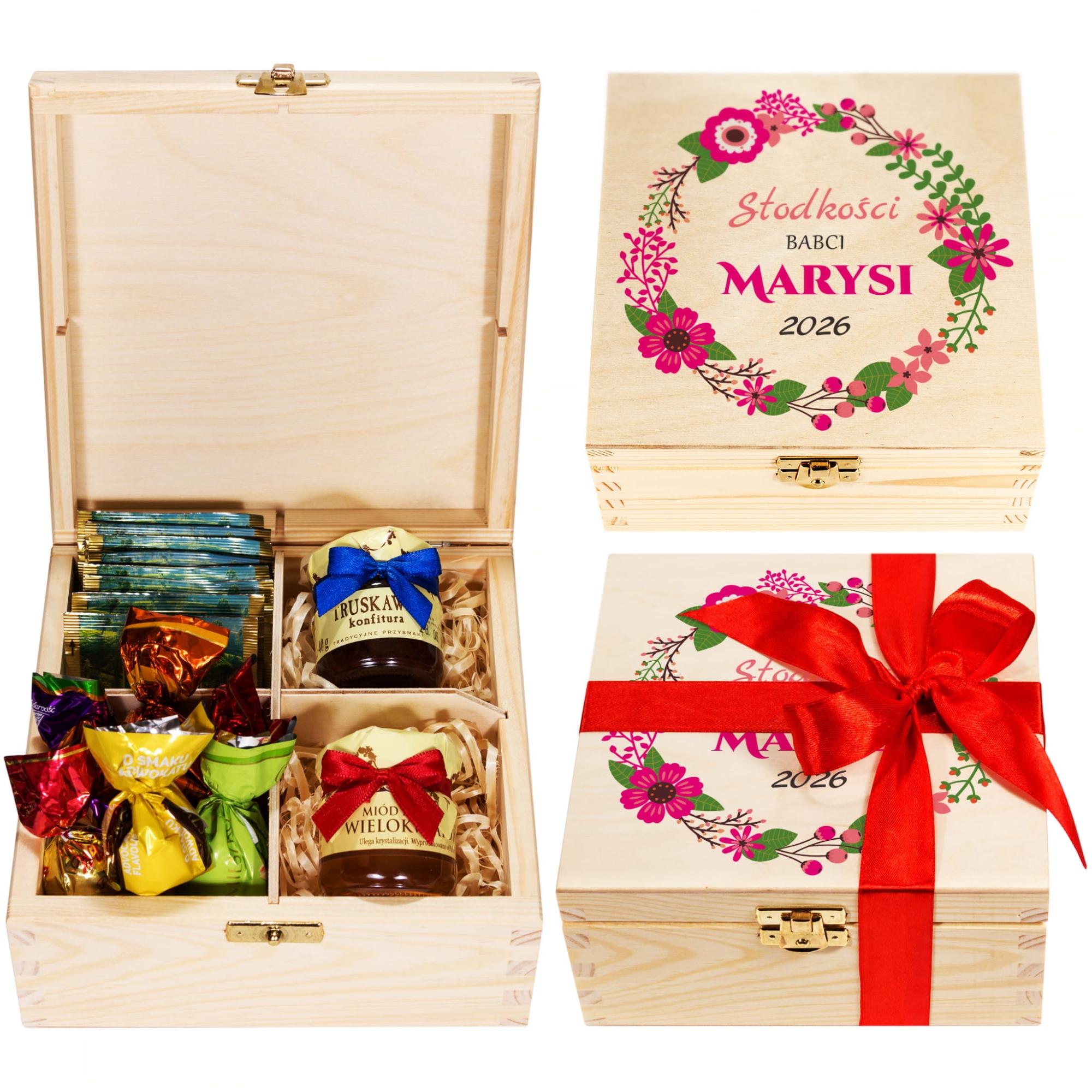 SŁODKOŚCI BABCI pudełko z imieniem POMYSŁ NA PREZENT NA DZIEŃ BABCI