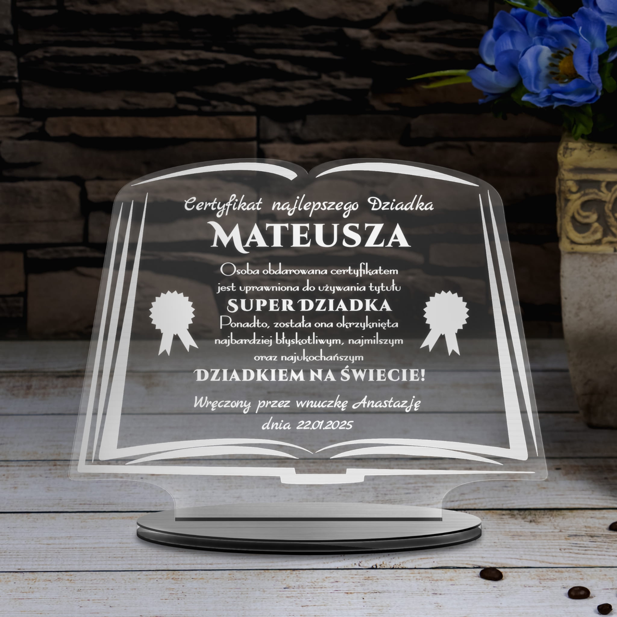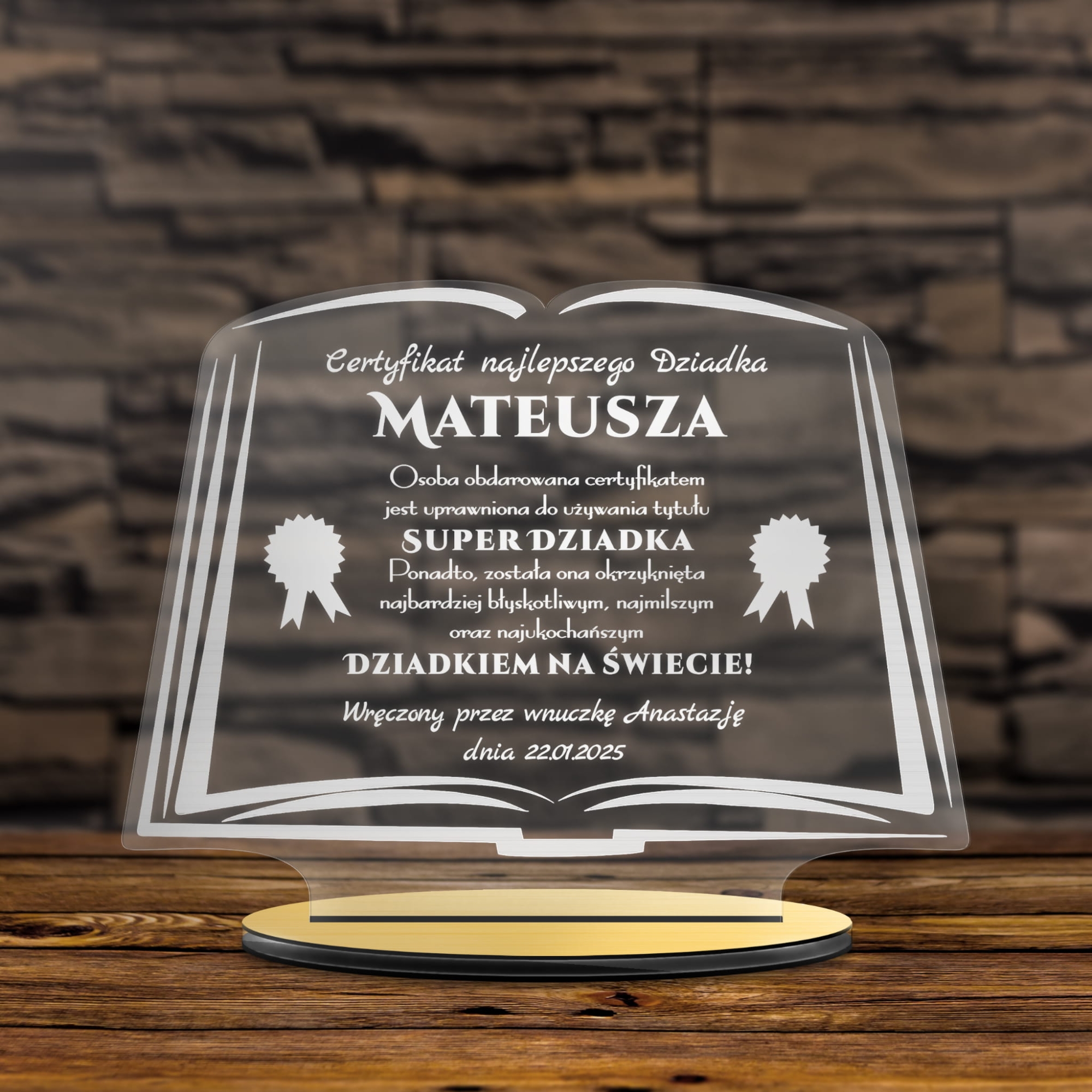 STATUETKA KSIĘGA podziękowanie na dzień dziadka od wnuków
