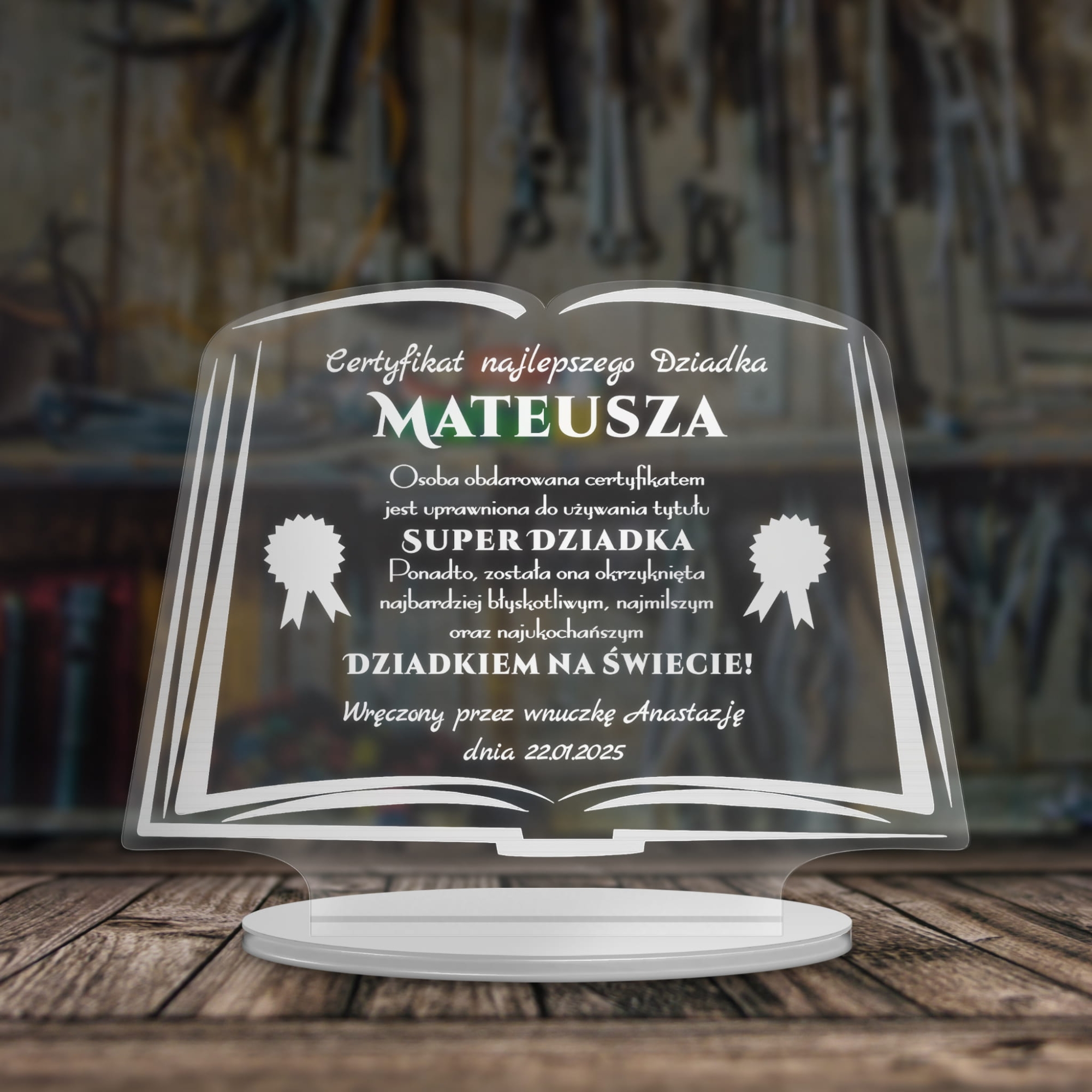Statuetka z życzeniami na DZIEŃ BABCI nadruk Statuetka certyfikat najlepszego dziadka prezent DZIEŃ DZIADKA STATUETKA SERCE dla dziadków z okazji dnia babci i dziadka Statuetka dla dziadka z życzeniami PREZENT NA DZIEŃ DZIADKA Statuetka dwa serca PREZENT DLA DZIADKÓW nadruk STATUETKA DWA SERCA Prezent dla Babci z okazji Dnia Babci nadruk STATUETKA SERCE szkło akrylowe prezent na Dzień Babci i Dziadka STATUETKA SERCA z życzeniami prezent na Dzień Babci STATUETKA prezent na Dzień Babci i Dziadka Serce z motylami STATUETKA LIST dyplom dla super Dziadka grawer Statuetka DZIEŃ BABCI DZIEŃ DZIADKA upominek dla dziadków