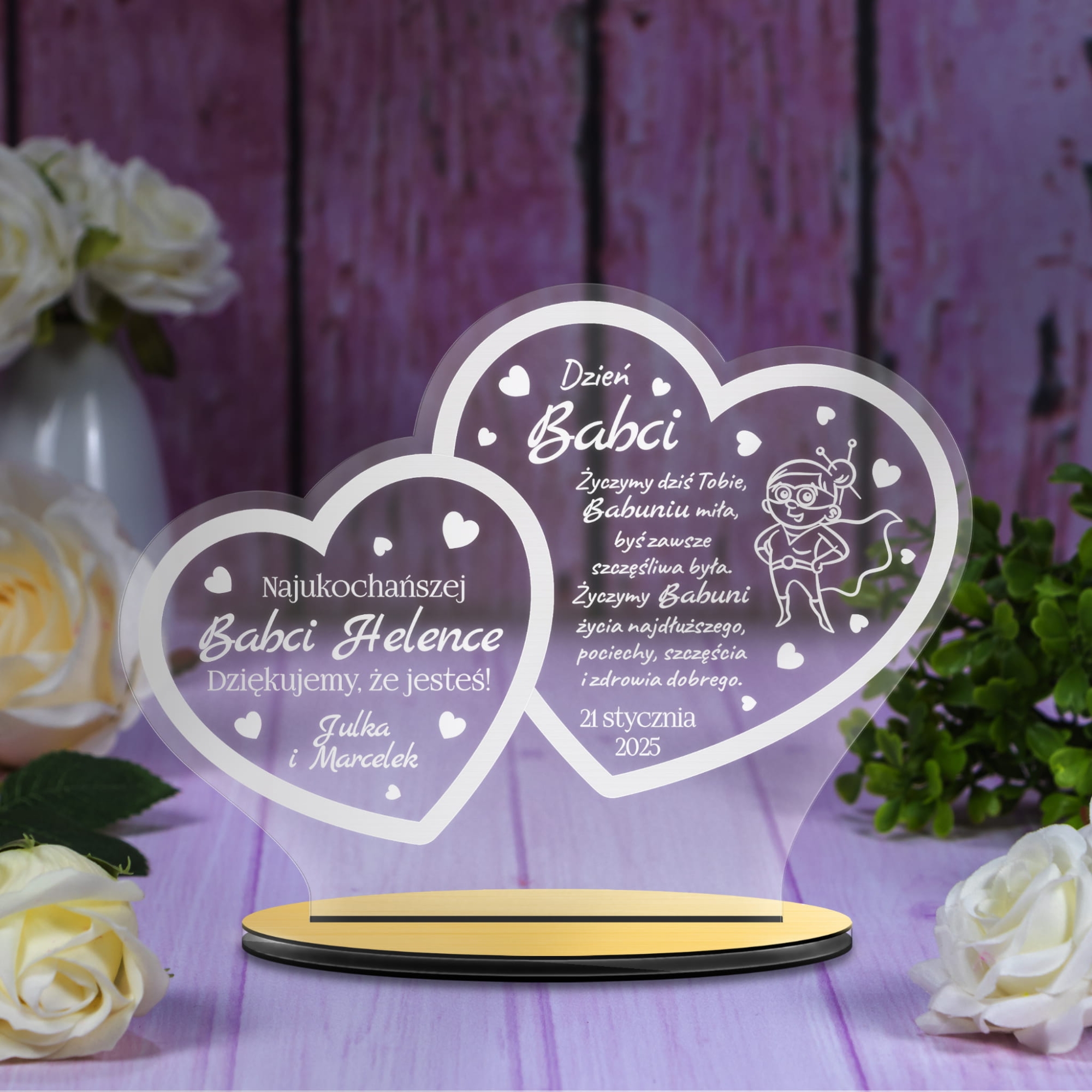 STATUETKA SERCA z życzeniami prezent na Dzień Babci