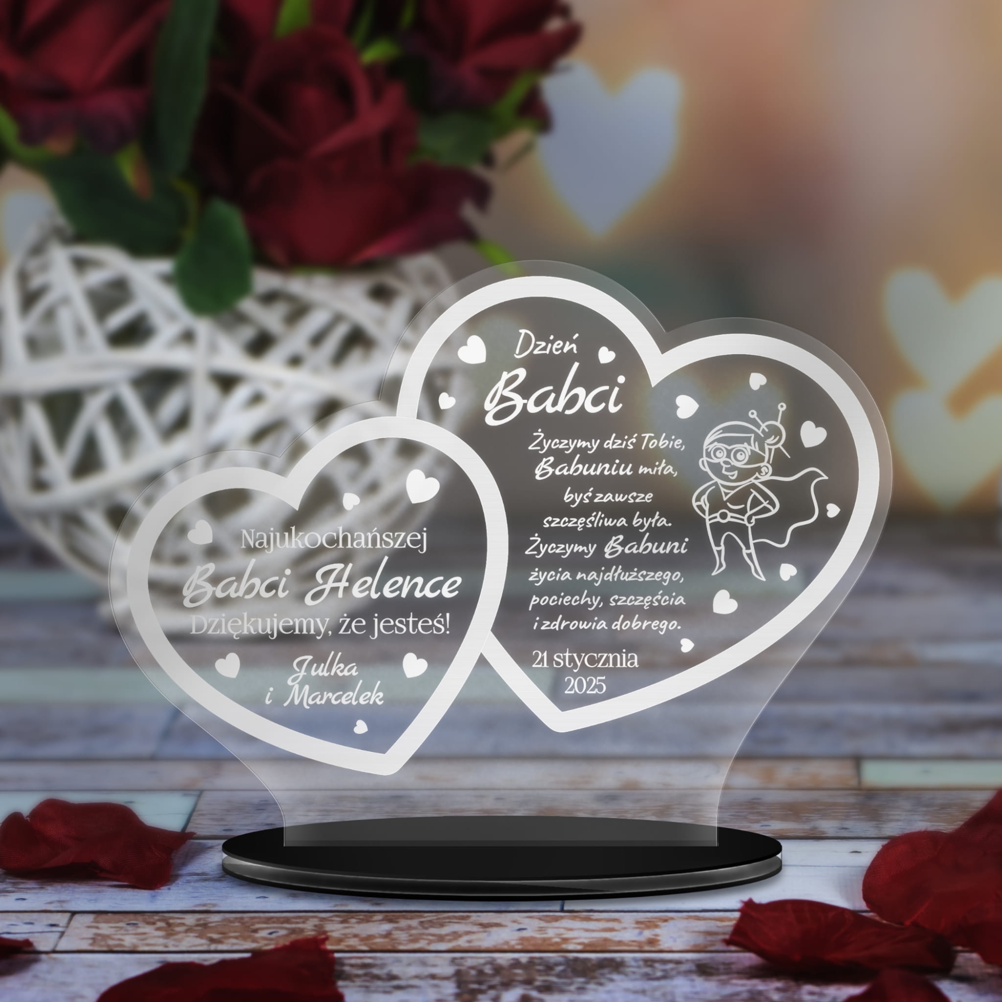 Statuetka z życzeniami na DZIEŃ BABCI nadruk Statuetka certyfikat najlepszego dziadka prezent DZIEŃ DZIADKA STATUETKA SERCE dla dziadków z okazji dnia babci i dziadka STATUETKA KSIĘGA podziękowanie na dzień dziadka od wnuków Statuetka dla dziadka z życzeniami PREZENT NA DZIEŃ DZIADKA STATUETKA SERCE szkło akrylowe prezent na Dzień Babci i Dziadka STATUETKA prezent na Dzień Babci i Dziadka Serce z motylami STATUETKA LIST dyplom dla super Dziadka grawer Statuetka DZIEŃ BABCI DZIEŃ DZIADKA upominek dla dziadków Statuetka dwa serca PREZENT DLA DZIADKÓW nadruk STATUETKA DWA SERCA Prezent dla Babci z okazji Dnia Babci nadruk
