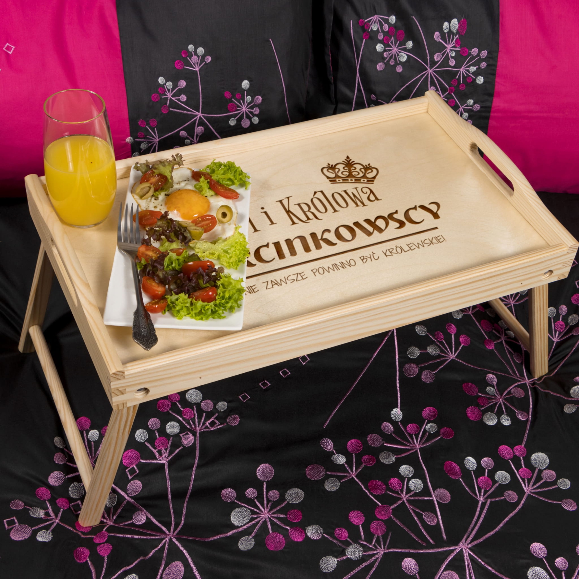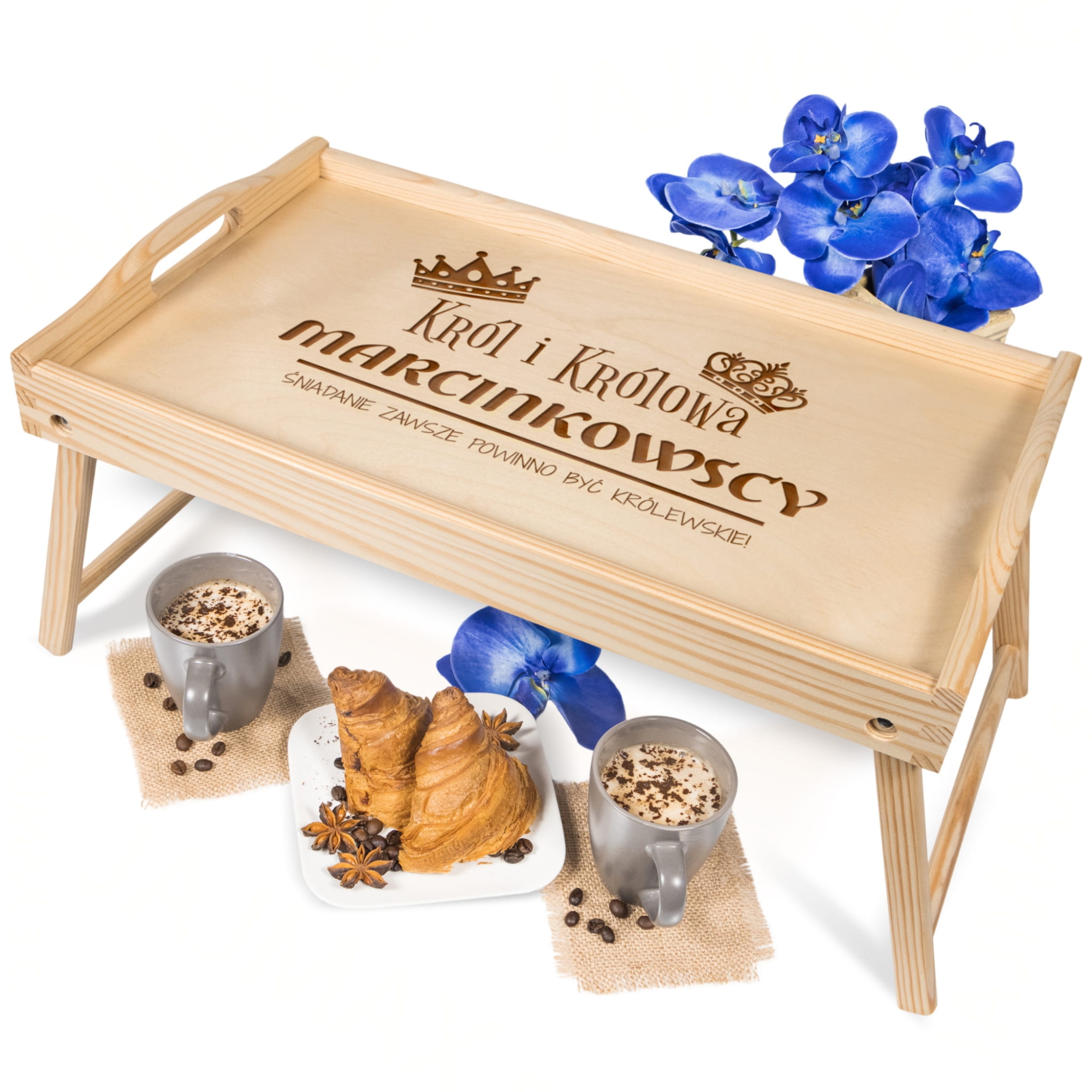 Drewniany stolik śniadaniowy do łóżka dla Pary Młodej
