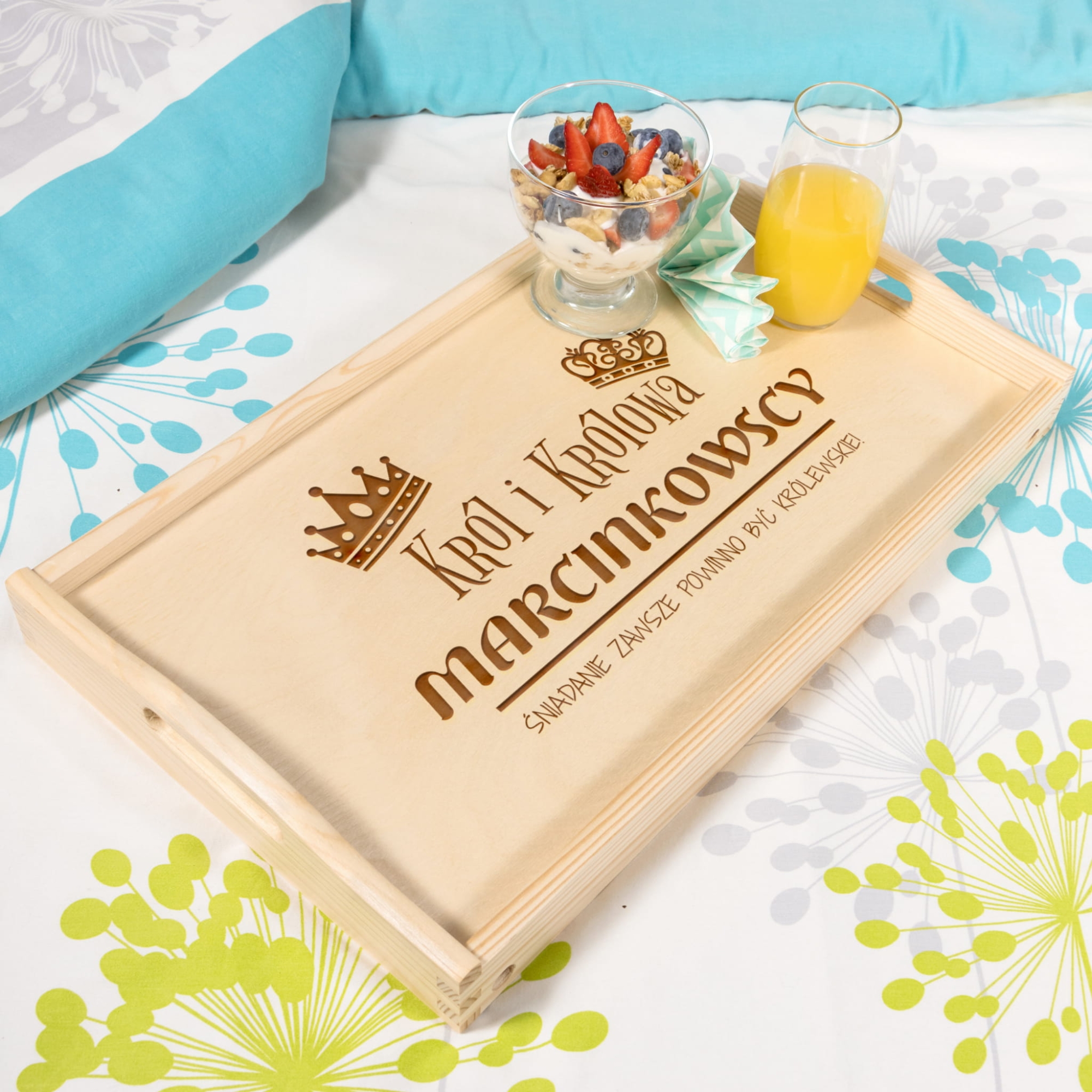STOLIK ŚNIADANIOWY oryginalny prezent ślubny król i królowa grawer