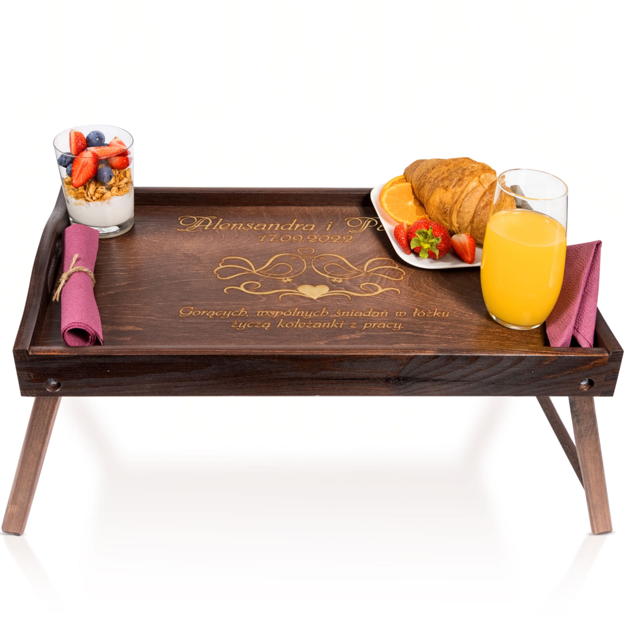 Drewniany stolik śniadaniowy z indywidualnym grawerem