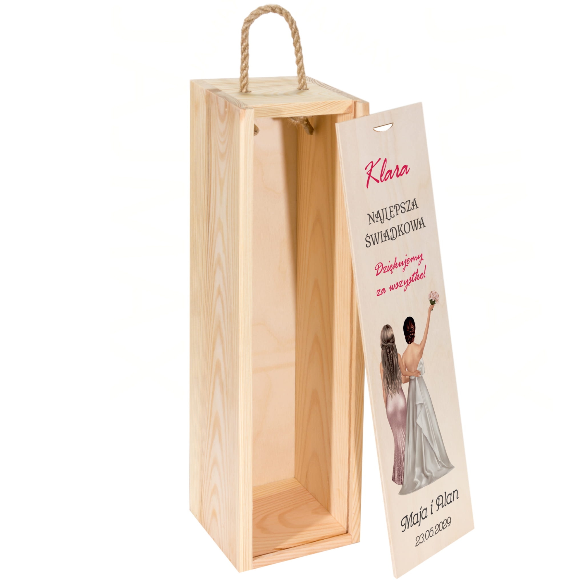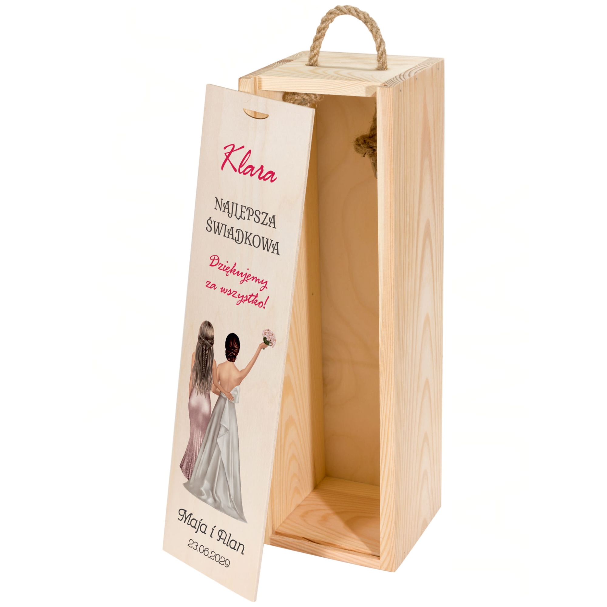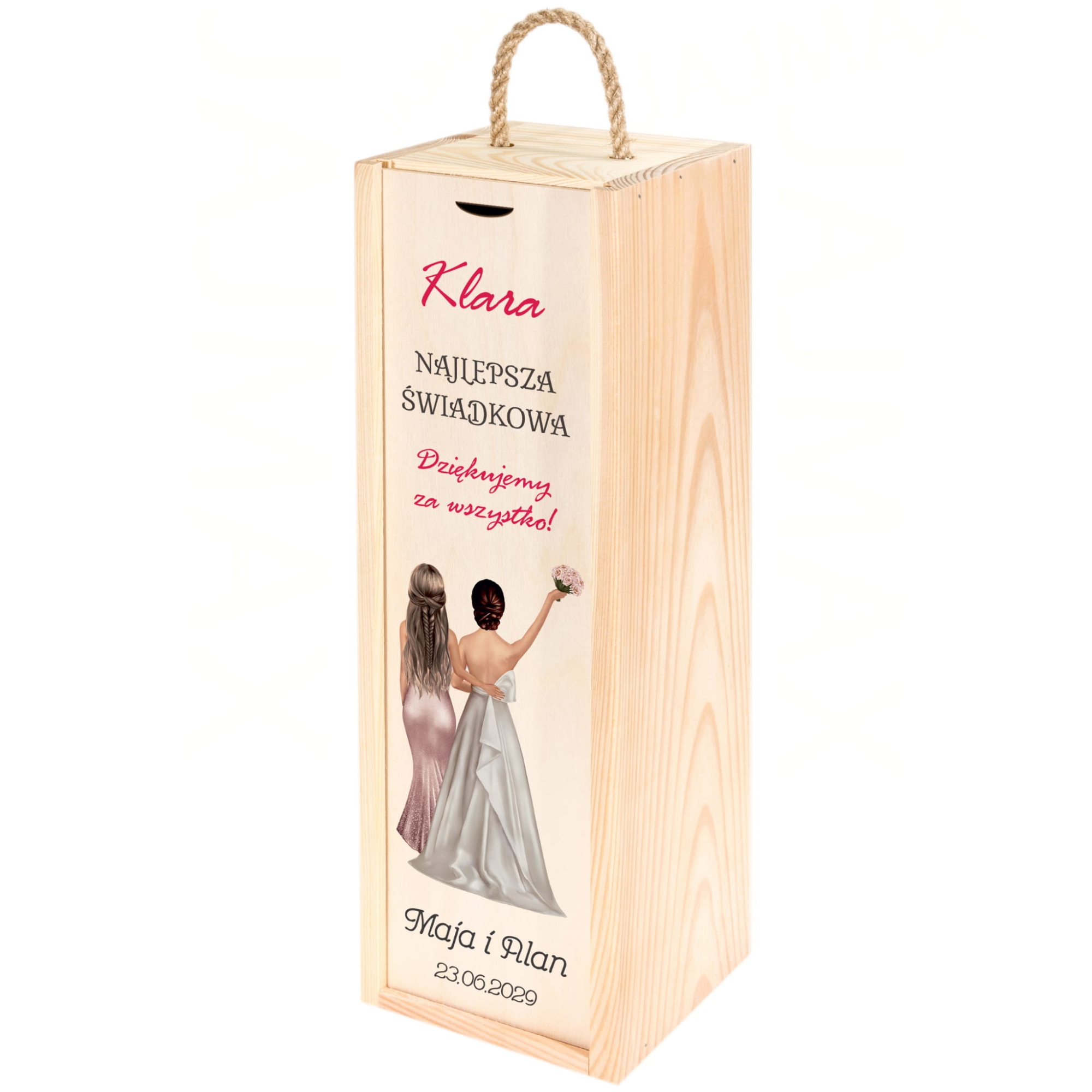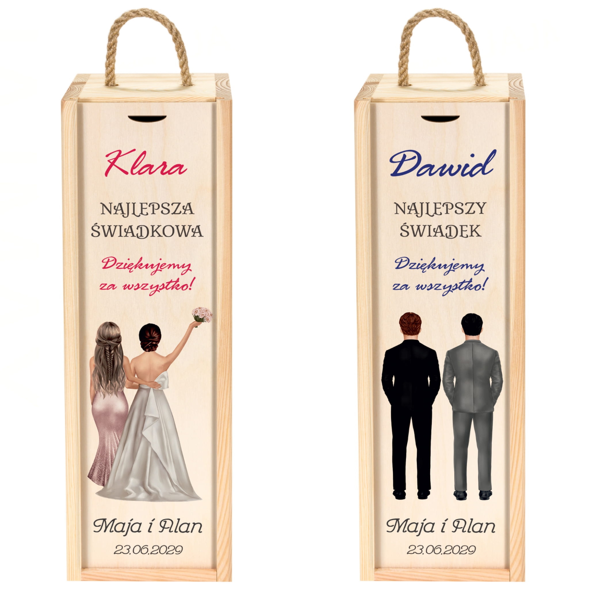 Zestaw 2 drewnianych skrzynek na wino z dedykacją podziękowanie od Młodych dla Świadków