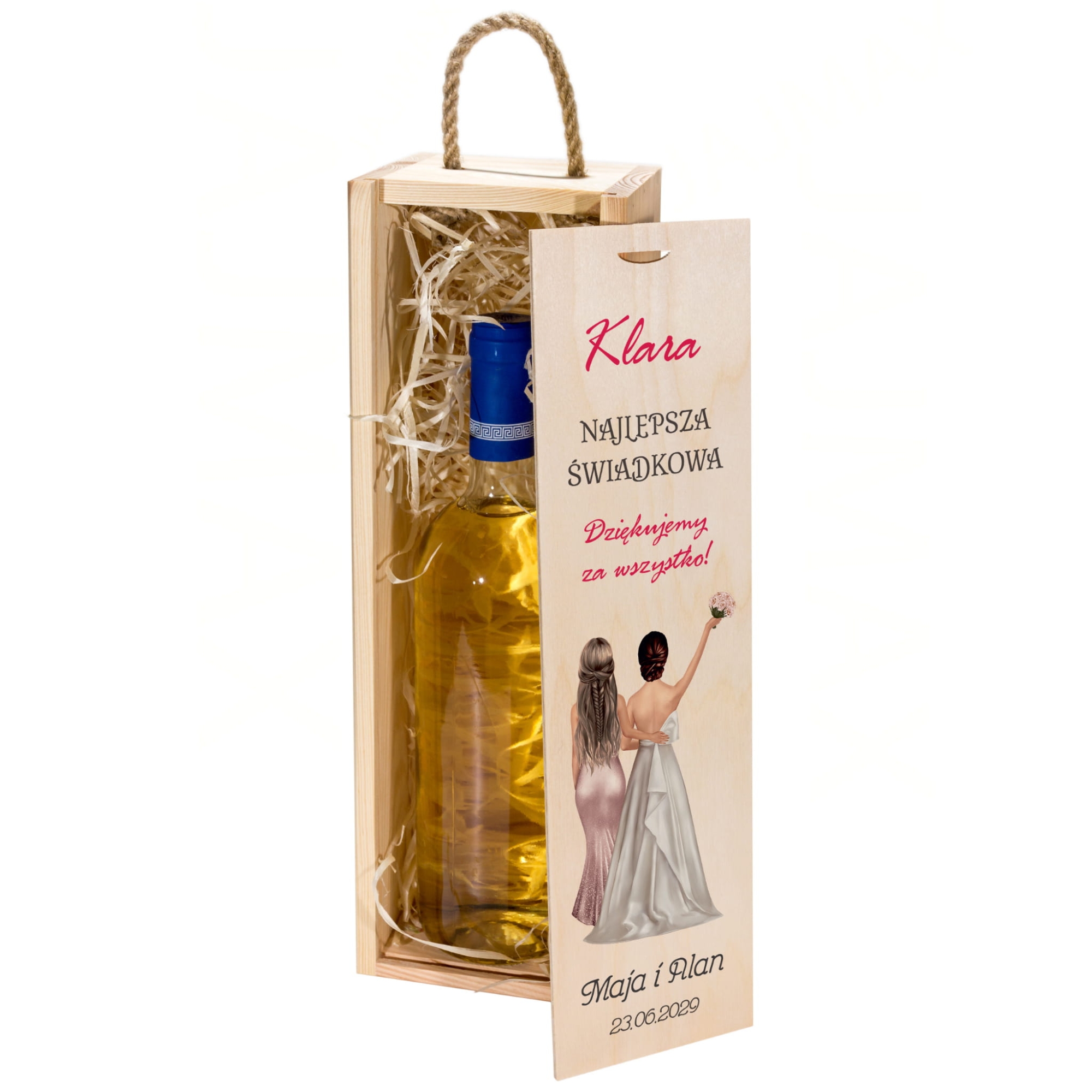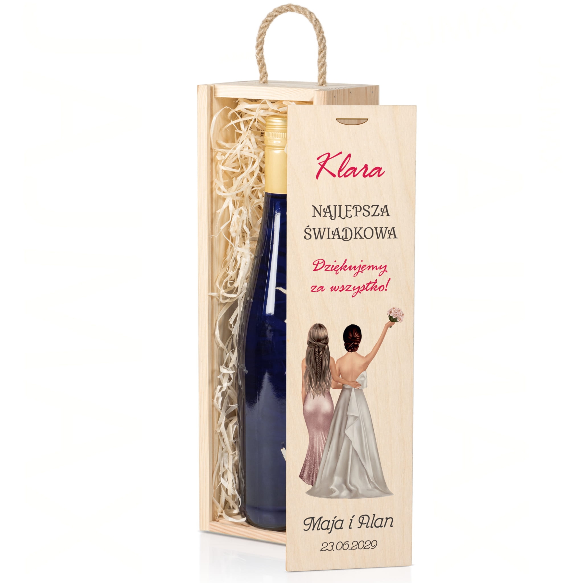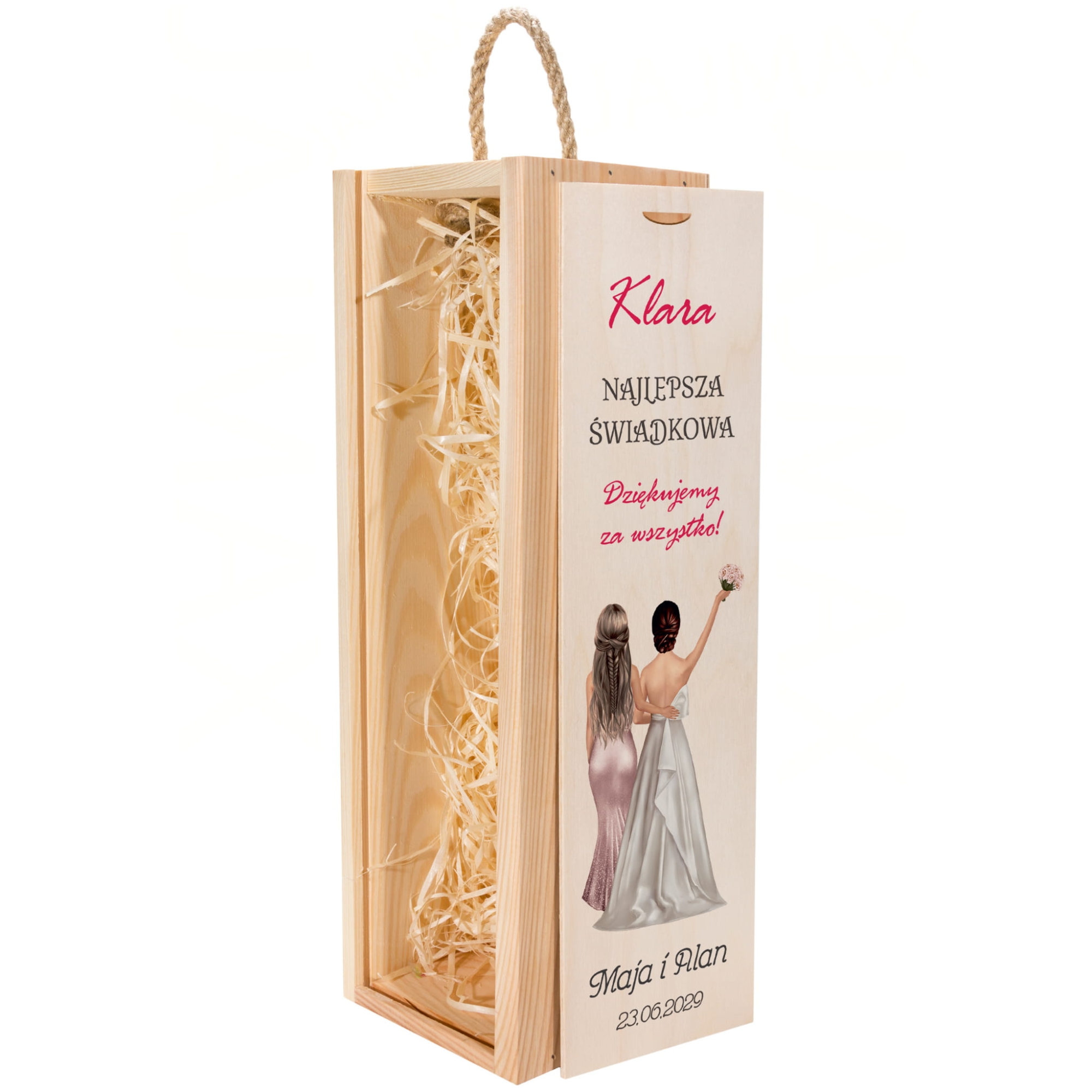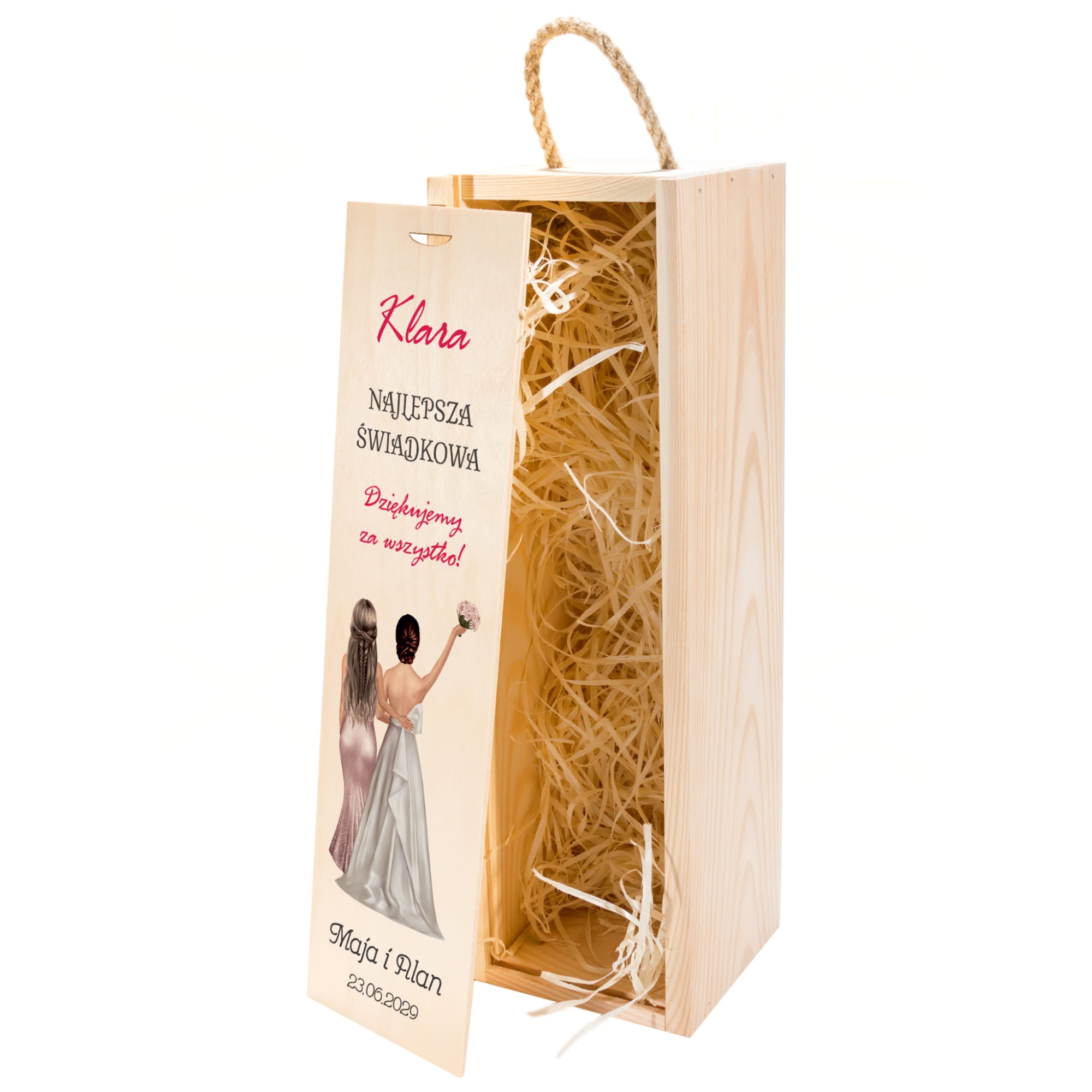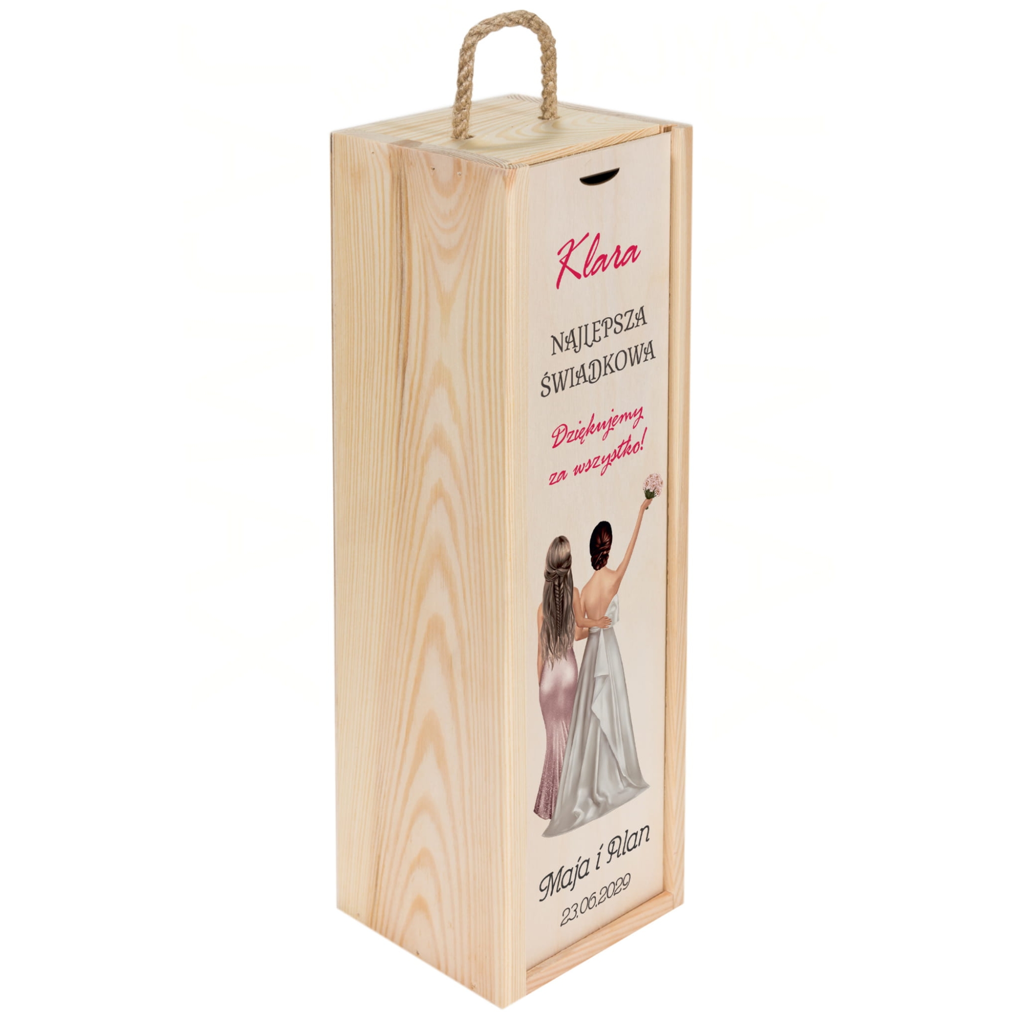 Zestaw 2 drewnianych skrzynek na wino z dedykacją podziękowanie od Młodych dla Świadków
