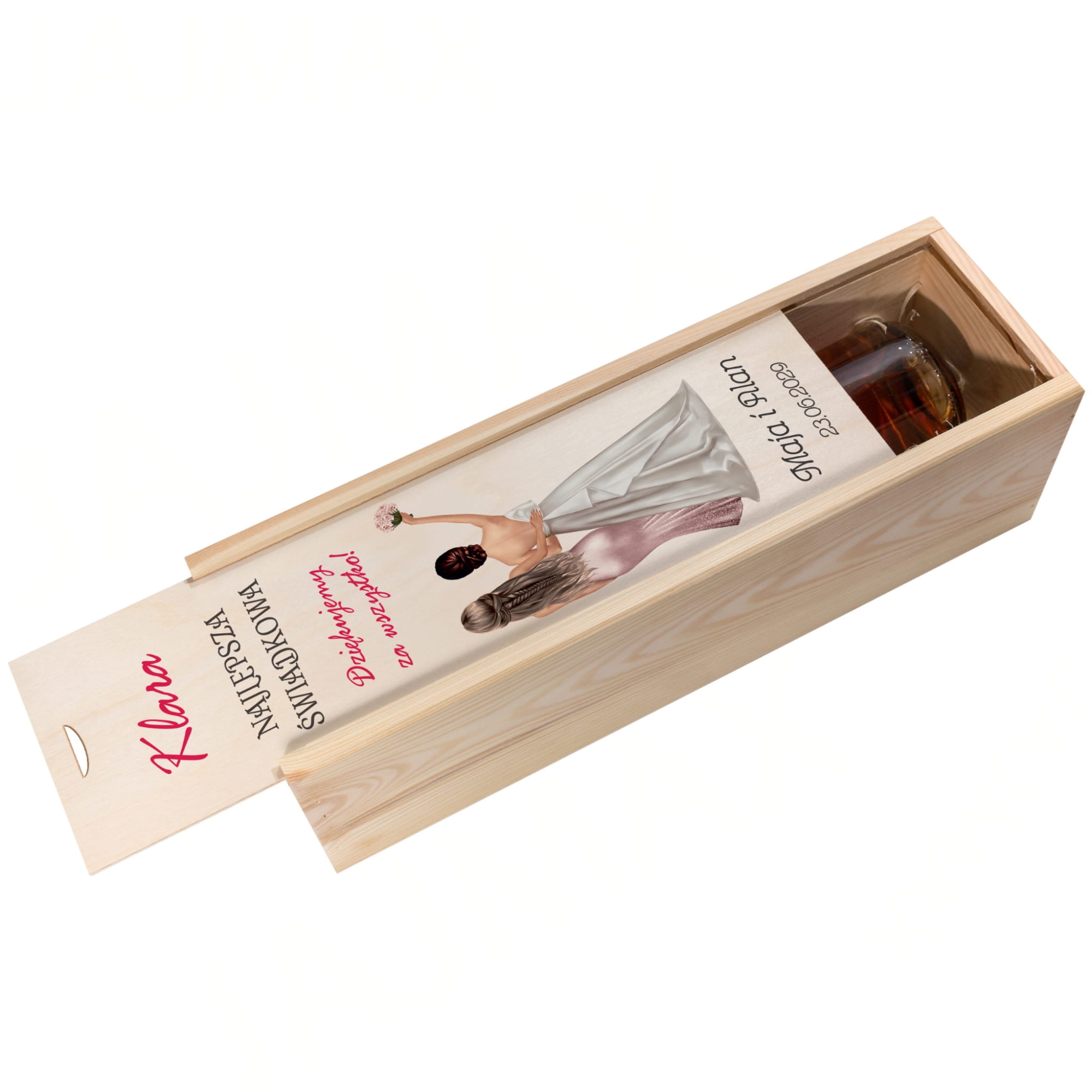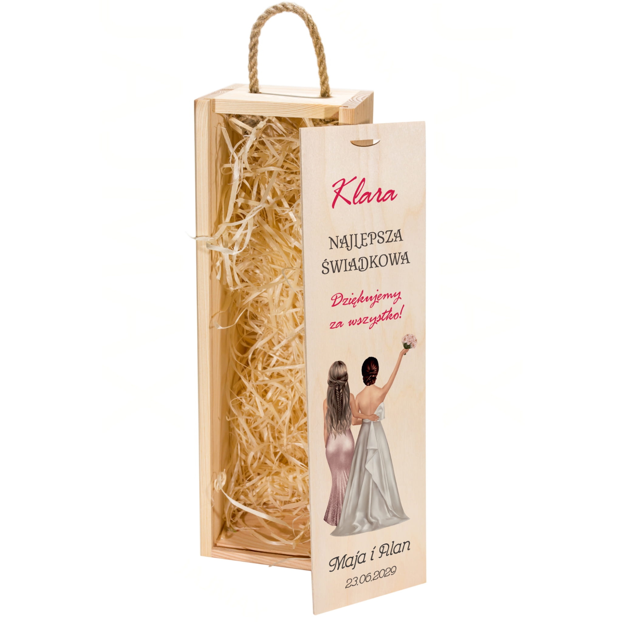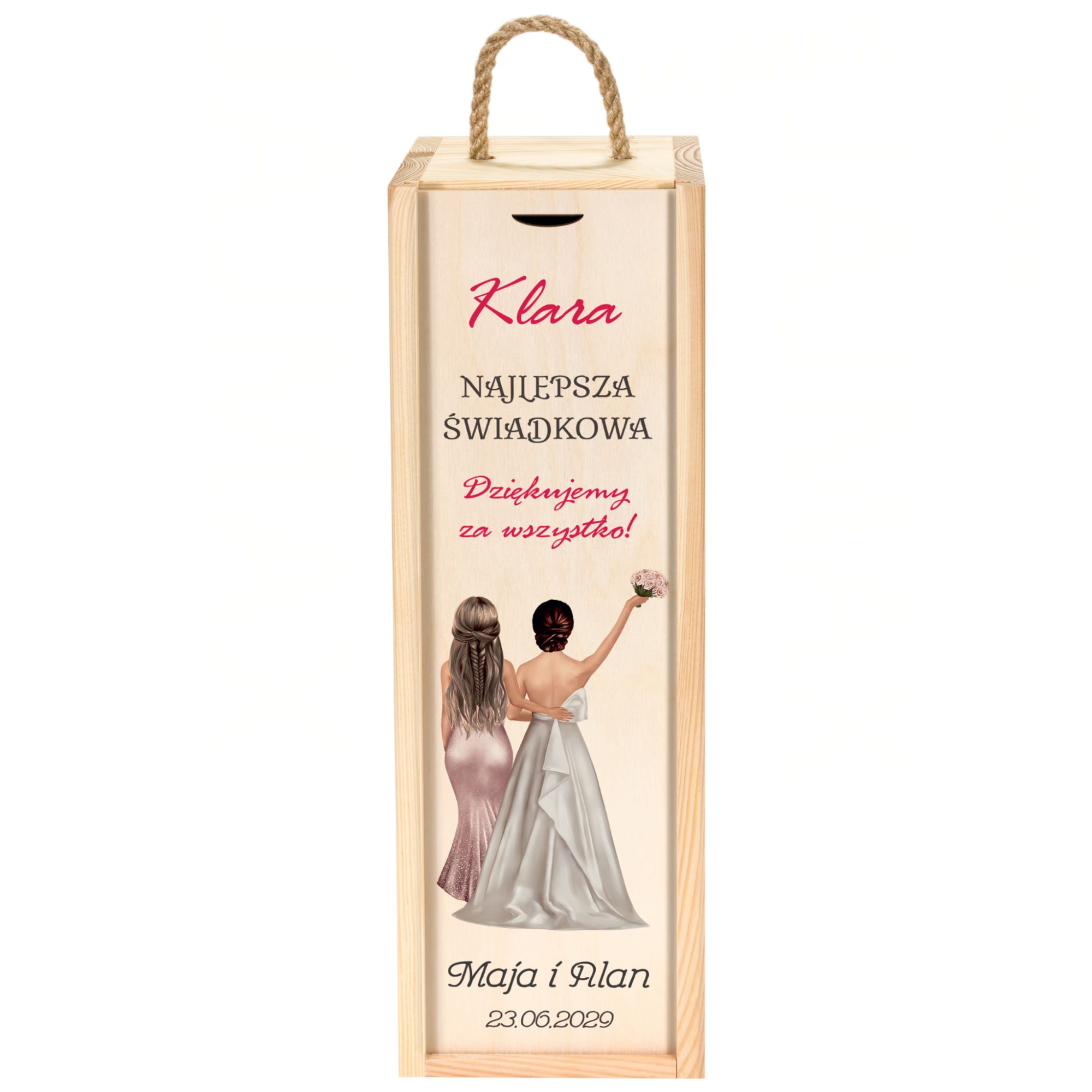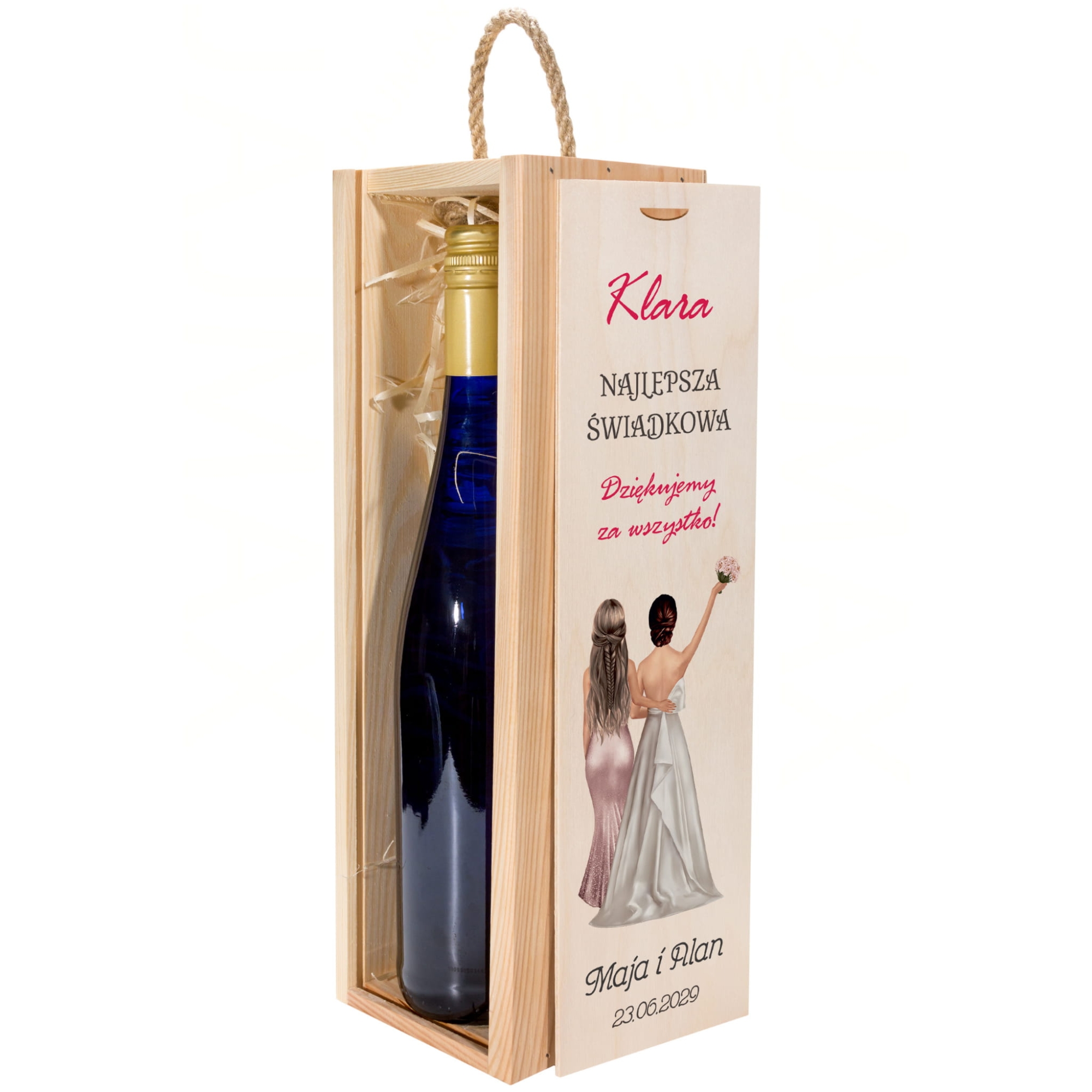 Zestaw 2 drewnianych skrzynek na wino z dedykacją podziękowanie od Młodych dla Świadków