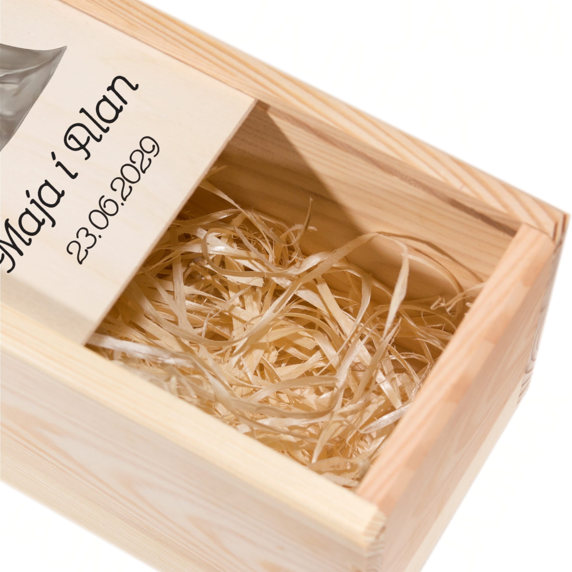 Wypełnienie: ekologiczna wełna drzewna (w zestawie) – bezpieczne dla zawartości, efektowne wizualnie