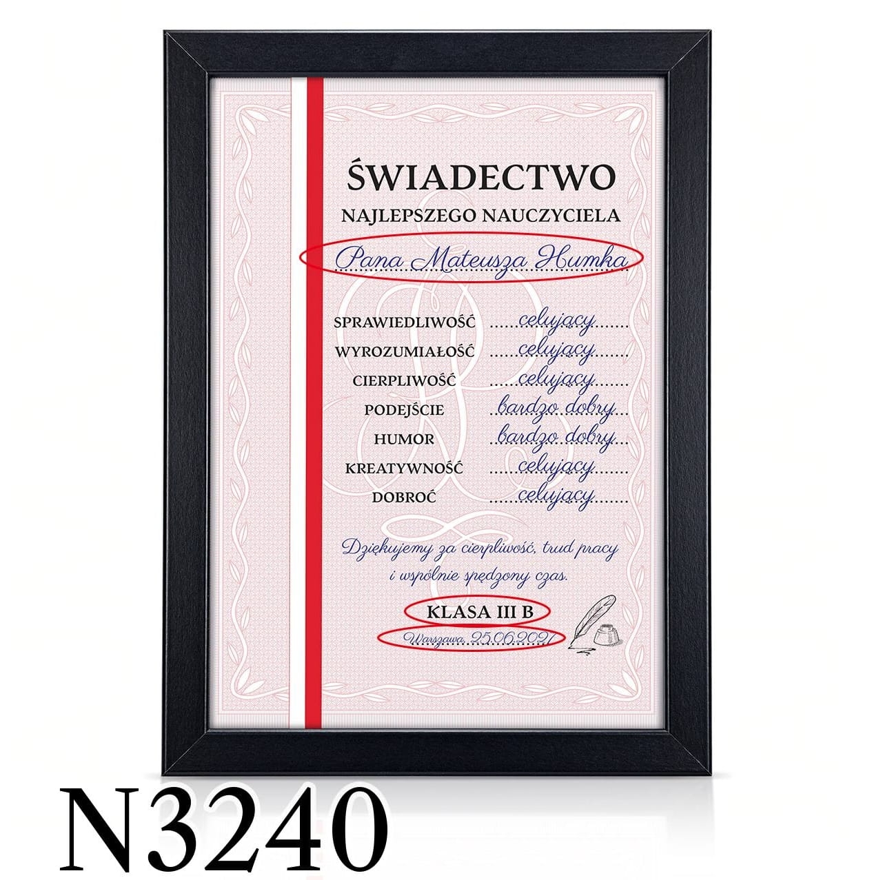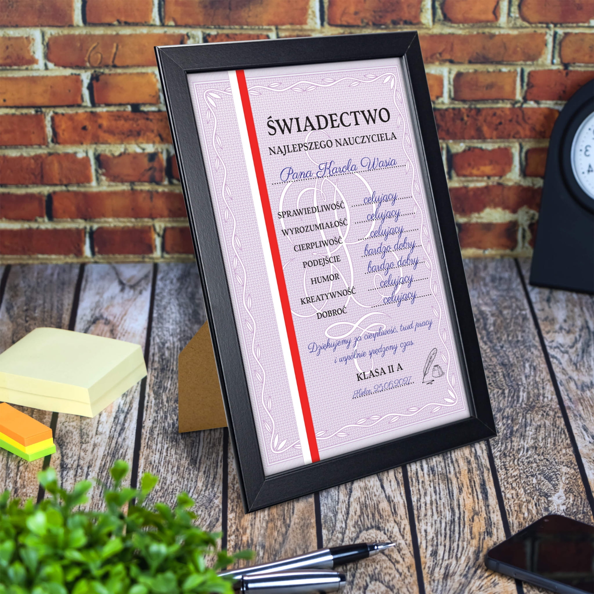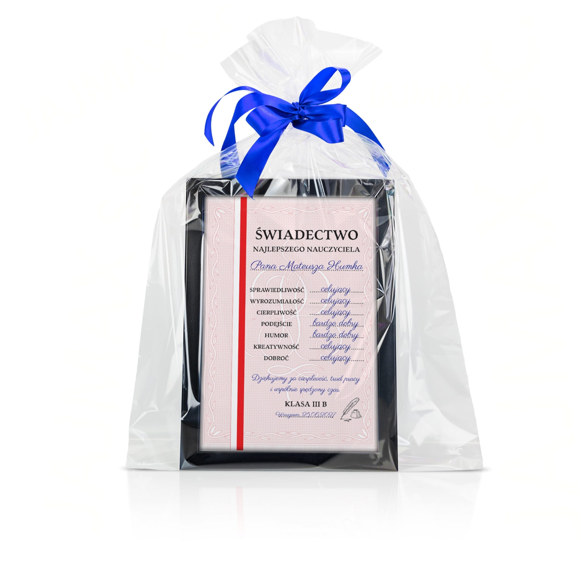 Świadectwo najlepszego nauczyciela z indywidualnym nadrukiem