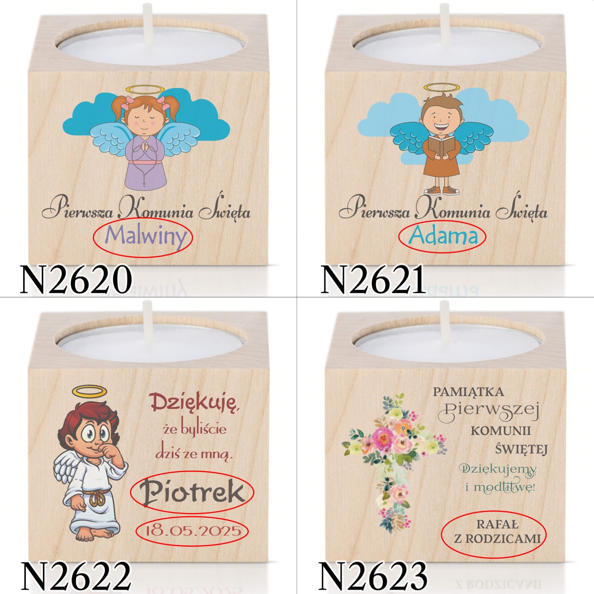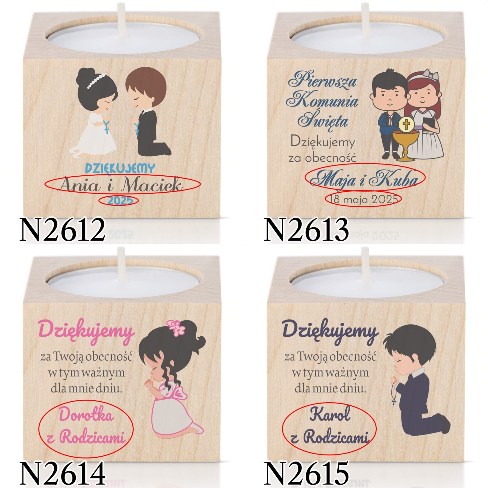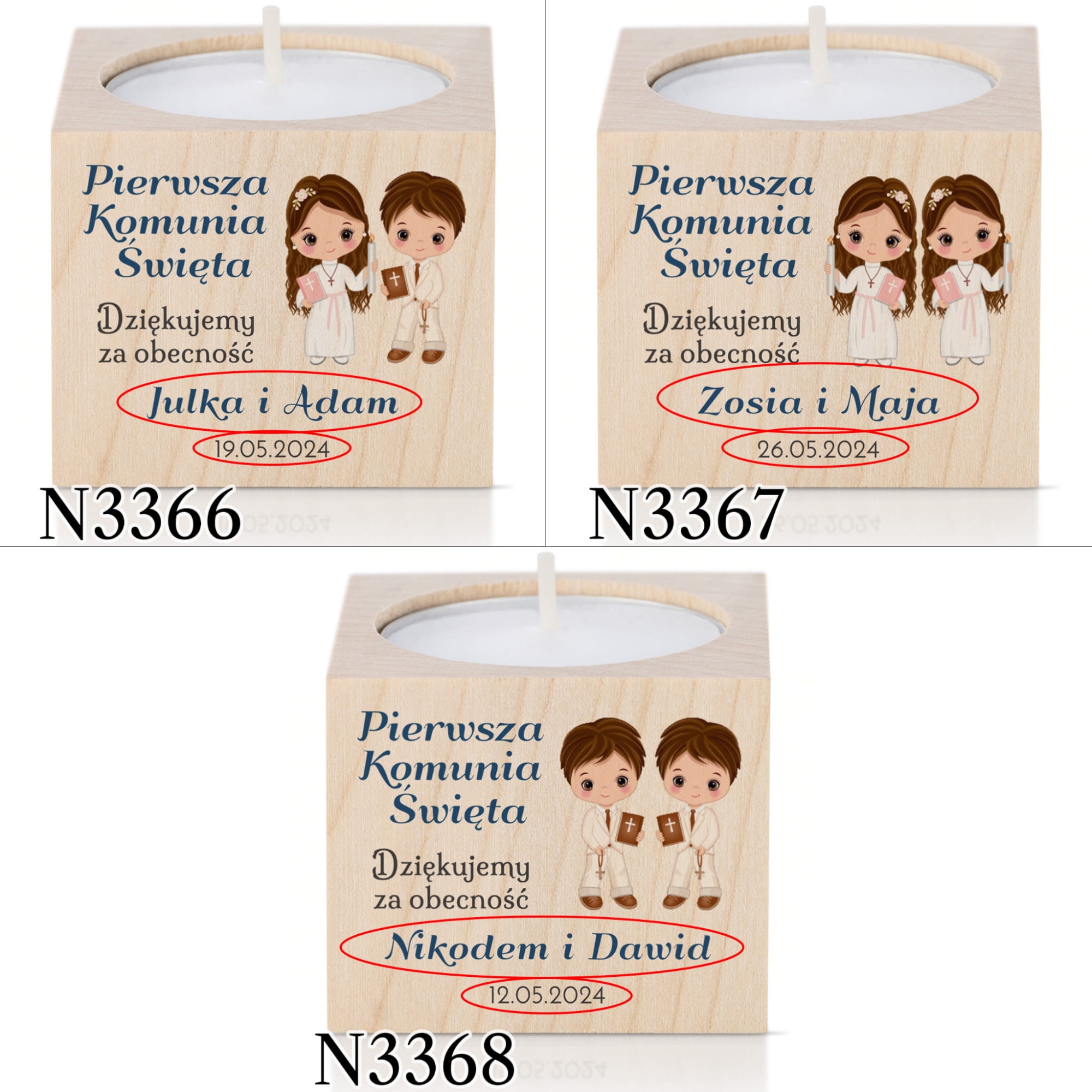 Pierwsza Komunia Święta to wyjątkowe wydarzenie dla wielu rodzin. Nieodłącznym elementem każdego przyjęcia stały się podziękowania dla gości komunijnych. Jeśli nie masz pomysłu na upominki dla gości lub szukasz prezentu wyjątkowego nasze świeczniki sprawdzą się idealnie. Zaskocz gości oryginalnym, personalizowanym upominkiem dziękując za udział w Pierwszej Komunii Świętej dziecka.