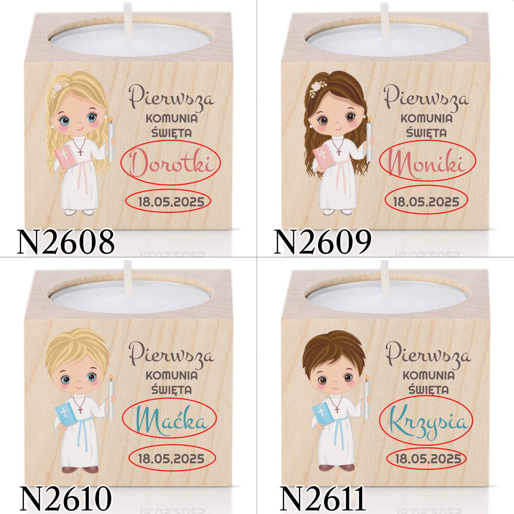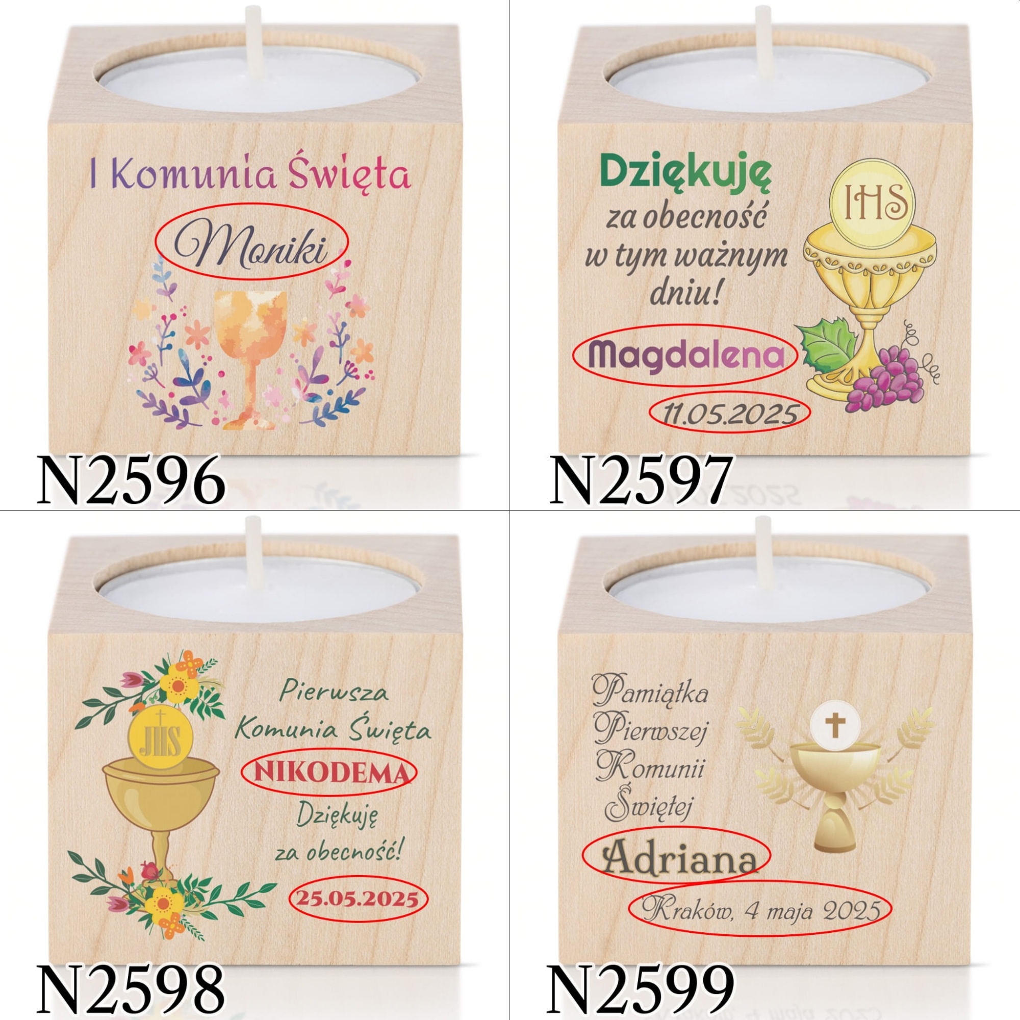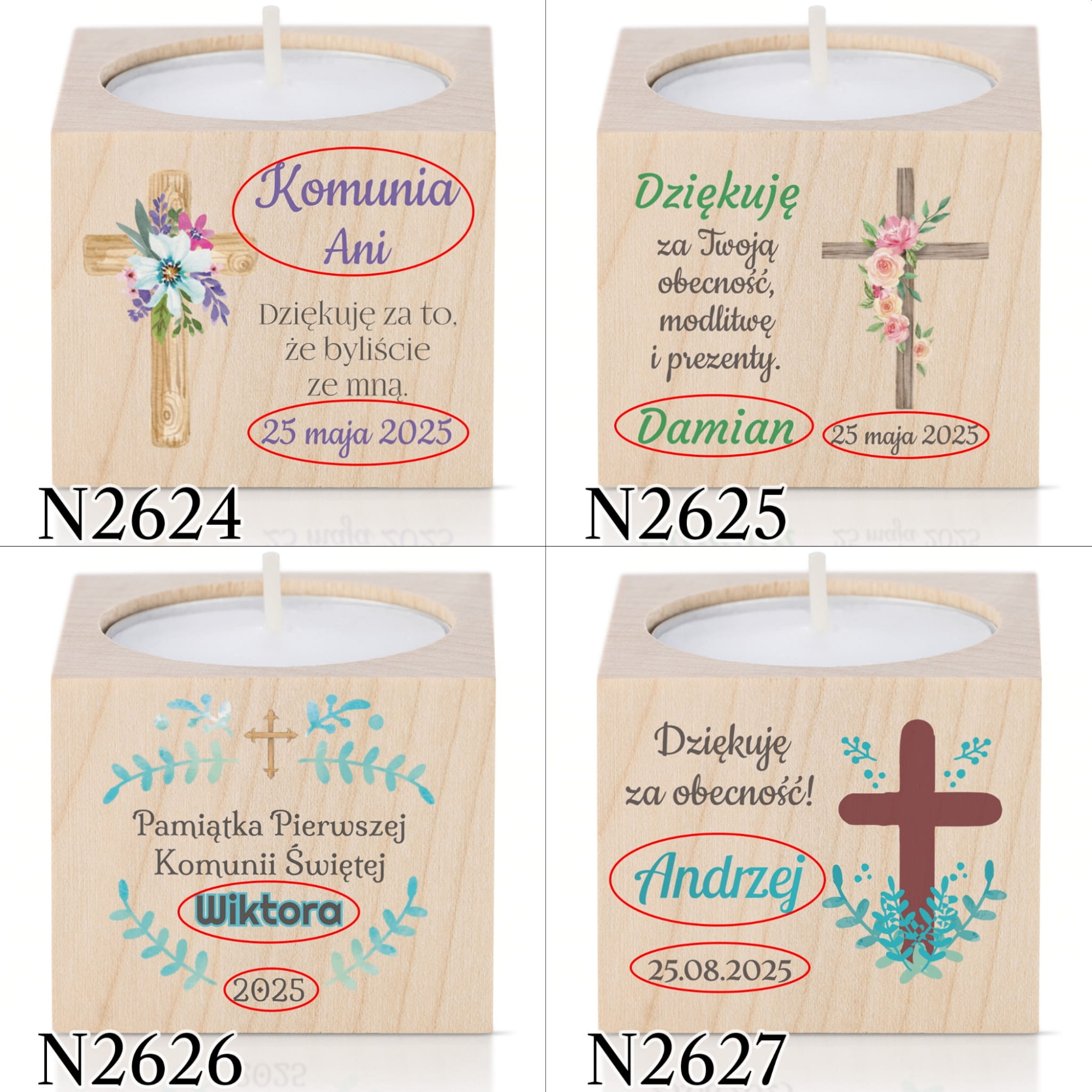 Pierwsza Komunia Święta to wyjątkowe wydarzenie dla wielu rodzin. Nieodłącznym elementem każdego przyjęcia stały się podziękowania dla gości komunijnych. Jeśli nie masz pomysłu na upominki dla gości lub szukasz prezentu wyjątkowego nasze świeczniki sprawdzą się idealnie. Zaskocz gości oryginalnym, personalizowanym upominkiem dziękując za udział w Pierwszej Komunii Świętej dziecka.