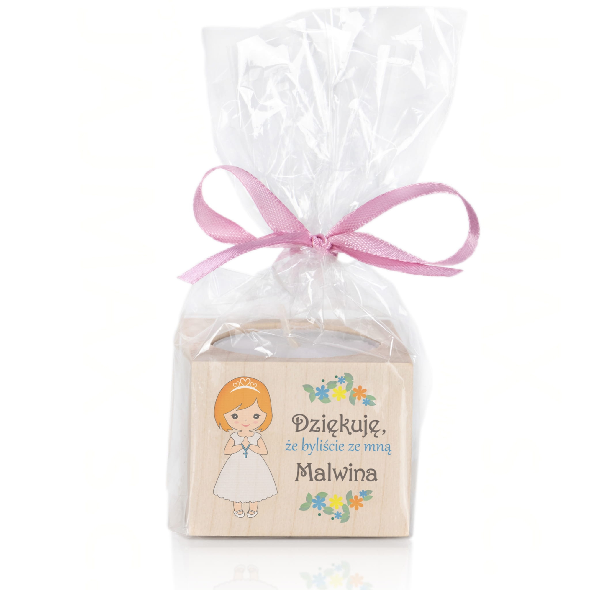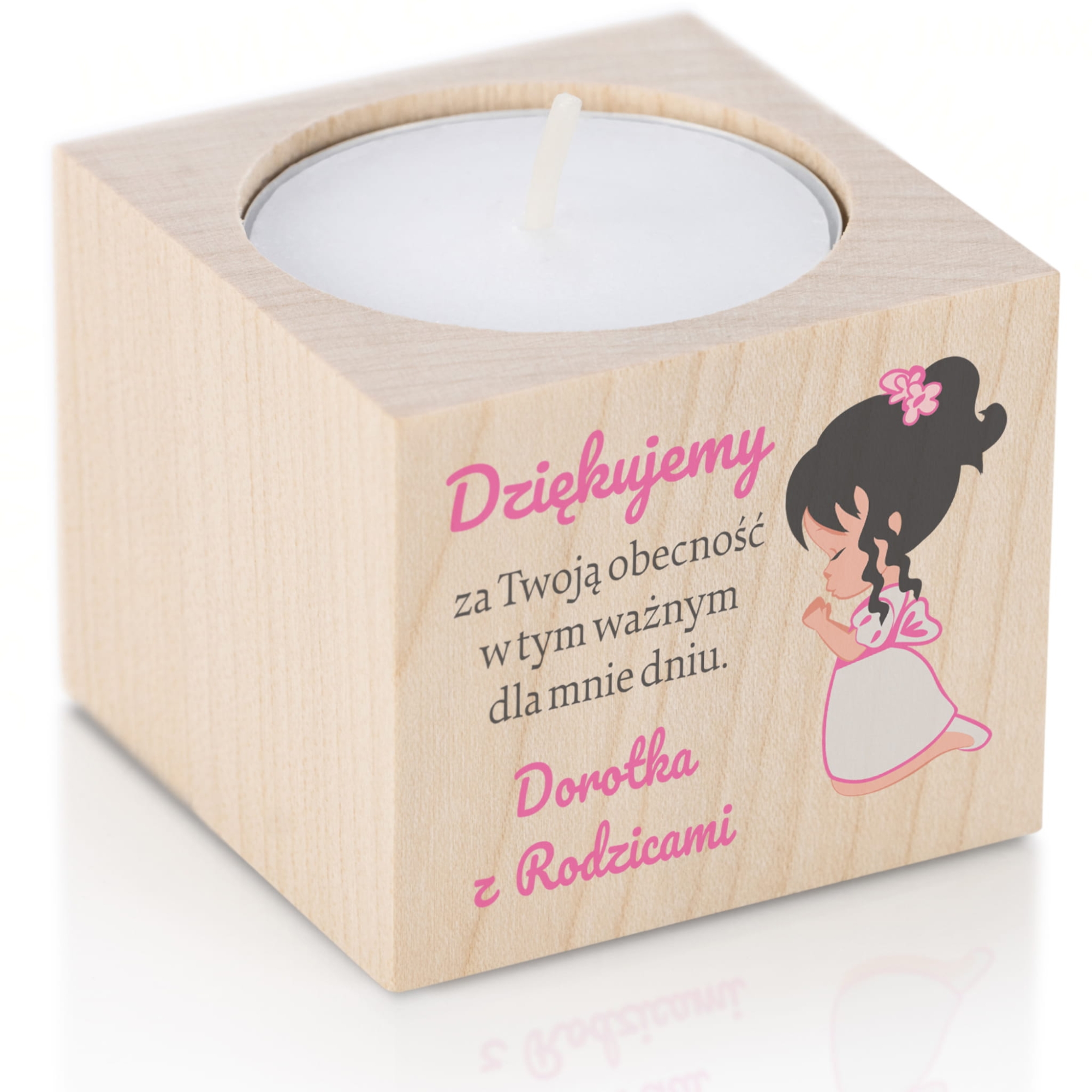 Świecznik na tealight z nadrukiem, podziękowanie dla gości komunijnych
