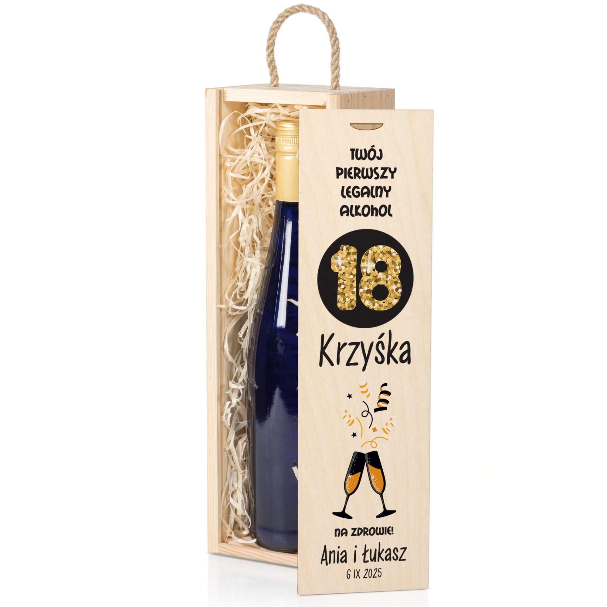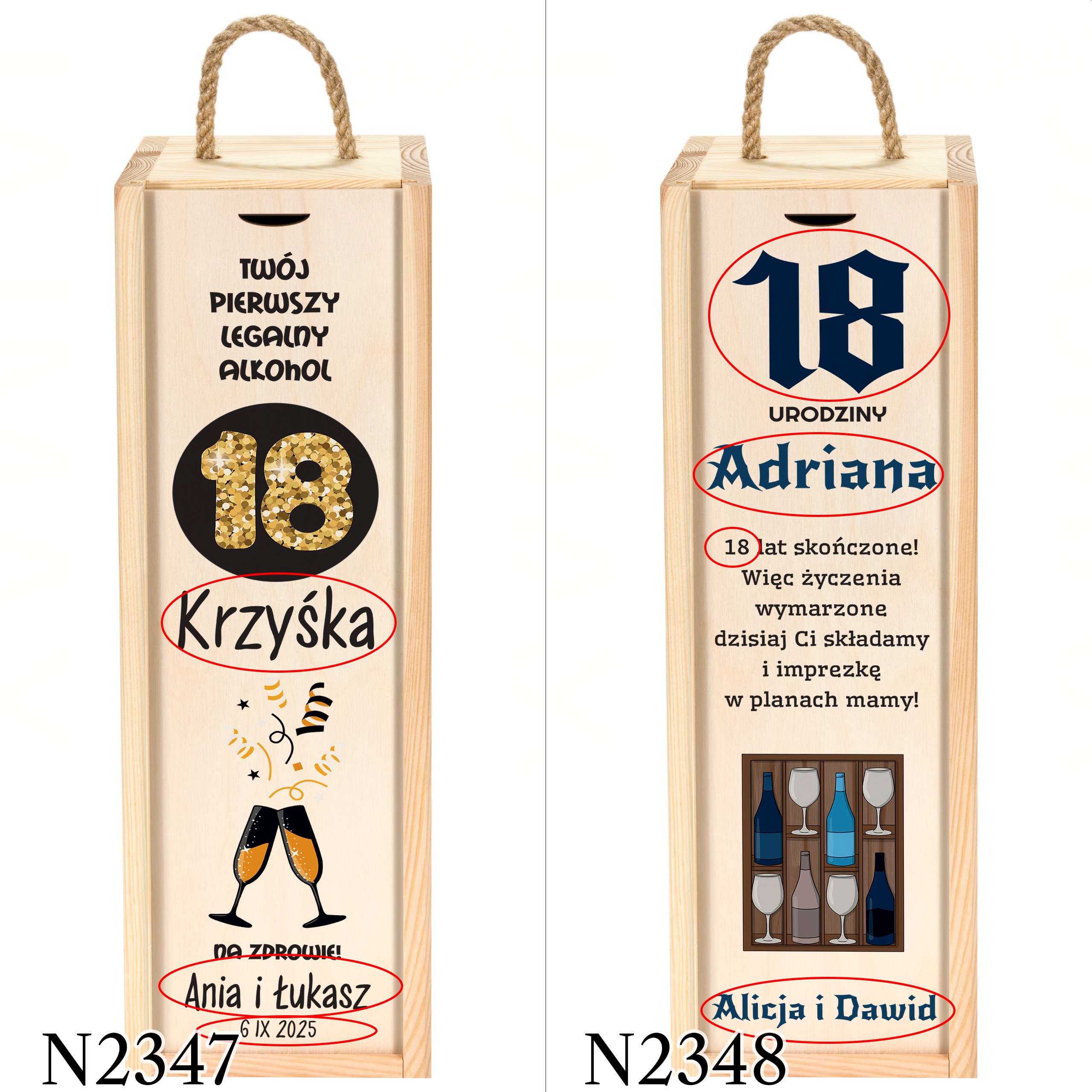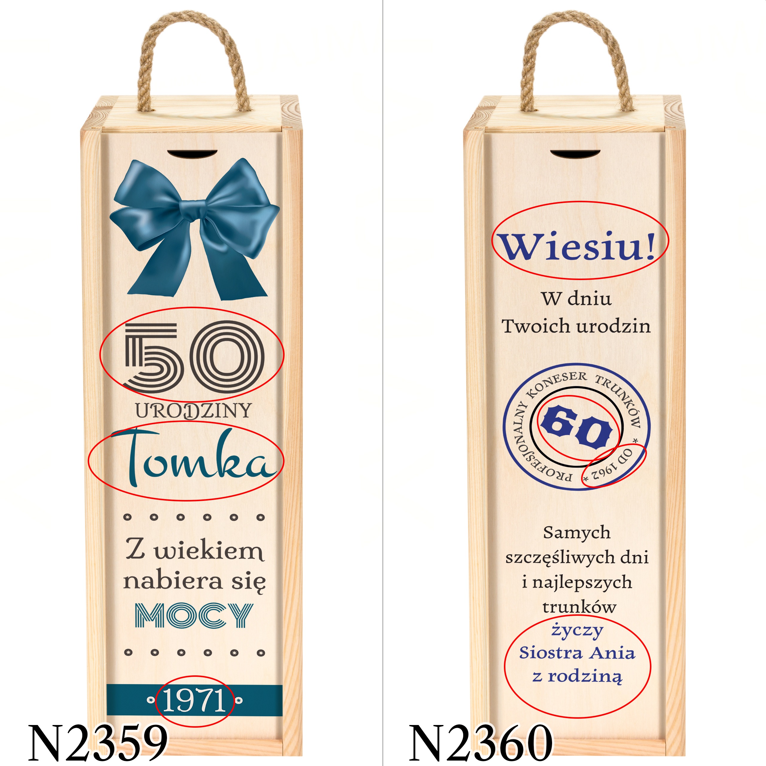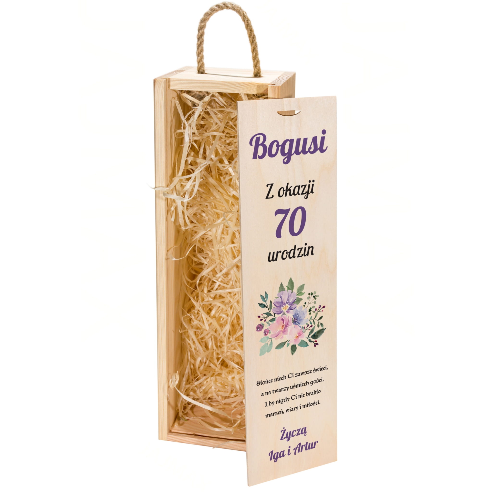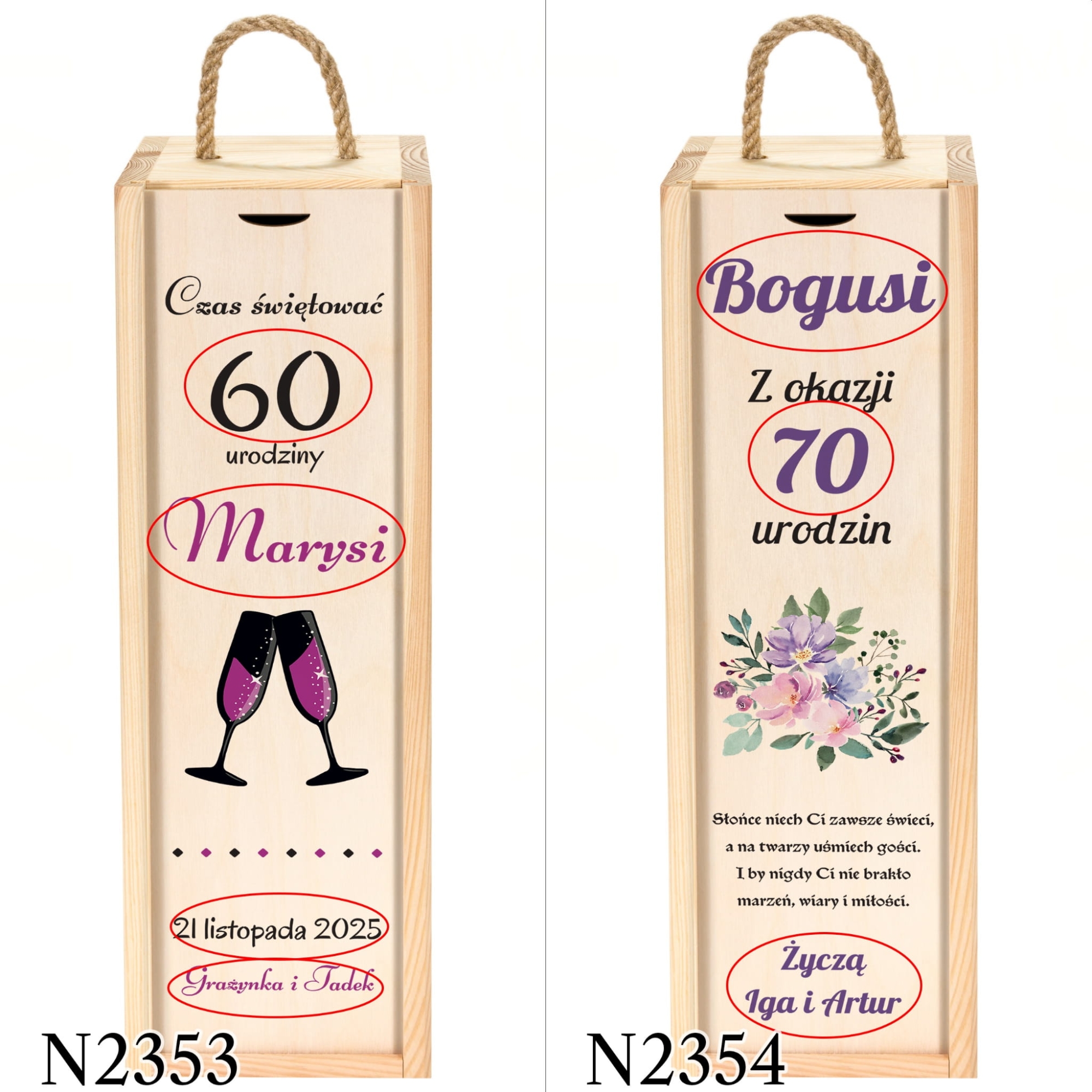 Drewniana skrzynka na alkohol z nadrukiem prezent na urodziny