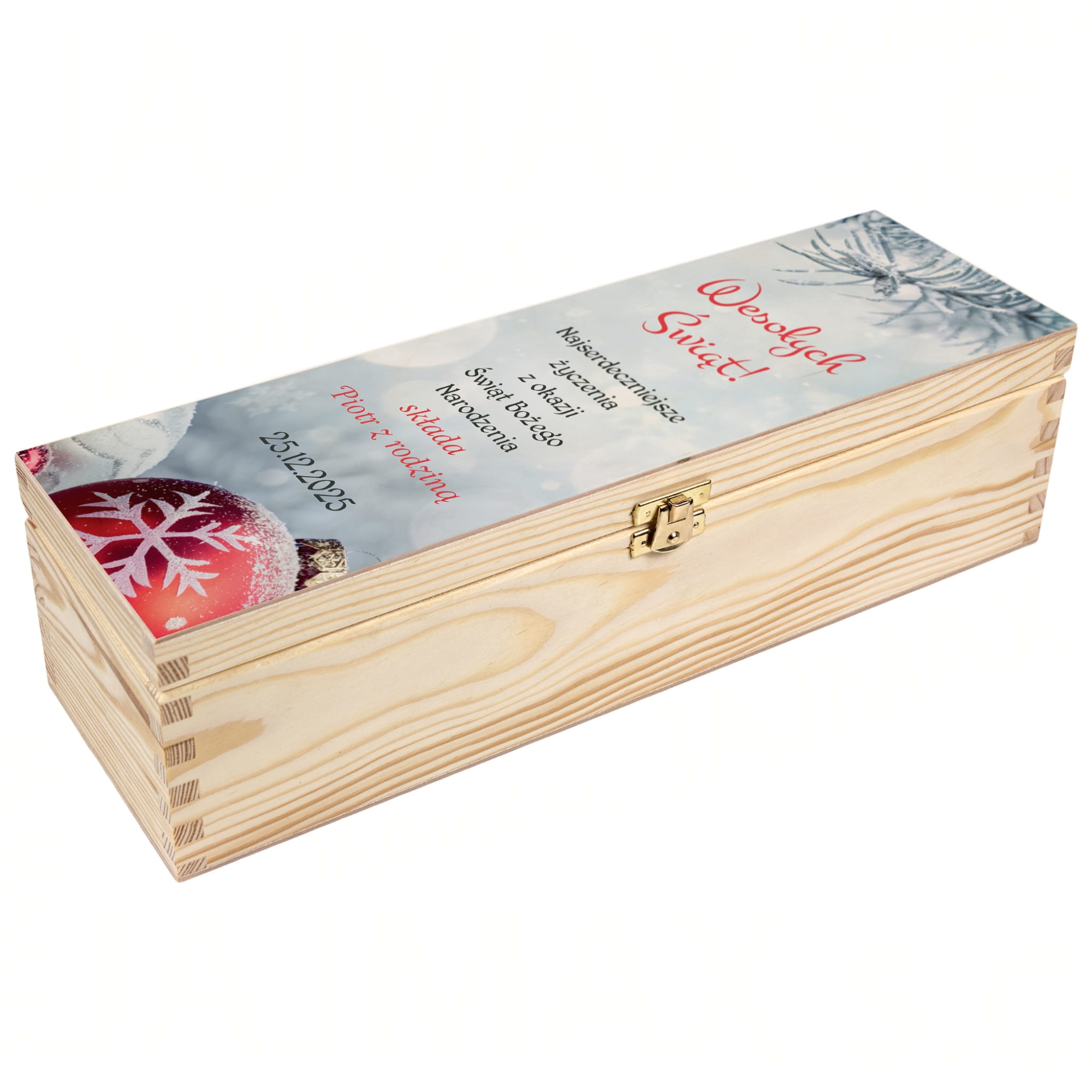 Drewniana skrzynka na alkohol prezent pod choinkę z indywidualnym nadrukiem