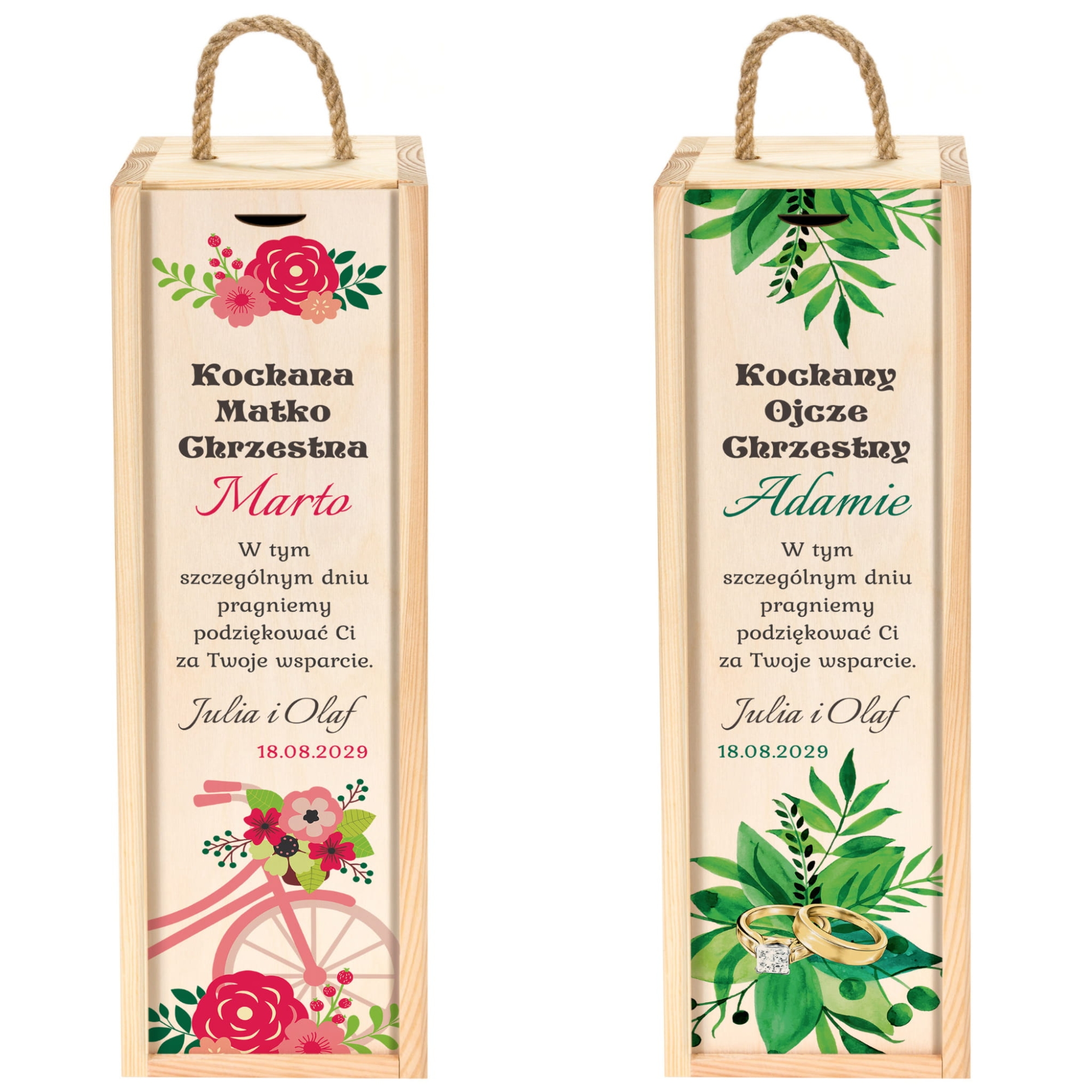 Skrzynka na wino 2 szt PODZIĘKOWANIA DLA CHRZESTNYCH OD PARY MŁODEJ