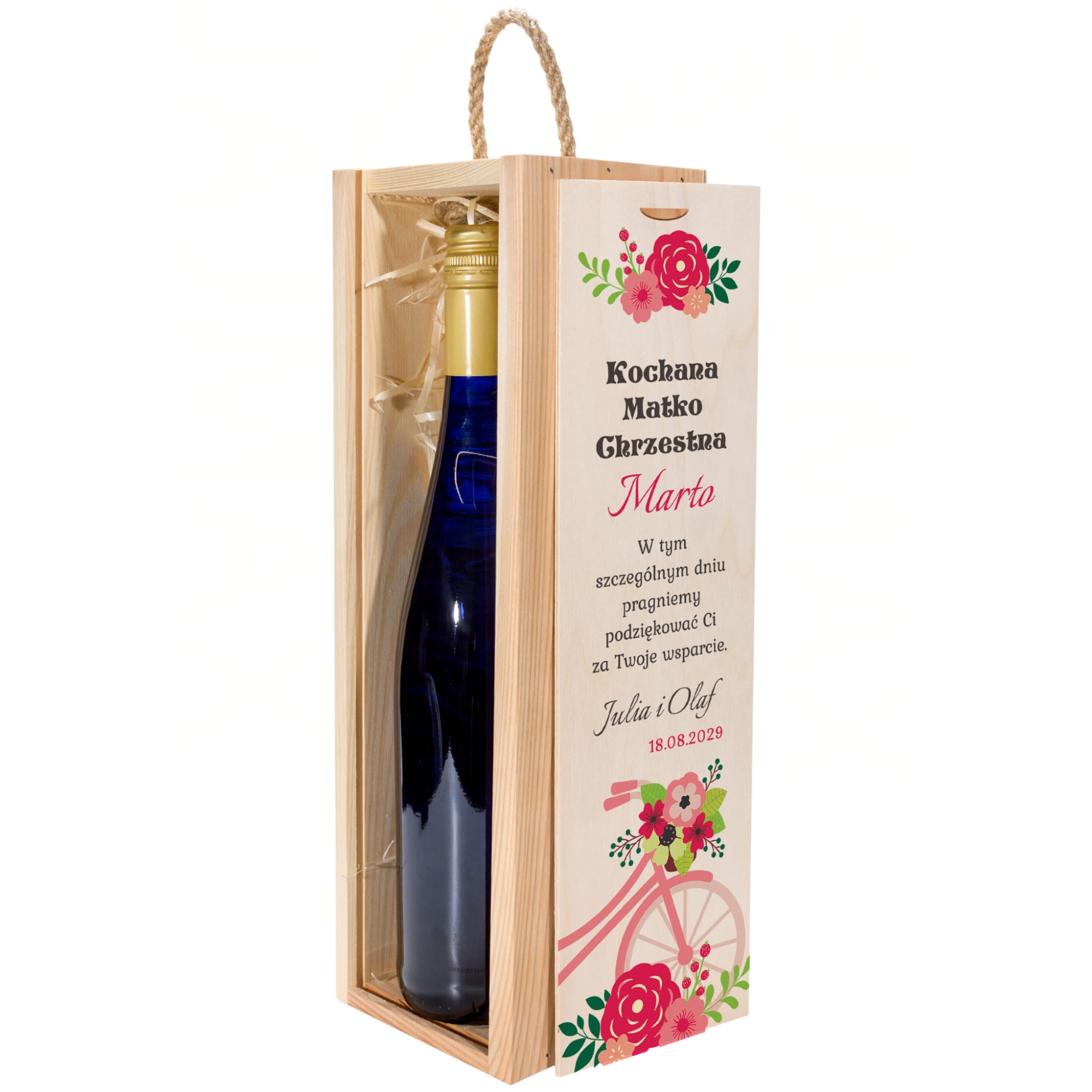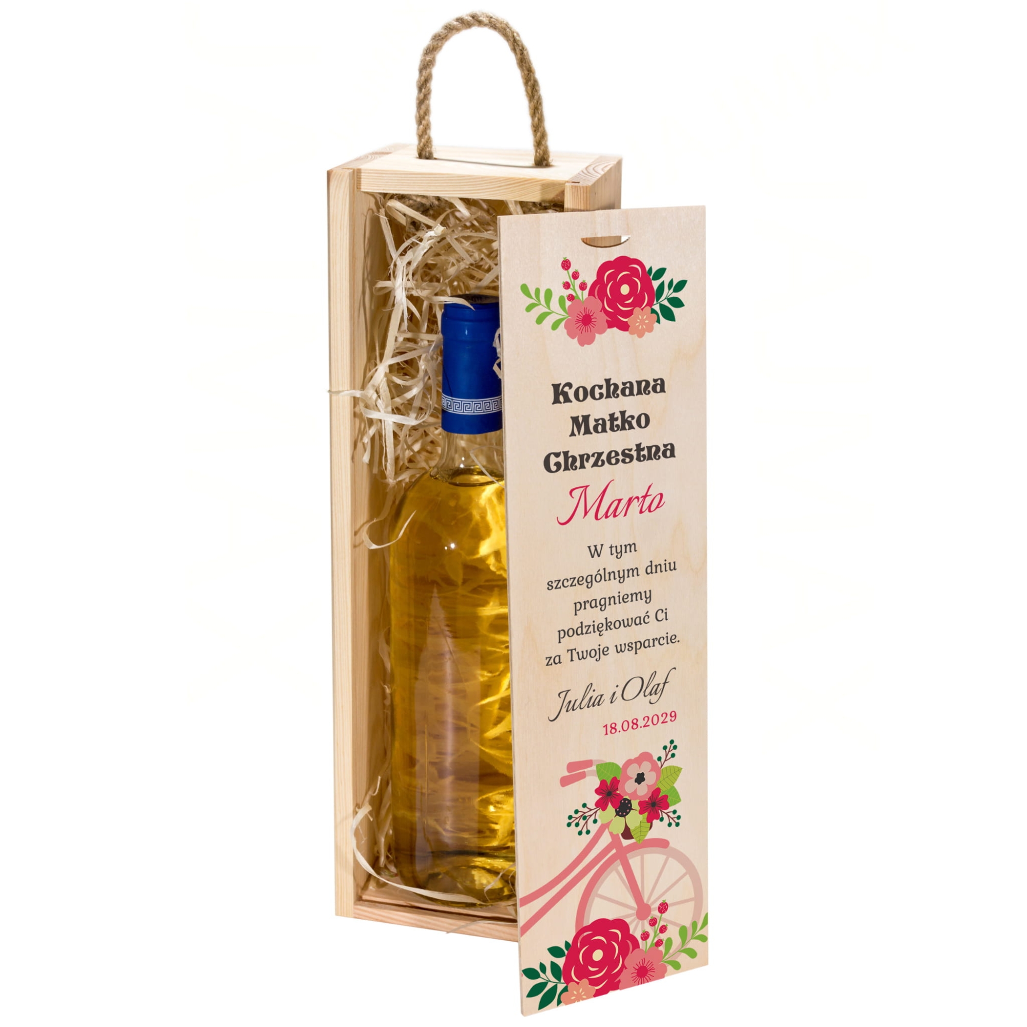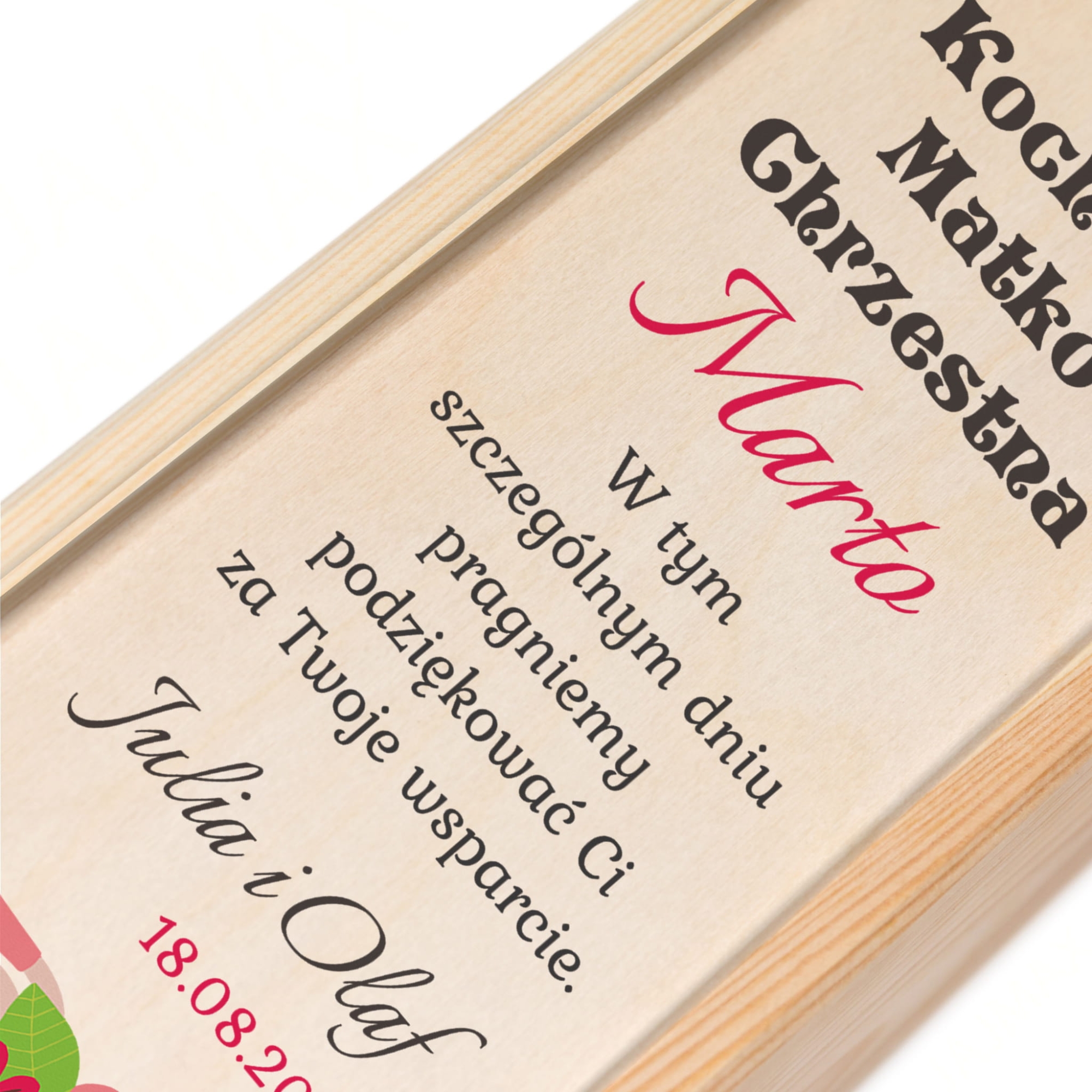 Drewniana skrzynka na alkohol z nadrukiem zestaw 2 sztuk prezent dla Chrzestnych