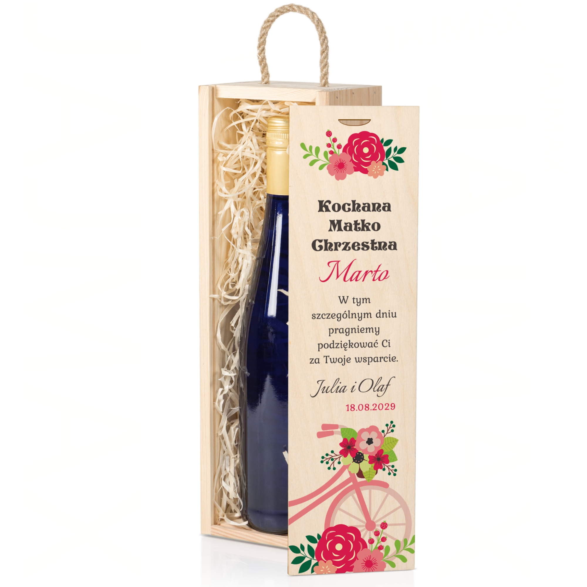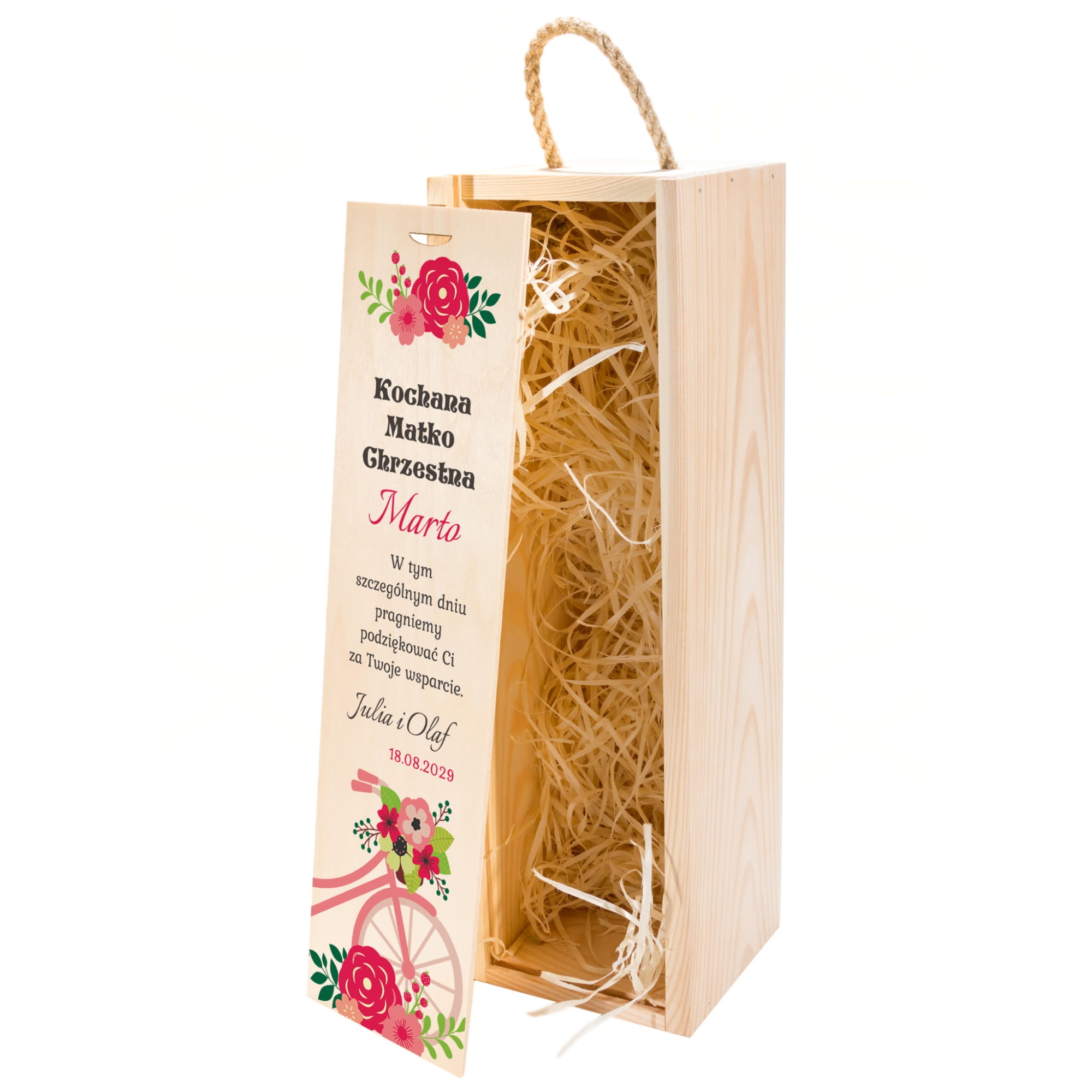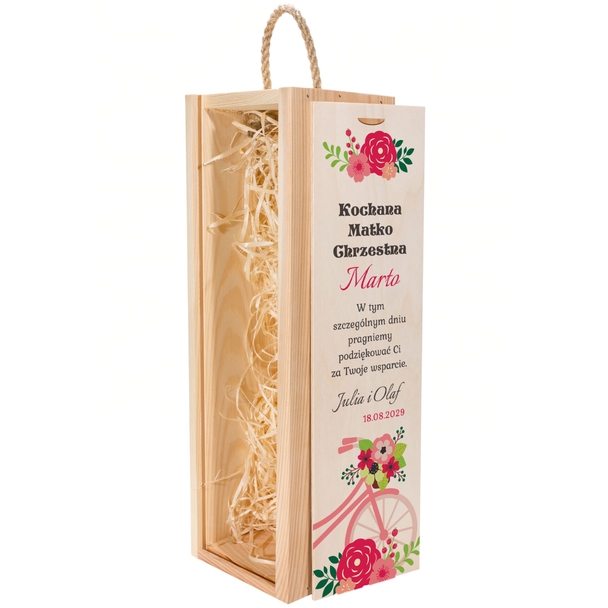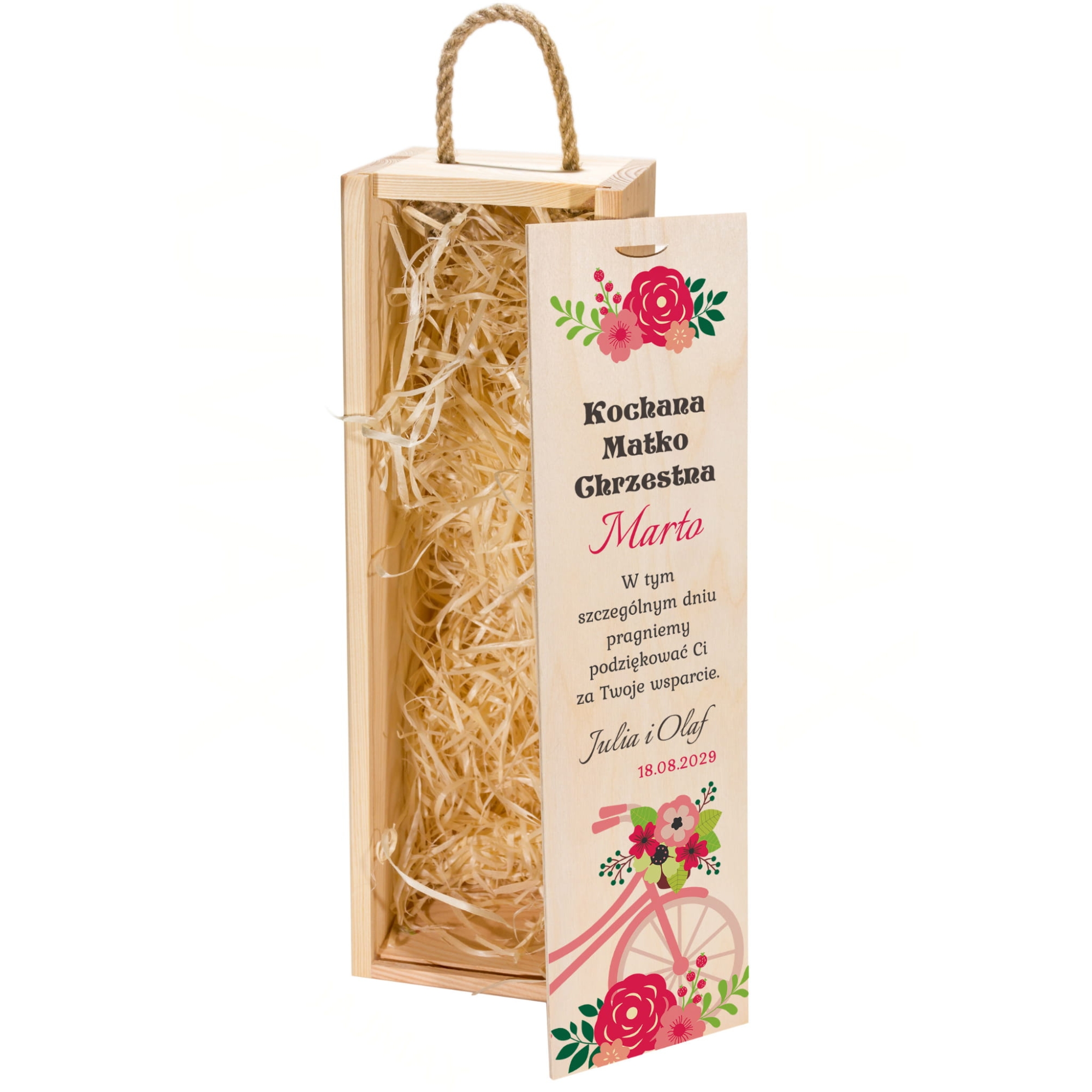 Drewniana skrzynka na alkohol z nadrukiem zestaw 2 sztuk prezent dla Chrzestnych