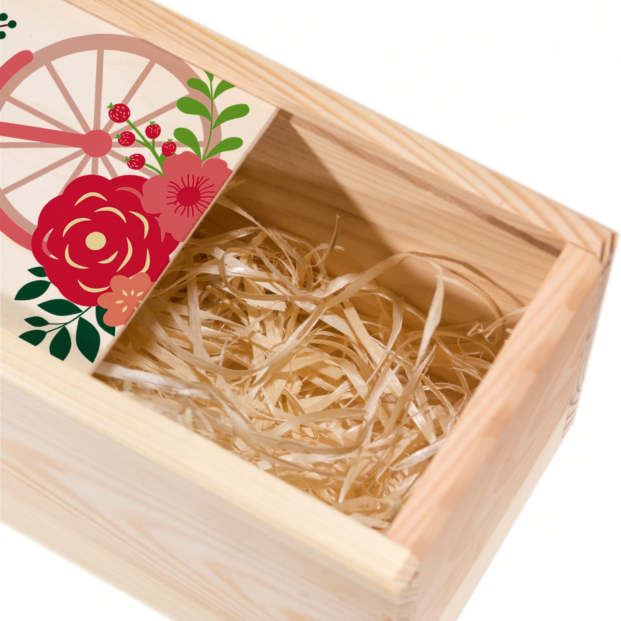 Wypełnienie: ekologiczna wełna drzewna (w zestawie) – bezpieczne dla zawartości, efektowne wizualnie
