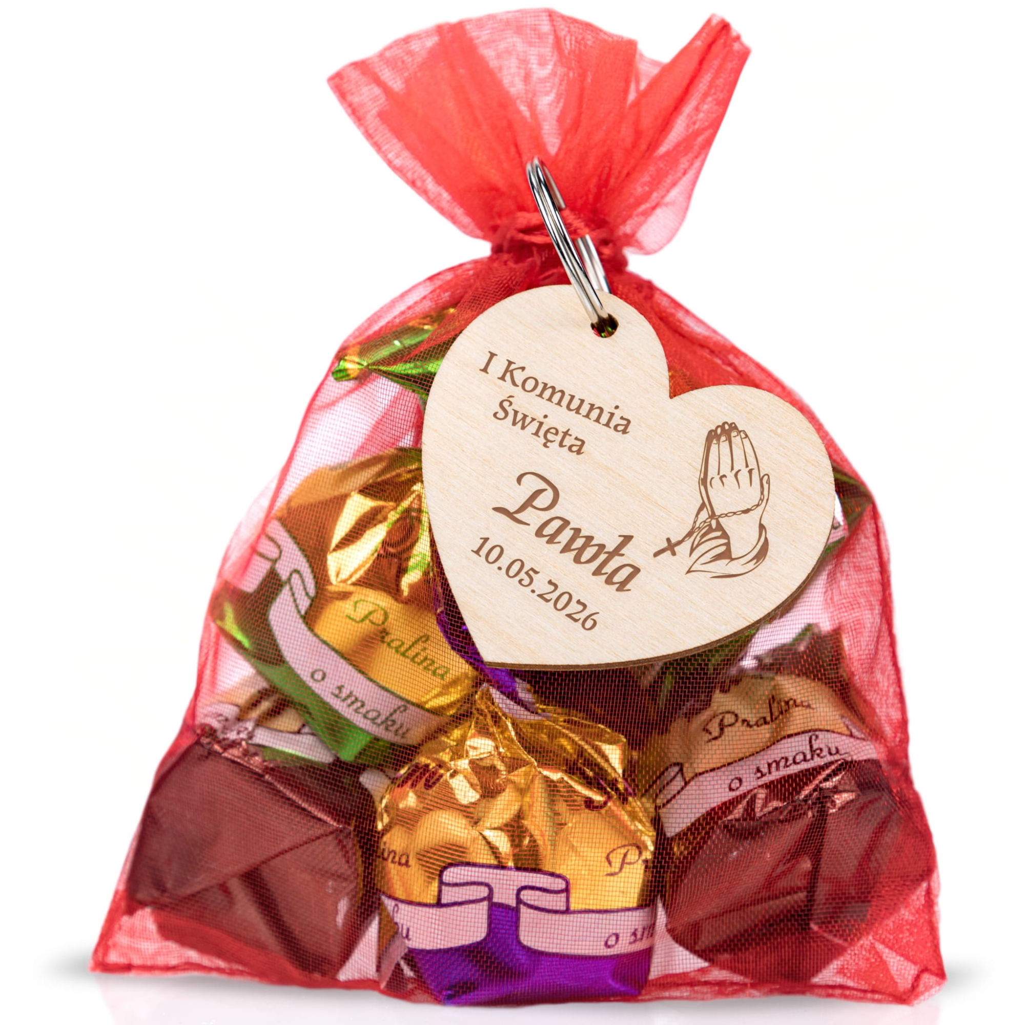 Zamów breloczek z cukierkami jako oryginalne podziękowanie komunijne – z sercem i klasą.