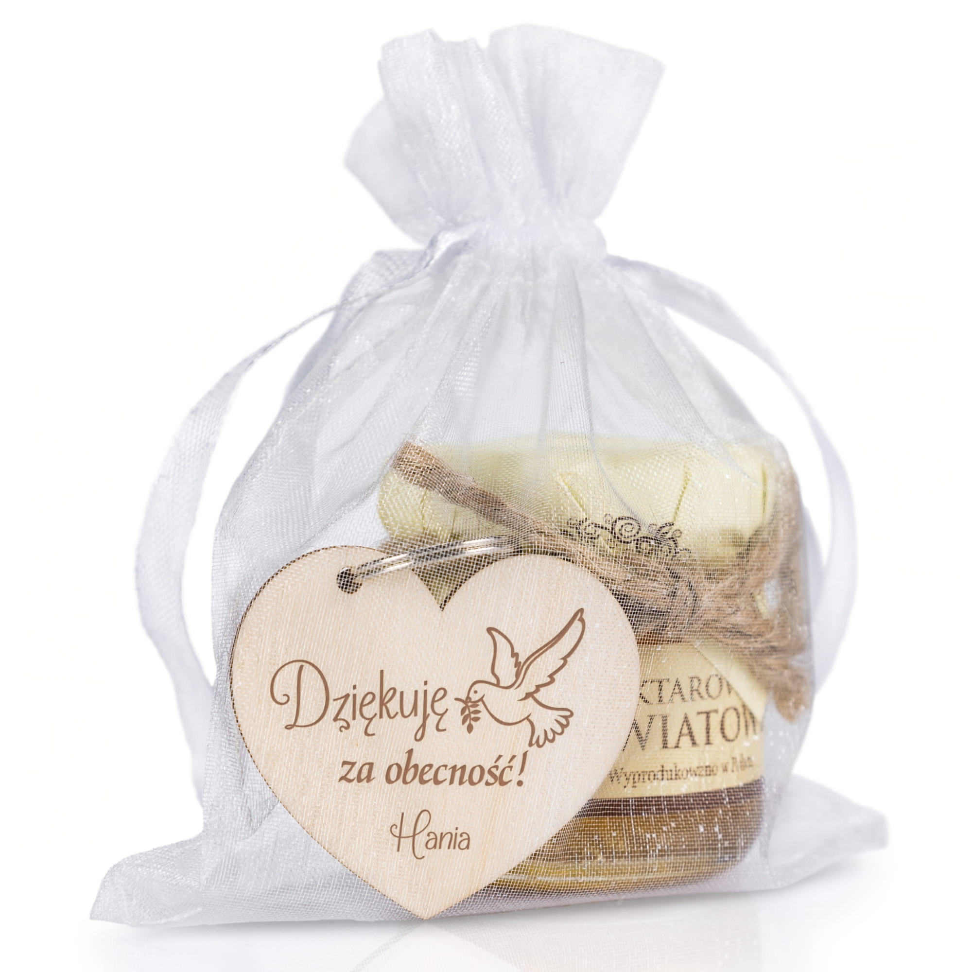 Spersonalizowany breloczek serce z miodem naturalnym – podziękowanie komunijne
