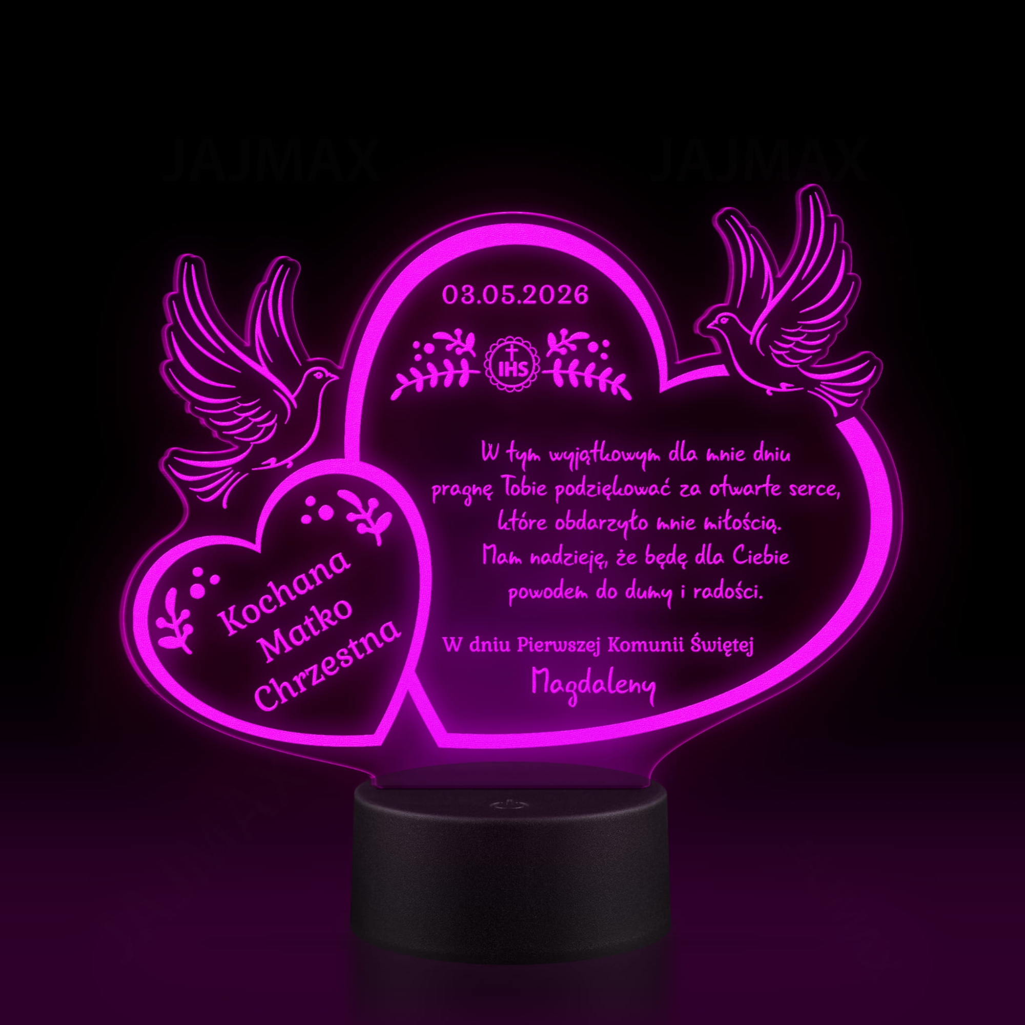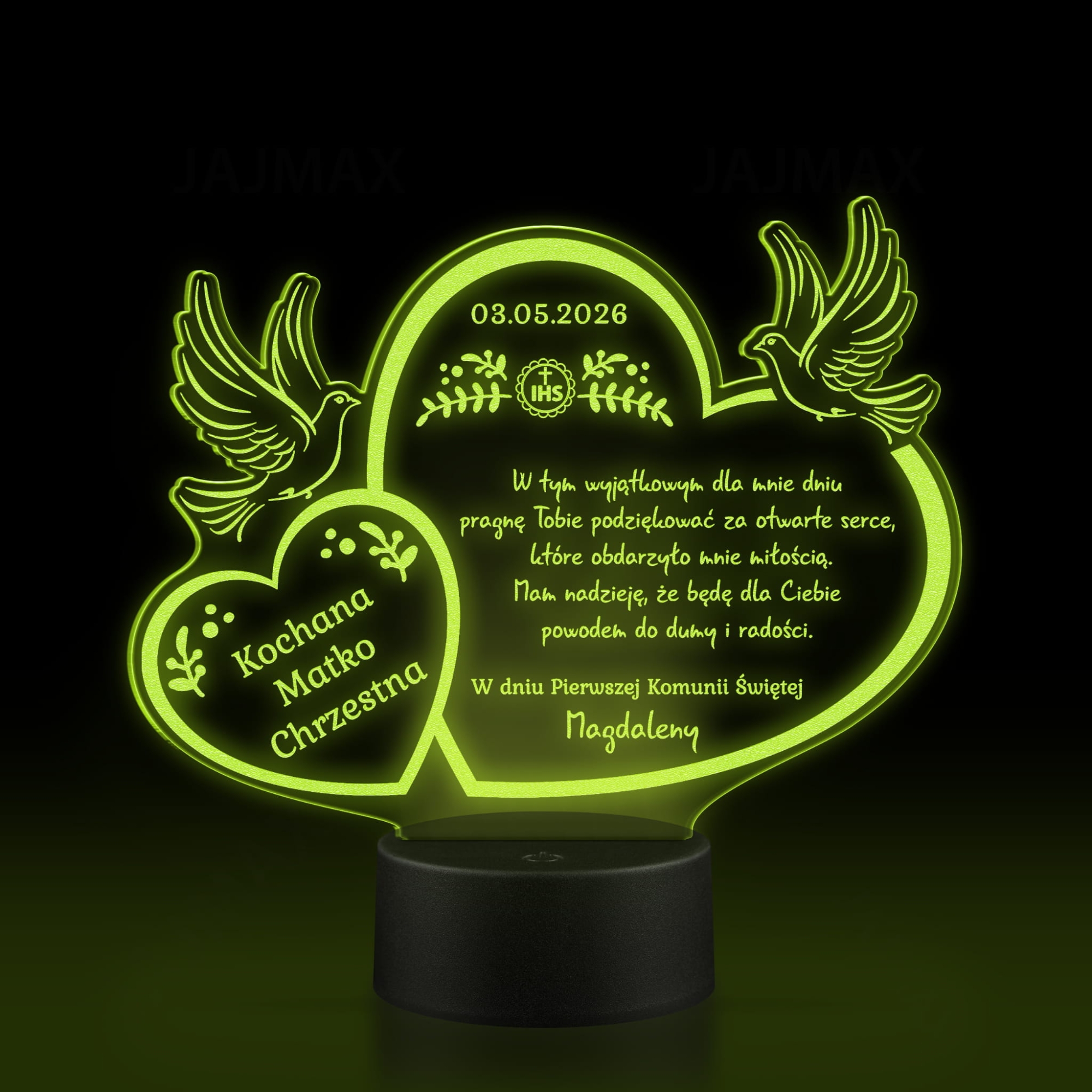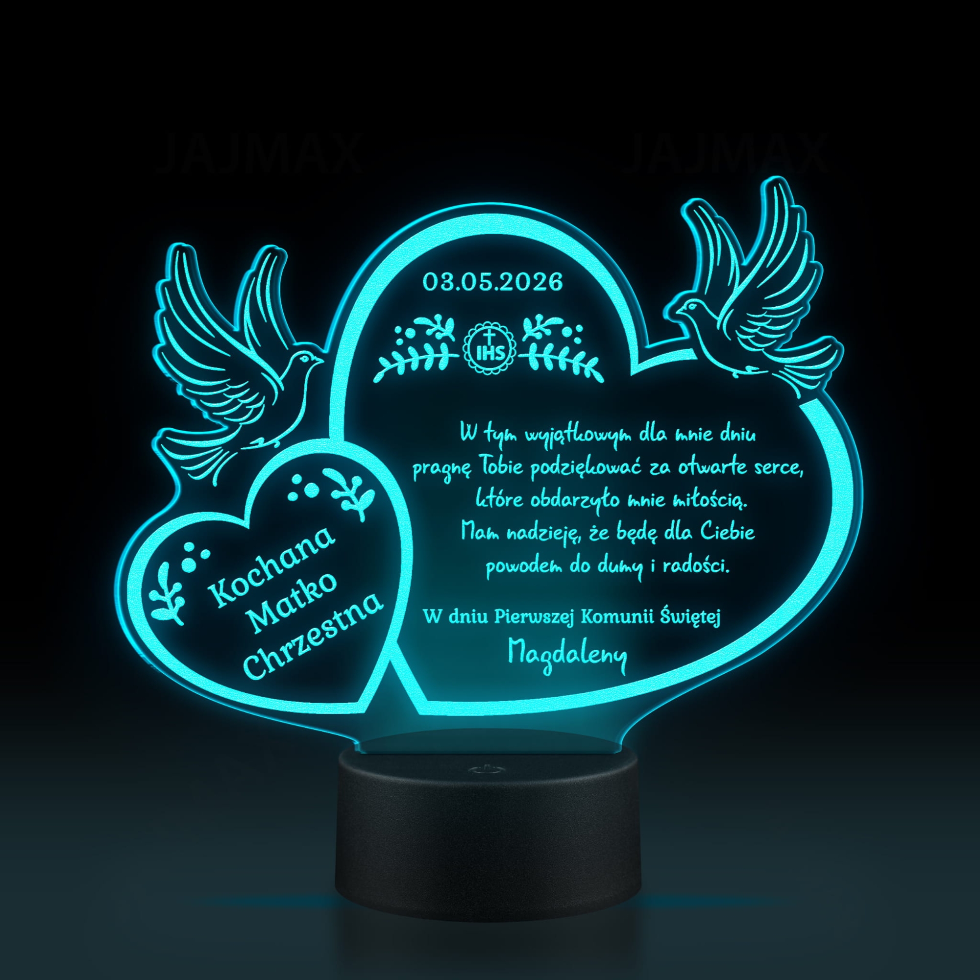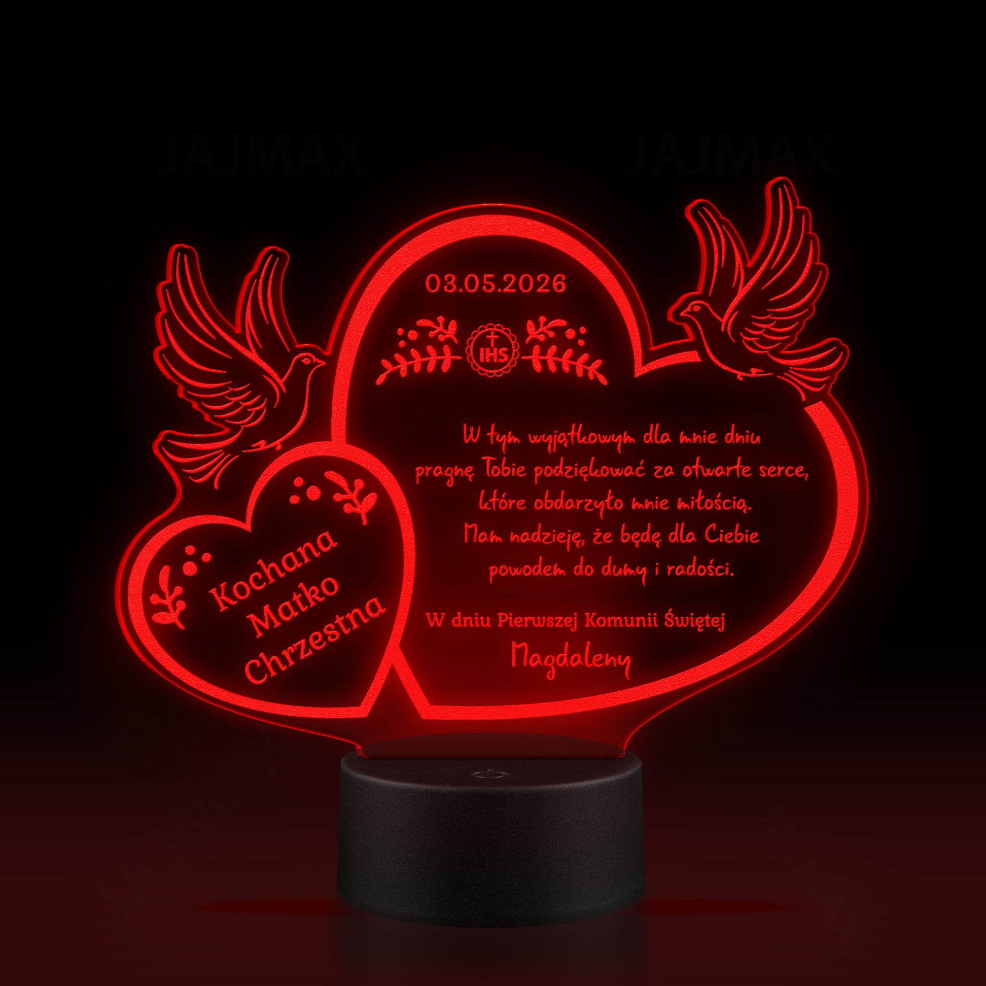 Statuetka LED PODZIĘKOWANIA KOMUNIA dla dziadków chrzestnych