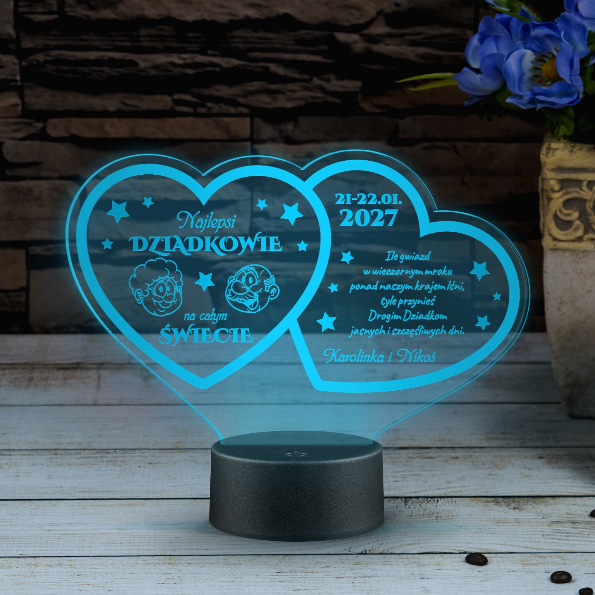 Statuetka LED dwa serca – personalizowany prezent dla Dziadków