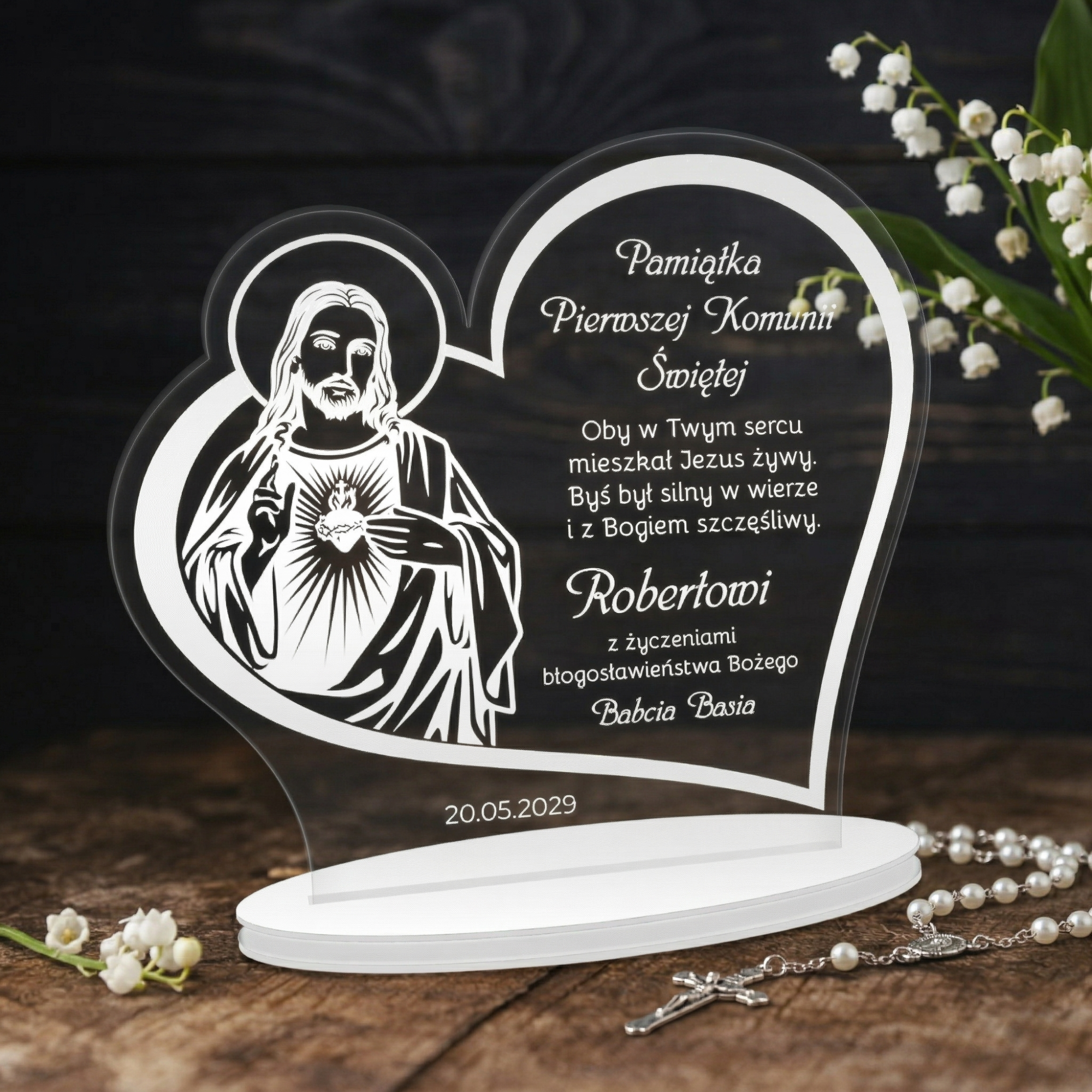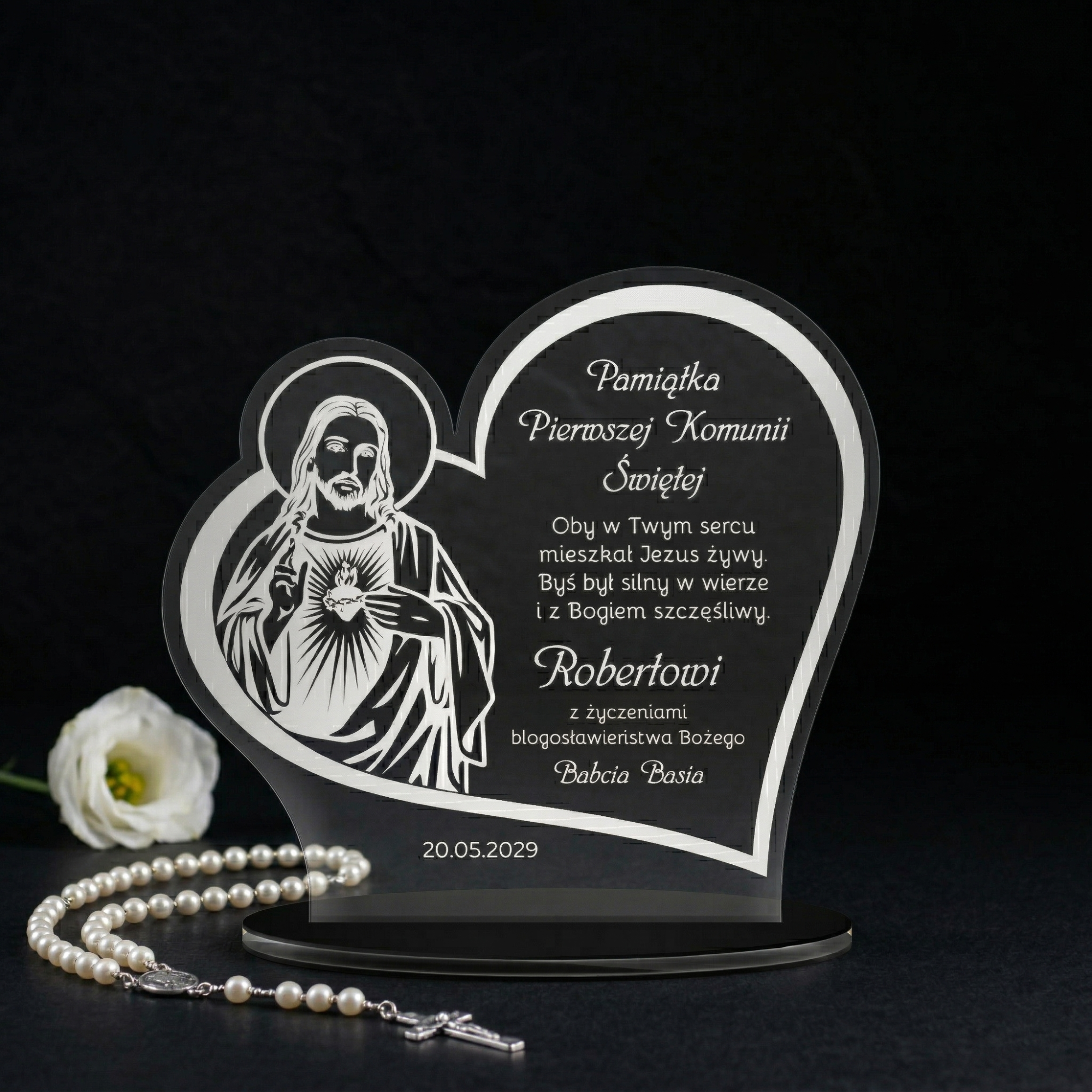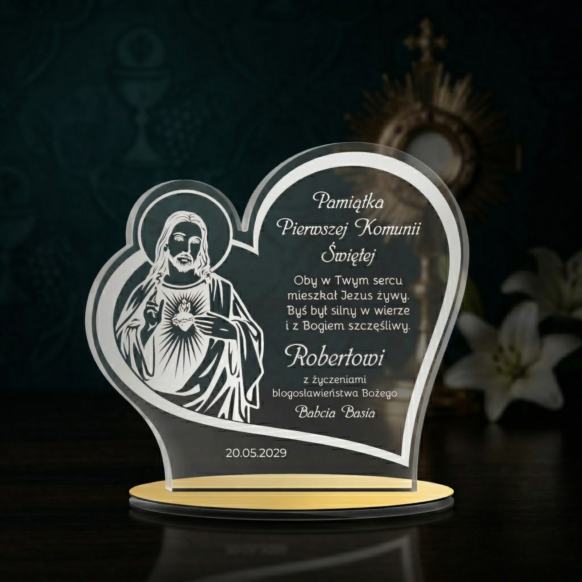 Statuetka serce pierwsza KOMUNIA ŚWIĘTA grawer