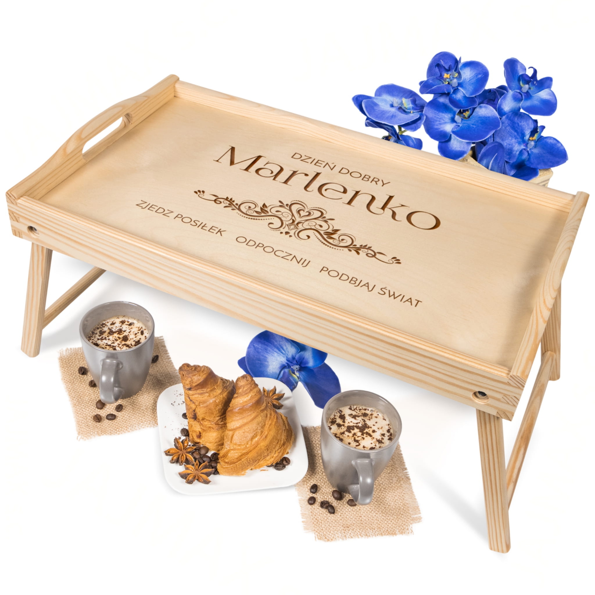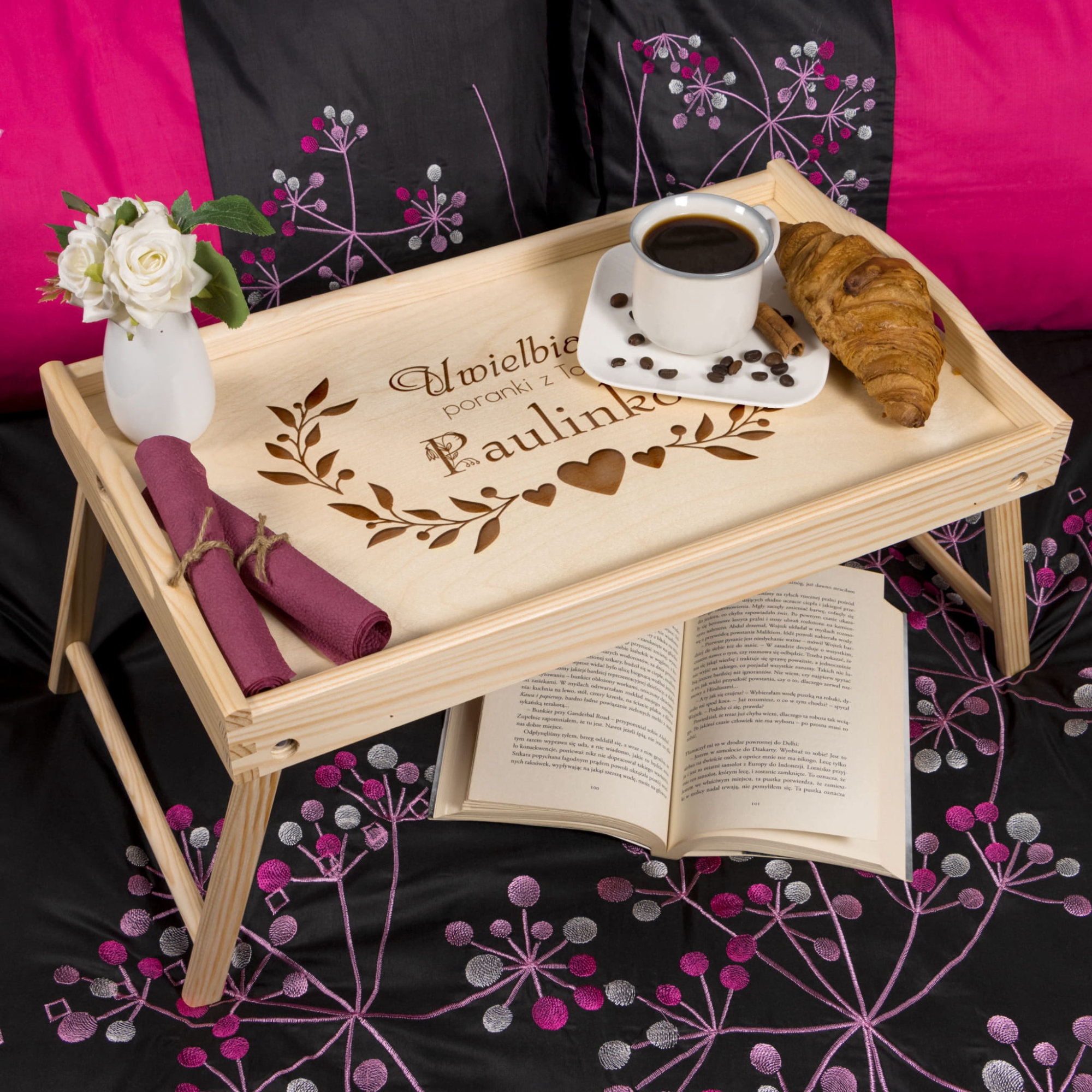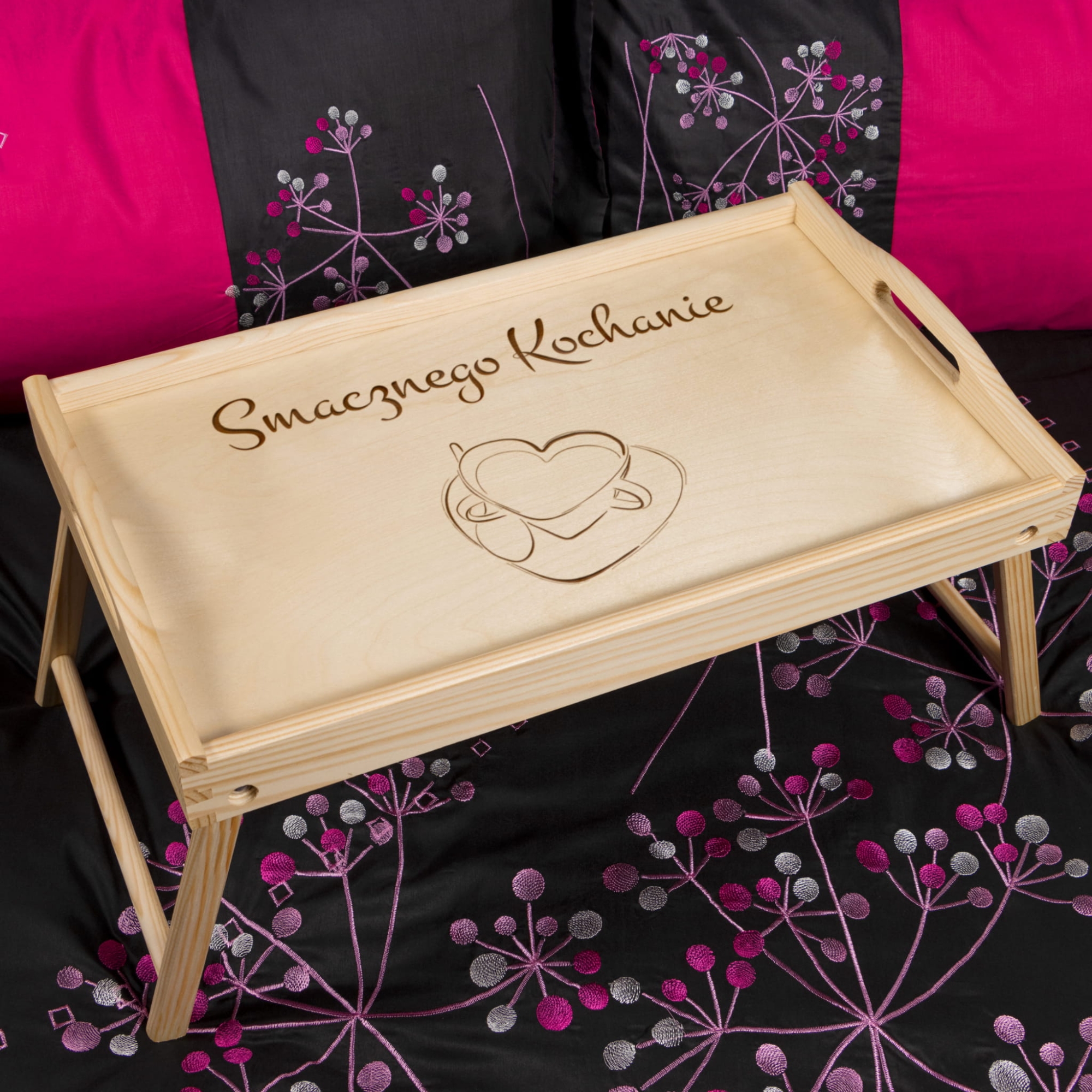 Stolik śniadaniowy do łóżka PREZENT DLA ZAKOCHANYCH grawer