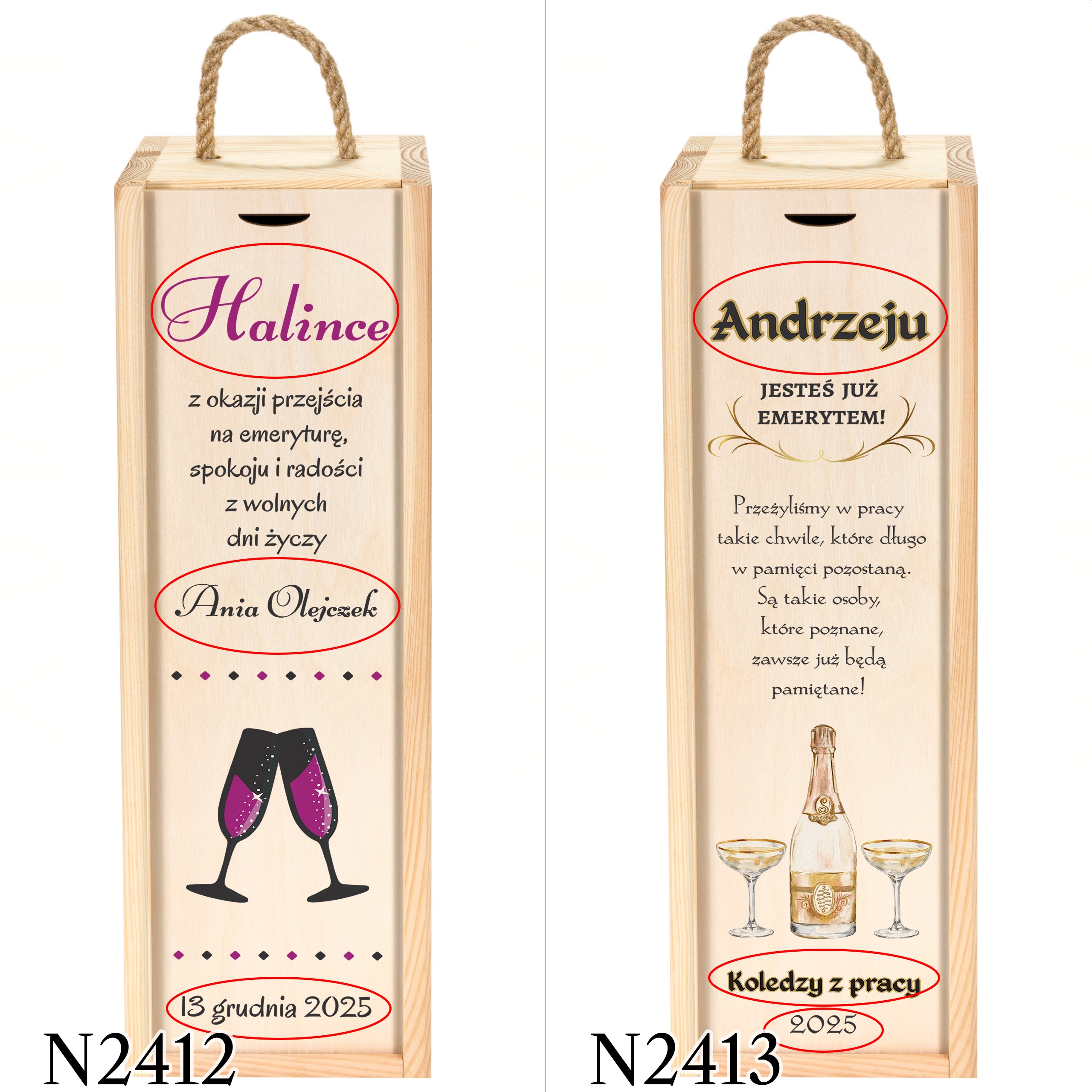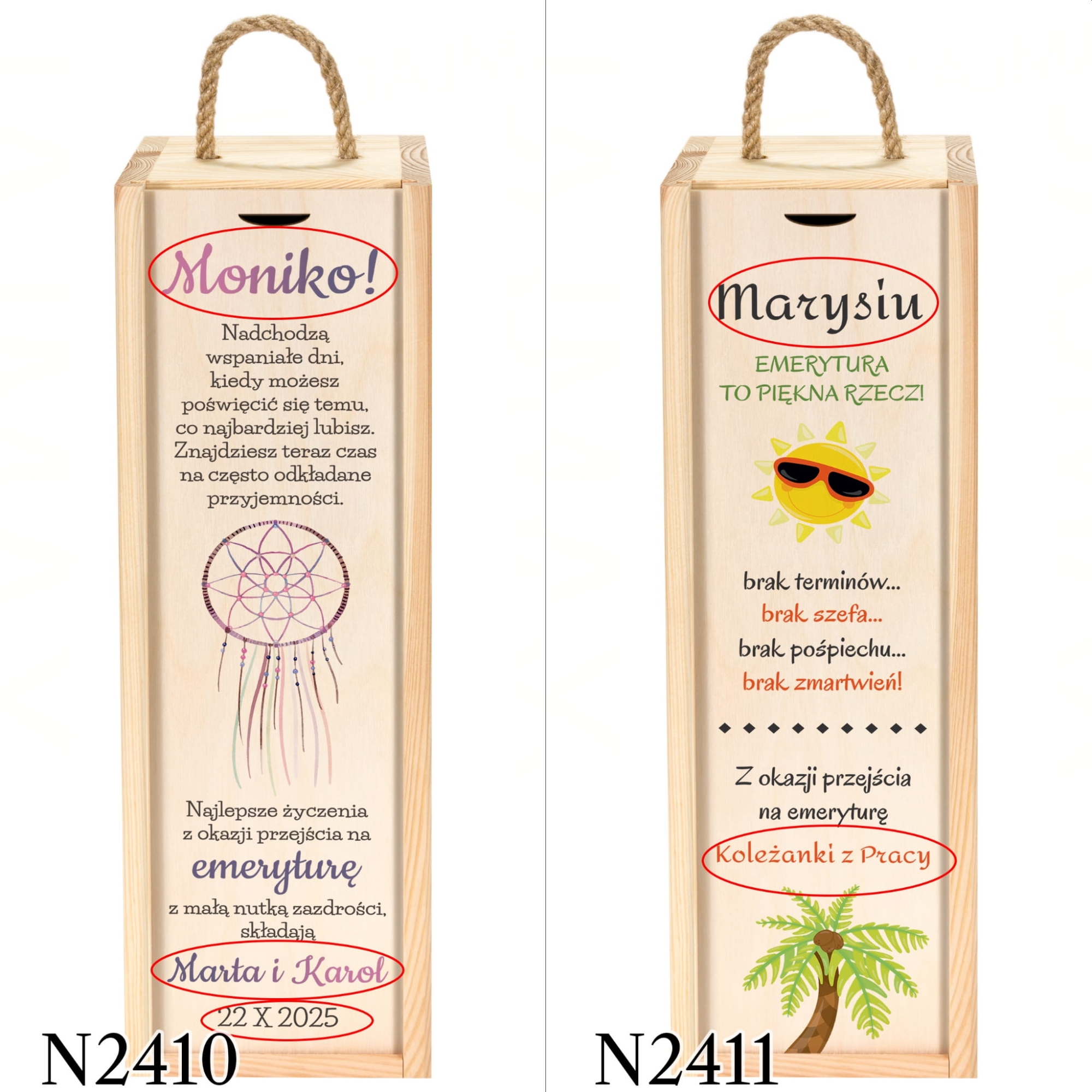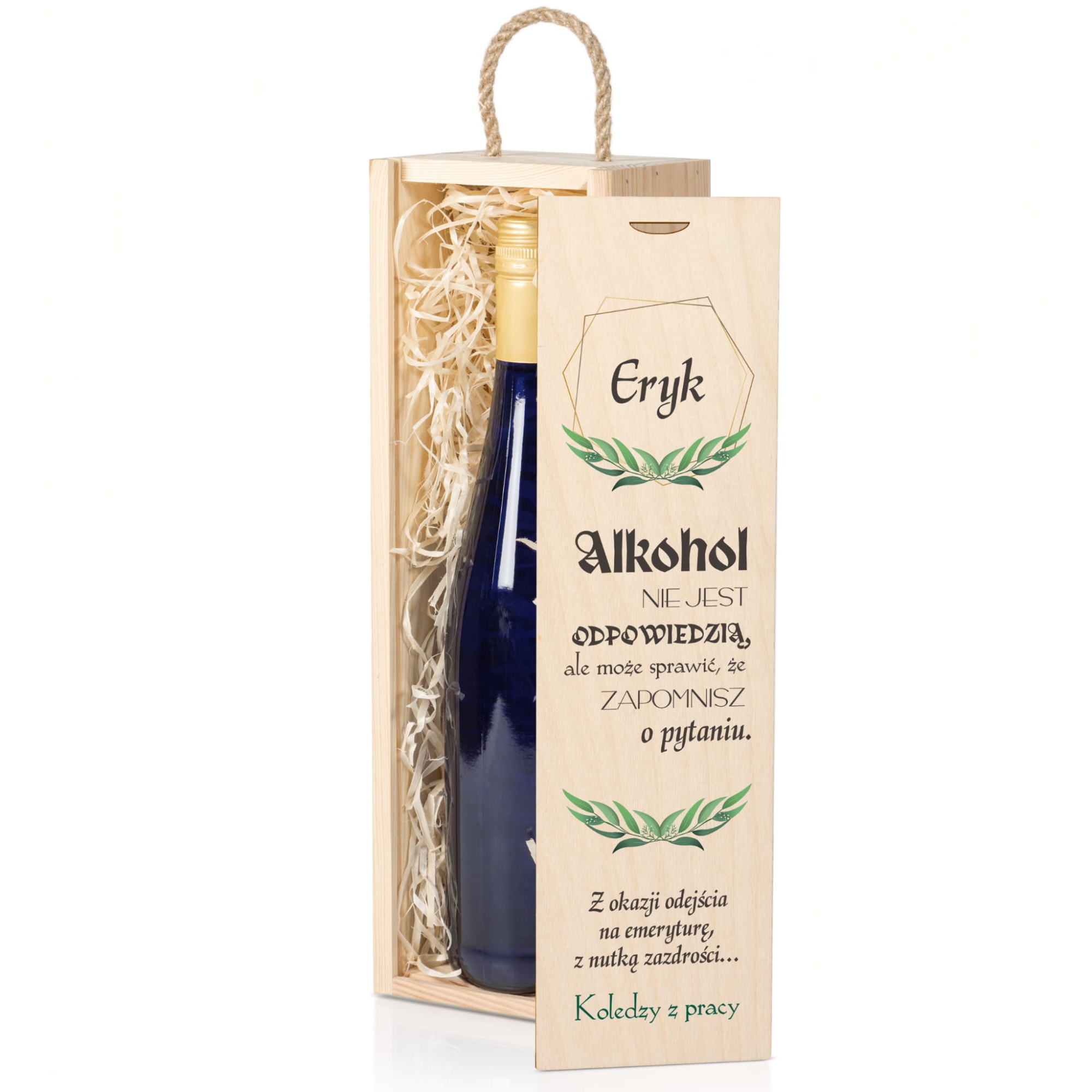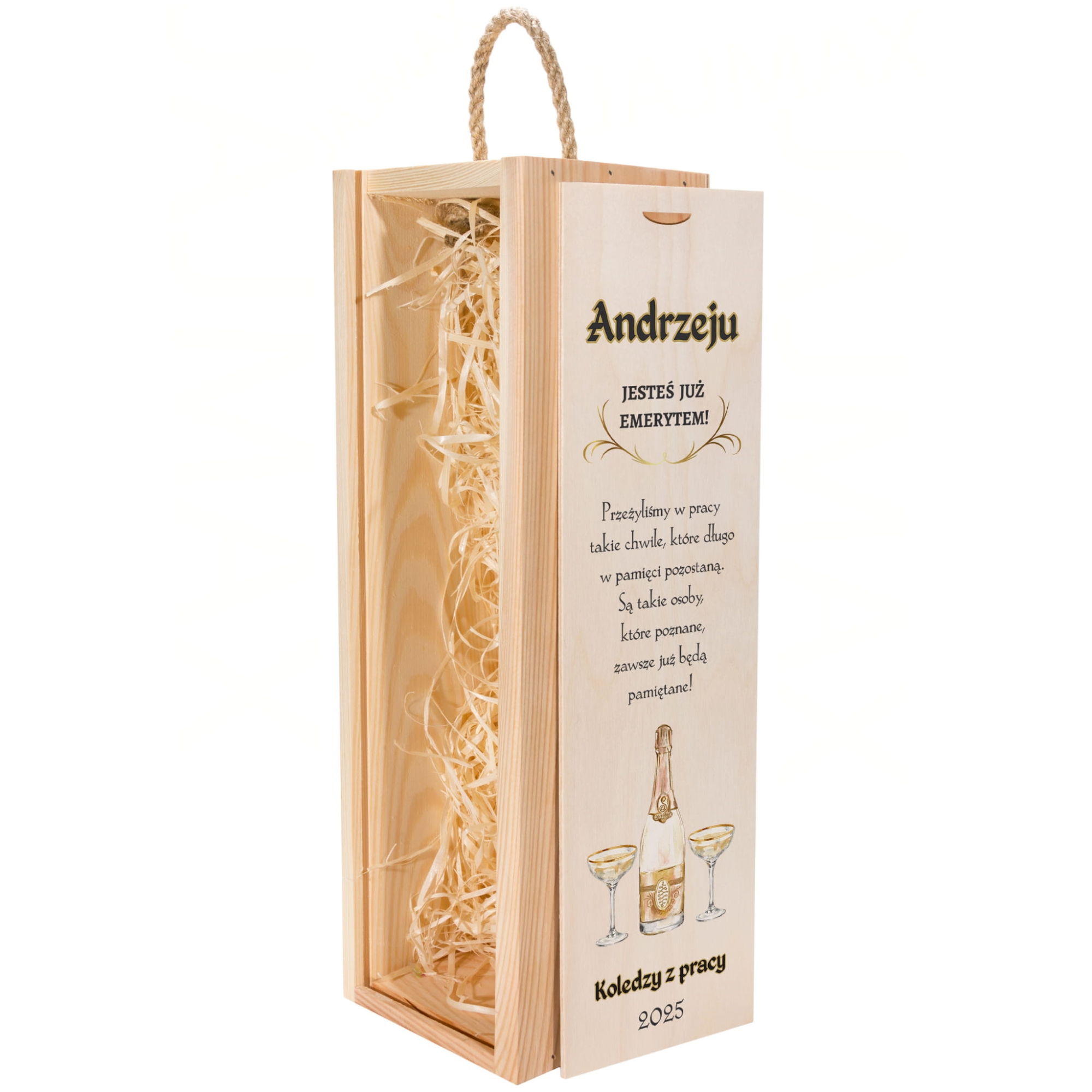 Skrzynka na wino z dedykacją prezent dla emeryta, emerytki