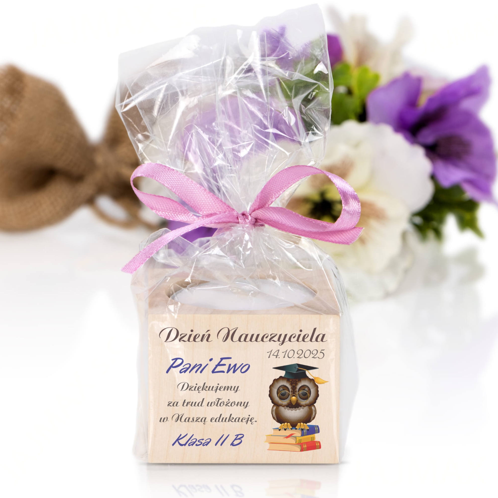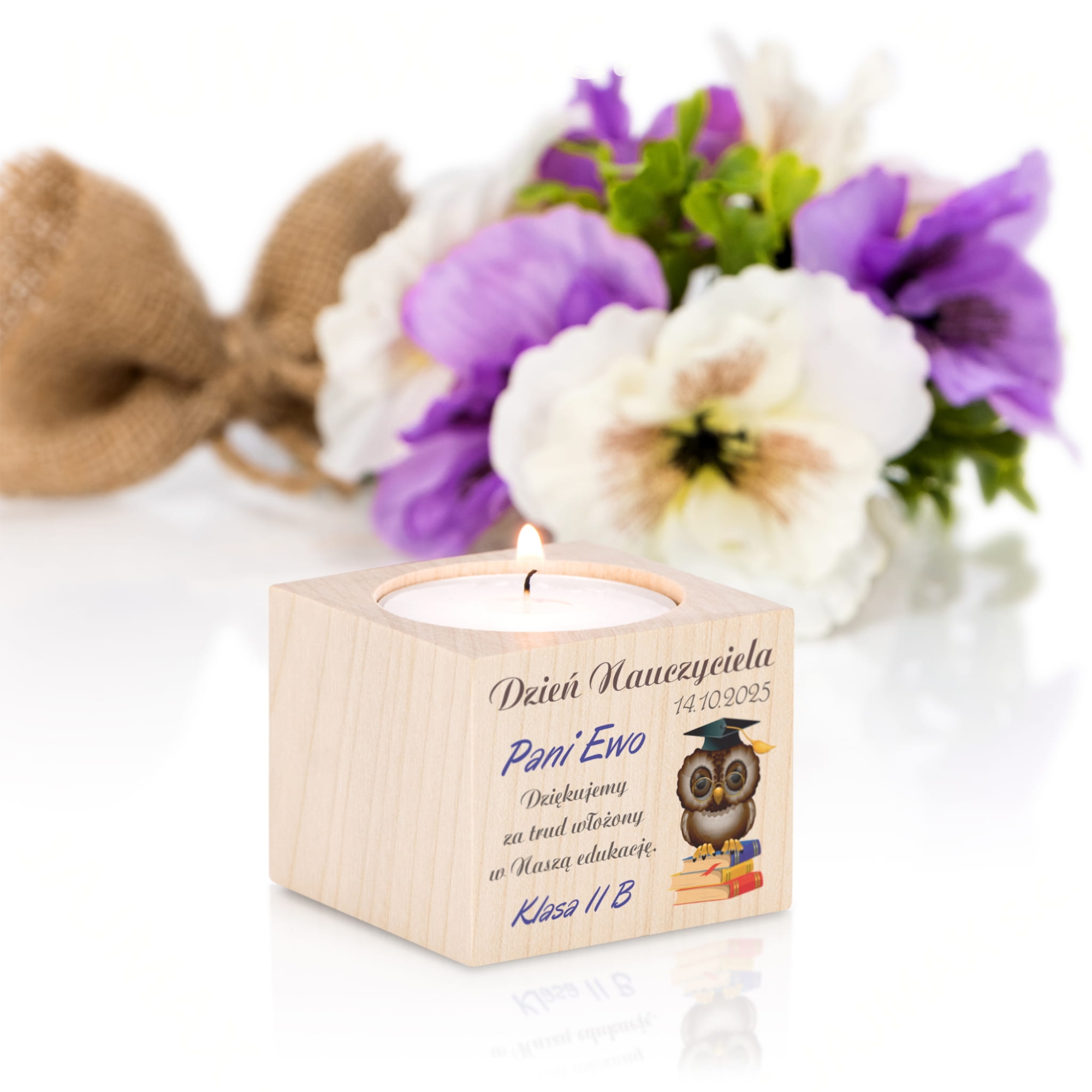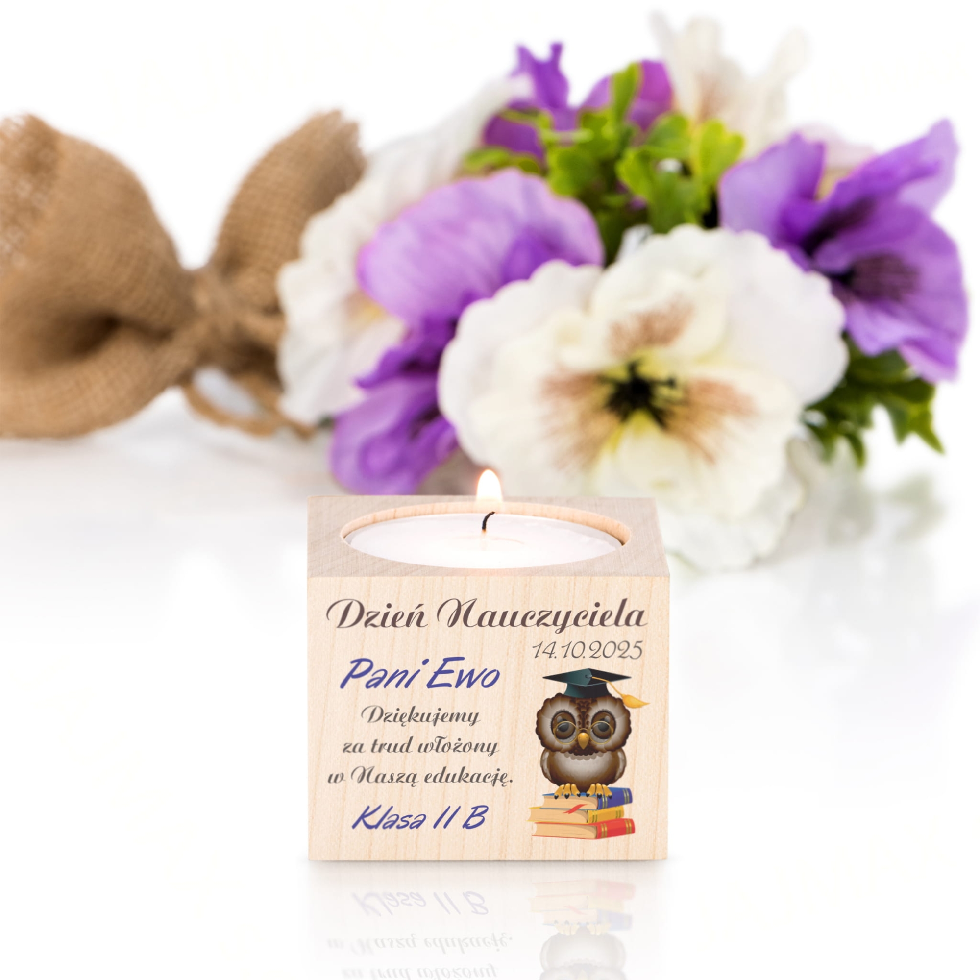 Świecznik oryginalny upominek z okazji Dnia Nauczyciela z personalizacją