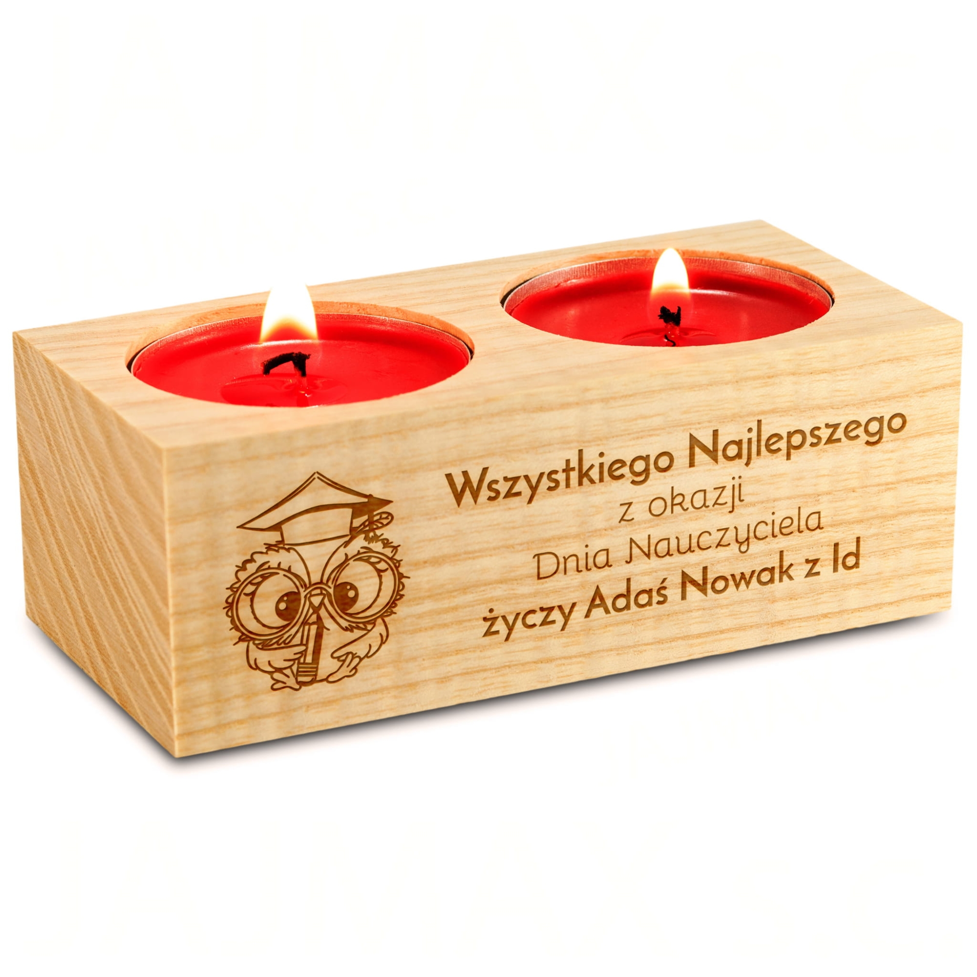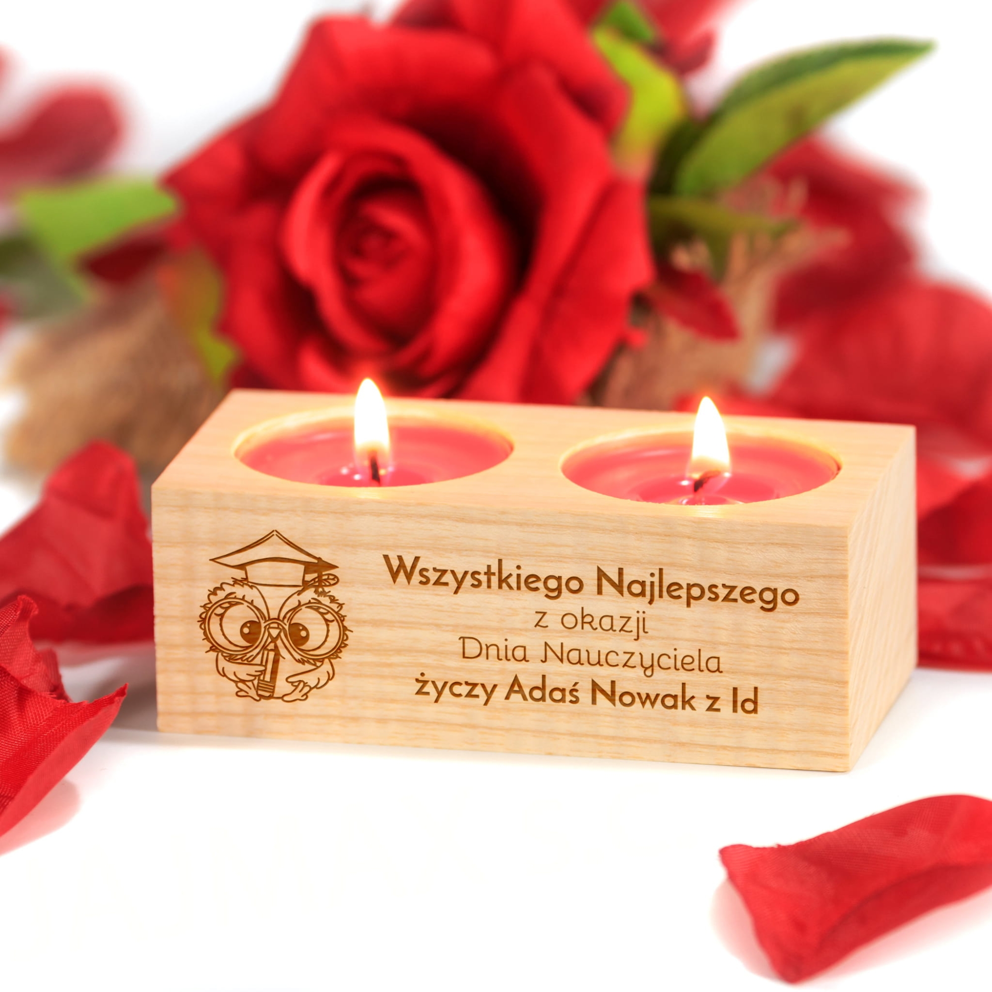 Świecznik na 2 podgrzewacze upominek dla nauczyciela z grawerem