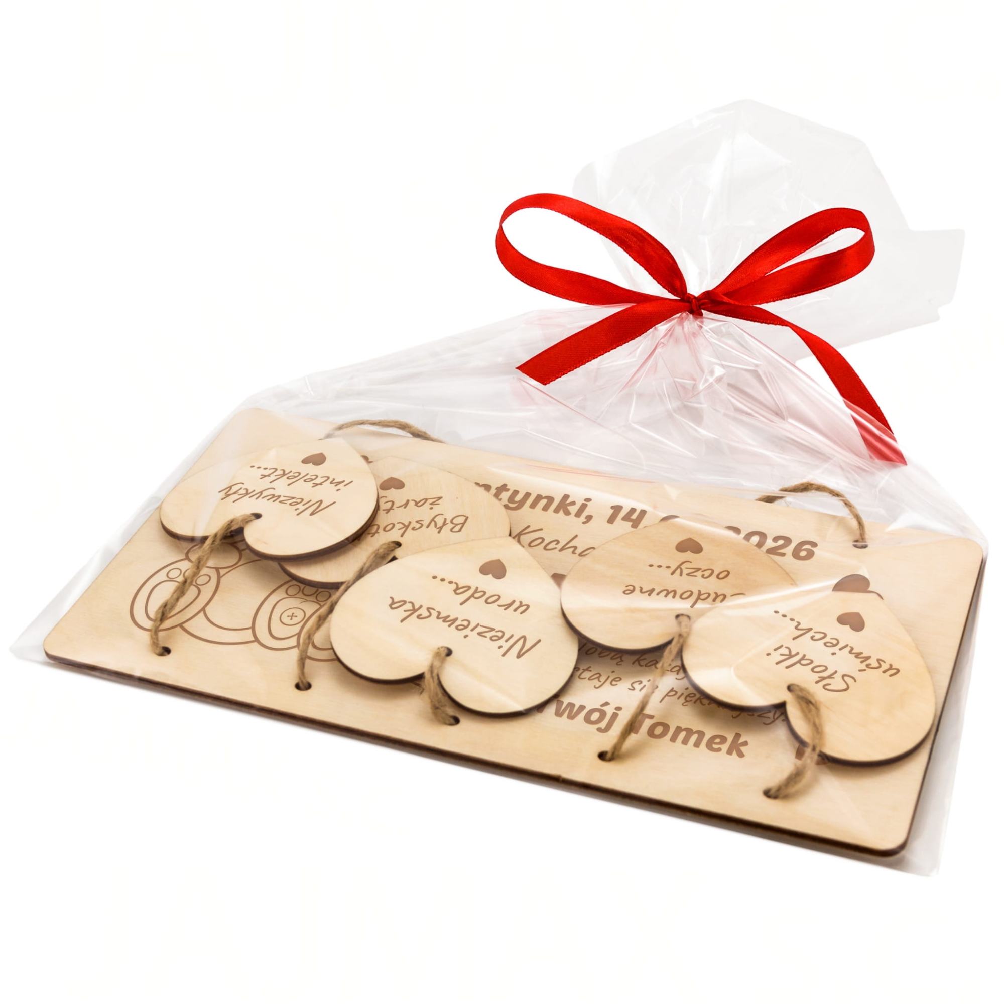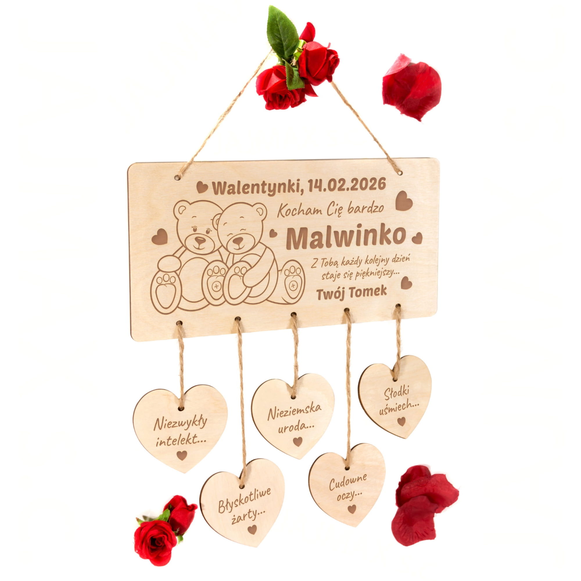 Drewniana tabliczka z sercami z indywidualnym nadrukiem prezent dla Niej i dla Niego