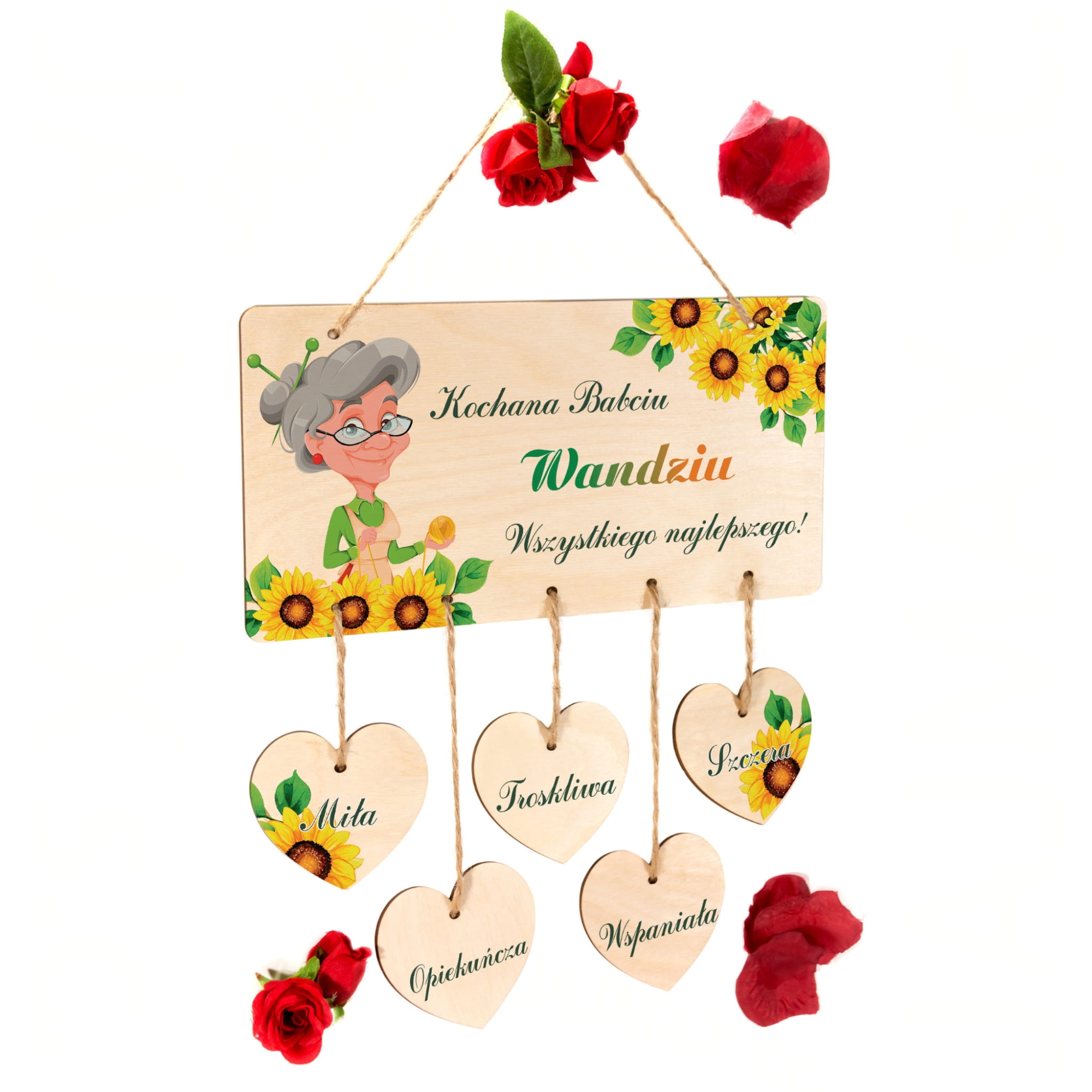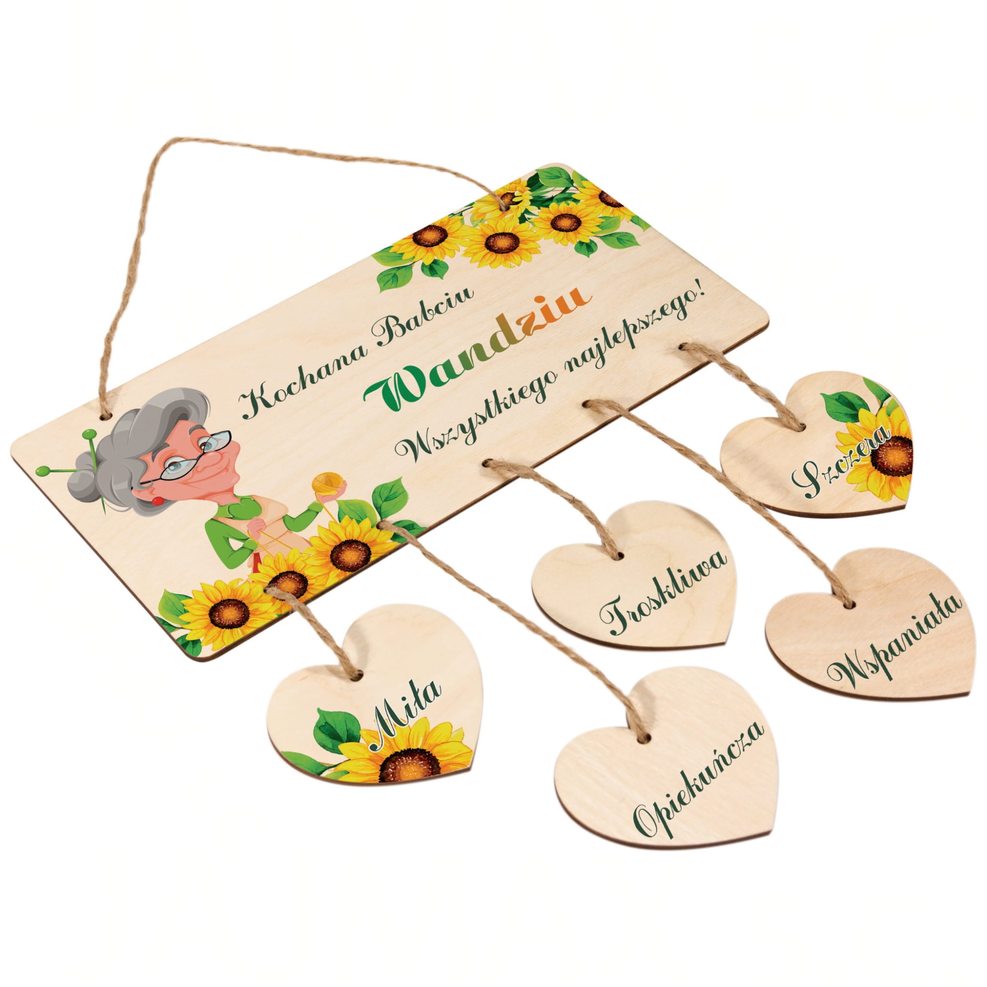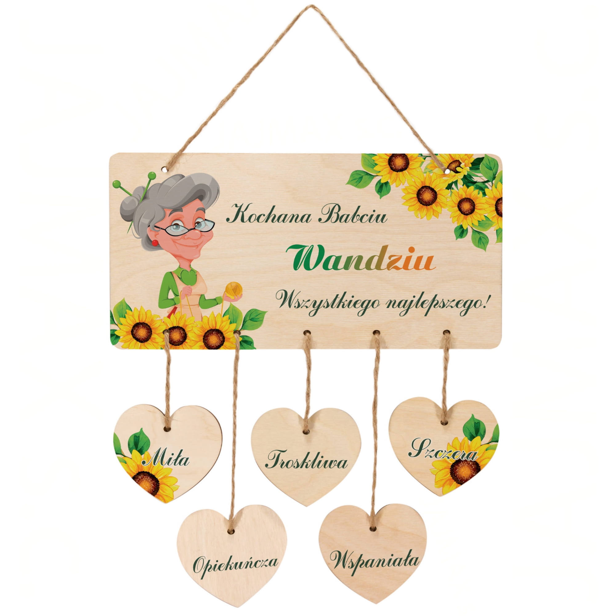 Drewniana tabliczka z sercami piękny upominek z życzeniami i imieniem babci